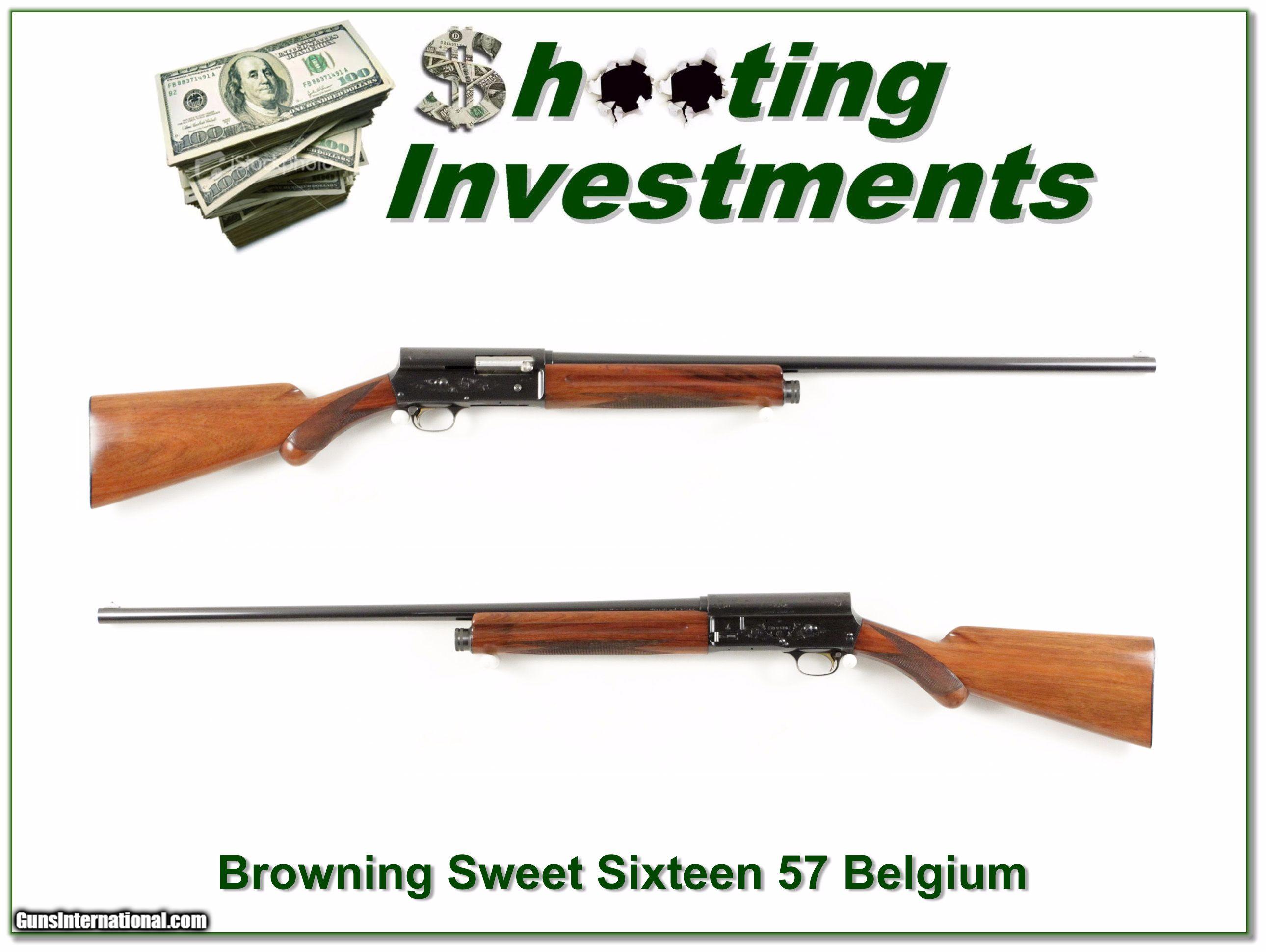 Description: This Browning Sweet Sixteen was made in Belgium in 1957. It is all original with excellent rust blue. The barrel is a 28in matt modified. The wood has a few marks from use. It will make a classic field gun or nice addition to your collection. I am selling this one on consignment and as such lay-a-way can’t be used. It does of course have the standard 3-day inspection. Shipping and insurance is $35 or $15 more if you want it shipped in a new Plano hard case. Please email me with any questions or larger pictures. (Consign your quality firearms with Shooting Investments for only 10%! Let me know if you have any you would like to sell!) 17-0974 Payment: Payment is by Money Order, Cashiers Check or Personal Check. I can now also accept MasterCard and Visa with a 3% convenience fee. PayPal can be used for some items but never firearms. Please let us know if you would like to pay via PayPal. Shipping: The shipping charge will be listed in each description. It is $35 for most guns. Some heavy guns or those insured for over $2000 will be higher. Shipments to Alaska and Hawaii are higher because air shipment is required. Most firearms are shipped within 5 days of receipt of payment. We prefer shipping at the beginning of the week to avoid firearms in transit over weekends. We package all shipments carefully and insure them for the full purchase price, rounded up to the next $100. In the unlikely event that damage occurs, it is important that you save all packaging material for the claims process. Optics are shipped Priority Mail and most other non-firearm shipments are shipped First Class. Returns: Our return policy is simple. If for any reason you are not pleased with your purchase, you may return your item for a refund. The only exception is ammunition, it cannot be returned. It is important to us that you are happy. Guns cannot be fired or dissembled before returning them and must be returned in the same condition as received. Notification of a return must occur with-in 3 days of receipt at your dealer. Shipping, convenience and dealer fees are not refundable and are the responsibility of the buyer. Lay-a-way: If needed, we offer a 60 day lay-a-way option on most firearms. It is 1/3 now, 1/3 in 30 days and 1/3 in 60 days. Lay-a-way firearm sales are final. Consigning your firearms with Shooting Investments: We will help you get top dollar for your firearms. While most local guns shops charge 20% or more, our fee is only 10% with a minimum of $50. At your local gun shop it might take months to sell. Selling on-line provides instant access to thousands of interested buyers. You won’t find any other on-line dealer willing to sell your firearms for only 10% or listing every gun on 4 separate s. Selling through an House typically costs the seller 15% and the buyer an addition 15% (so 30%) and you have to wait several months to sell and longer to receive funds. If properly priced, we will sell your firearms in a week or two. Send us an email or give us a call and we’ll explain how easy it is for you to get top dollar. Trading: We collect guns and usually just trade for guns we want to add to our collections. We often sell guns for others wanting to purchase one of ours. We find this the most fair to both of us. Our Commission is only 10% and we hold the gun you want until yours sells. Please contact us if you want to sell one of yours to buy one of ours. Help for California Buyers: We are happy to ship to California. It is the buyer’s responsibility to make sure any item you buy is legal in your state. We are also happy to help with your purchase of a firearm from someone other than us. If you see a gun you would like to buy but the seller can’t or won’t ship to California we can help. You buy the gun and have it shipped to us. We’ll then ship it to your California dealer. The cost for this service is only $30 + shipping. Let me know if we can help! SOLD |