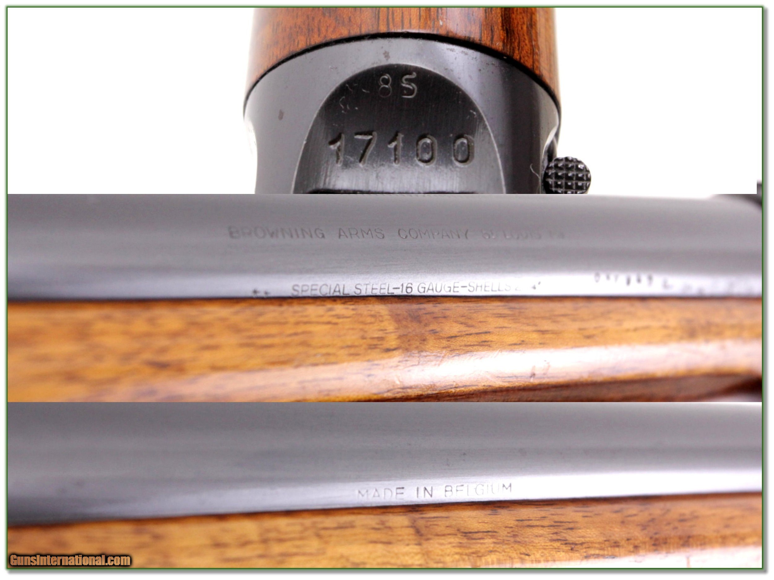 Description: This is a 1958 Belgium made Browning Sweet Sixteen. The original rust blue is excellent with just the faintest or recoil wear on the 28in Modified barrel. The original wood finished has light marks. I am sure this one wasn’t use much and shot few shells. It has its original St. Lious barrel. It will make a classic field gun and they just don’t make them like this anymore! Shipping with insurance is $39. Please email me with any questions or larger pictures. (Consign your quality firearms with Shooting Investments for only 12%! Let me know if you have any you would like to sell!) 19-0416 Payment: Payment is by Money Order, Cashiers Check or Personal Check. I can now also accept MasterCard and Visa with a 3% convenience fee. PayPal can be used for some items but never firearms. Please let us know if you would like to pay via PayPal. Shipping: The shipping charge will be listed in each description. It is $39 for most long guns and $29 for most handguns. Some heavy guns or those insured for over $2000 will be higher. Shipments to Alaska and Hawaii are higher because air shipment is required. Most firearms are shipped on Tuesday and Thursday and usually in 5 days of receipt of payment. We package all shipments carefully and insure them. For long guns you can purchase a new Plano case for $19. They now cost us $22 when buying 100 at a time. Optics are shipped Priority Mail and most other non-firearm shipments are shipped First Class. Returns: Our return policy is simple. If for any reason you are not pleased with your purchase, you may return your item for a full refund of purchase price. Ammunition cannot be returned. It is important to us that you are happy. Guns cannot be fired or dissembled before returning them and they must be returned in the same condition as received. Notification of a return must occur with-in 3 days of receipt at your dealer. Shipping, convenience and dealer fees are not refundable and are the responsibility of the buyer. Lay-a-way: If needed, we offer a 60 day lay-a-way option on most firearms. It is 1/3 now, 1/3 in 30 days and 1/3 in 60 days. Lay-a-way firearm sales are final and if not completed the first payment cannot be returned. Consigning your firearms with Shooting Investments: We will help you get top dollar for your firearms. While most local guns shops charge 20% or more, our fee is only 12% with a minimum of $75. At your local gun shop it might take months to sell. Selling on-line provides instant access to thousands of interested buyers. You won’t find any other on-line dealer willing to sell your firearms for only 12% or listing every gun on 3 separate s. Selling through an House typically costs the seller 15% and the buyer an addition 15% (so 30%) and you have to wait several months to sell and longer to receive funds. If properly priced, we will sell your firearms in a few weeks. Send us an email or give us a call and we’ll explain how easy it is for you to get top dollar. Trading: Trading for use is really just buying your gun to re-sell. If you have a gun you want to trade, please email a picture and we will let you know what we can give or it. You will always get more if we sell it for you on consignment. Help for California Buyers: We are happy to ship to California. It is the buyer’s responsibility to make sure any item you buy is legal in your state. We are also happy to help with your purchase of a firearm from someone other than us. If you see a gun you would like to buy but the seller can’t or won’t ship to California they can ship to use and we’ll then ship it to your California dealer. The cost for this service is only $30 + shipping. Let us know if we can help! SOLD |