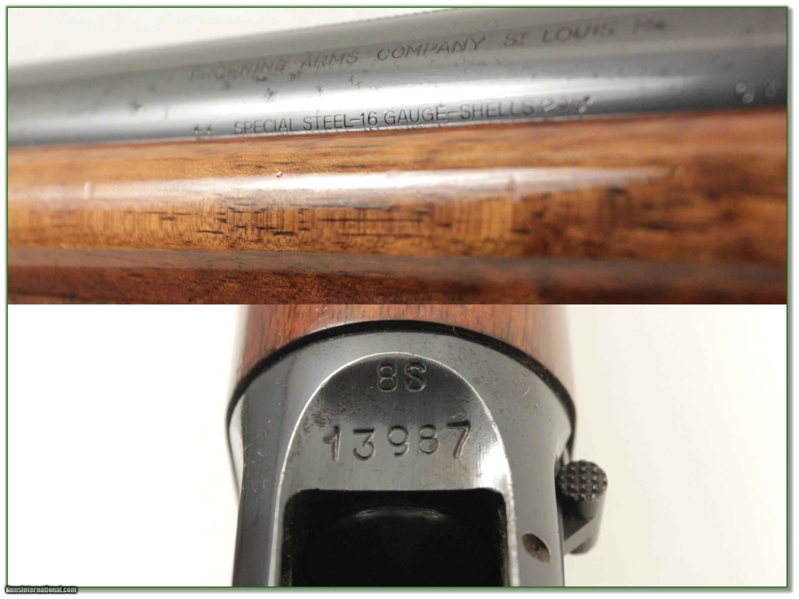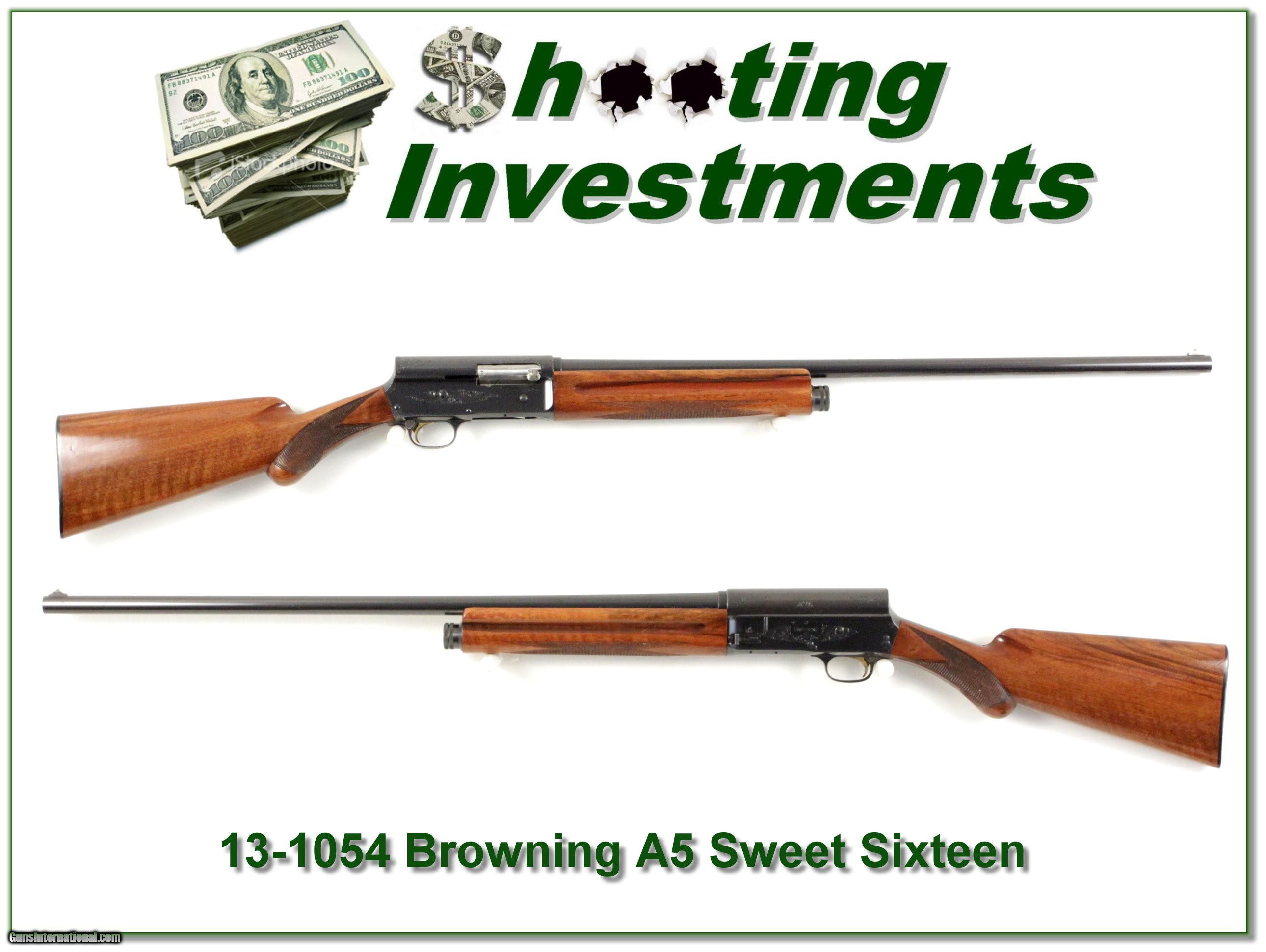 Description: This Browning Sweet Sixteen was made in Belgium in 1958! It is in very good all original condition. The rust blue is all there with no recoil wear so I’m sure not many rounds through it. Only some light freckles on the receiver. The wood is very nice with only a few minor marks. The horn butt plate is excellent. The barrel is a 28in Modified. This is one you can use yet still expect to increase in value over time. That makes it a real Shooting Investment! Shipping and insurance is $35 or $15 more if you want it shipped in a new Plano hard case. Please email me with any questions or larger pictures. (Consign your quality firearms with Shooting Investments for only 10%! Let me know if you have any you would like to sell!) 13-1054 Payment: Payment is by Money Order, Cashiers Check or Personal Check. I can now also accept MasterCard and Visa with a 3% convenience fee. PayPal can be used for some items but never firearms. Please let us know if you would like to pay via PayPal. Shipping: The shipping charge will be listed in each description. It is $35 for most guns. Some heavy guns or those insured for over $2000 will be higher. Shipments to Alaska and Hawaii are higher because air shipment is required. Most firearms are shipped within 5 days of receipt of payment. We prefer shipping at the beginning of the week to avoid firearms in transit over weekends. We package all shipments carefully and insure them for the full purchase price, rounded up to the next $100. In the unlikely event that damage occurs, it is important that you save all packaging material for the claims process. Optics are shipped Priority Mail and most other non-firearm shipments are shipped First Class. Returns: Our return policy is simple. If for any reason you are not pleased with your purchase, you may return your item for a refund. The only exception is ammunition, it cannot be returned. It is important to us that you are happy. Guns cannot be fired or dissembled before returning them and must be returned in the same condition as received. Notification of a return must occur with-in 3 days of receipt at your dealer. Shipping, convenience and dealer fees are not refundable and are the responsibility of the buyer. Lay-a-way: If needed, we offer a 60 day lay-a-way option on most firearms. It is 1/3 now, 1/3 in 30 days and 1/3 in 60 days. Lay-a-way firearm sales are final. Consigning your firearms with Shooting Investments: We will help you get top dollar for your firearms. While most local guns shops charge 20% or more, our fee is only 10% with a minimum of $50. At your local gun shop it might take months to sell. Selling on-line provides instant access to thousands of interested buyers. You won’t find any other on-line dealer willing to sell your firearms for only 10% or listing every gun on 4 separate s. Selling through an House typically costs the seller 15% and the buyer an addition 15% (so 30%) and you have to wait several months to sell and longer to receive funds. If properly priced, we will sell your firearms in a week or two. Send us an email or give us a call and we’ll explain how easy it is for you to get top dollar. Trading: We collect guns and usually just trade for guns we want to add to our collections. We often sell guns for others wanting to purchase one of ours. We find this the most fair to both of us. Our Commission is only 10% and we hold the gun you want until yours sells. Please contact us if you want to sell one of yours to buy one of ours. Help for California Buyers: We are happy to ship to California. It is the buyer’s responsibility to make sure any item you buy is legal in your state. We are also happy to help with your purchase of a firearm from someone other than us. If you see a gun you would like to buy but the seller can’t or won’t ship to California we can help. You buy the gun and have it shipped to us. We’ll then ship it to your California dealer. The cost for this service is only $30 + shipping. Let me know if we can help! SOLD |