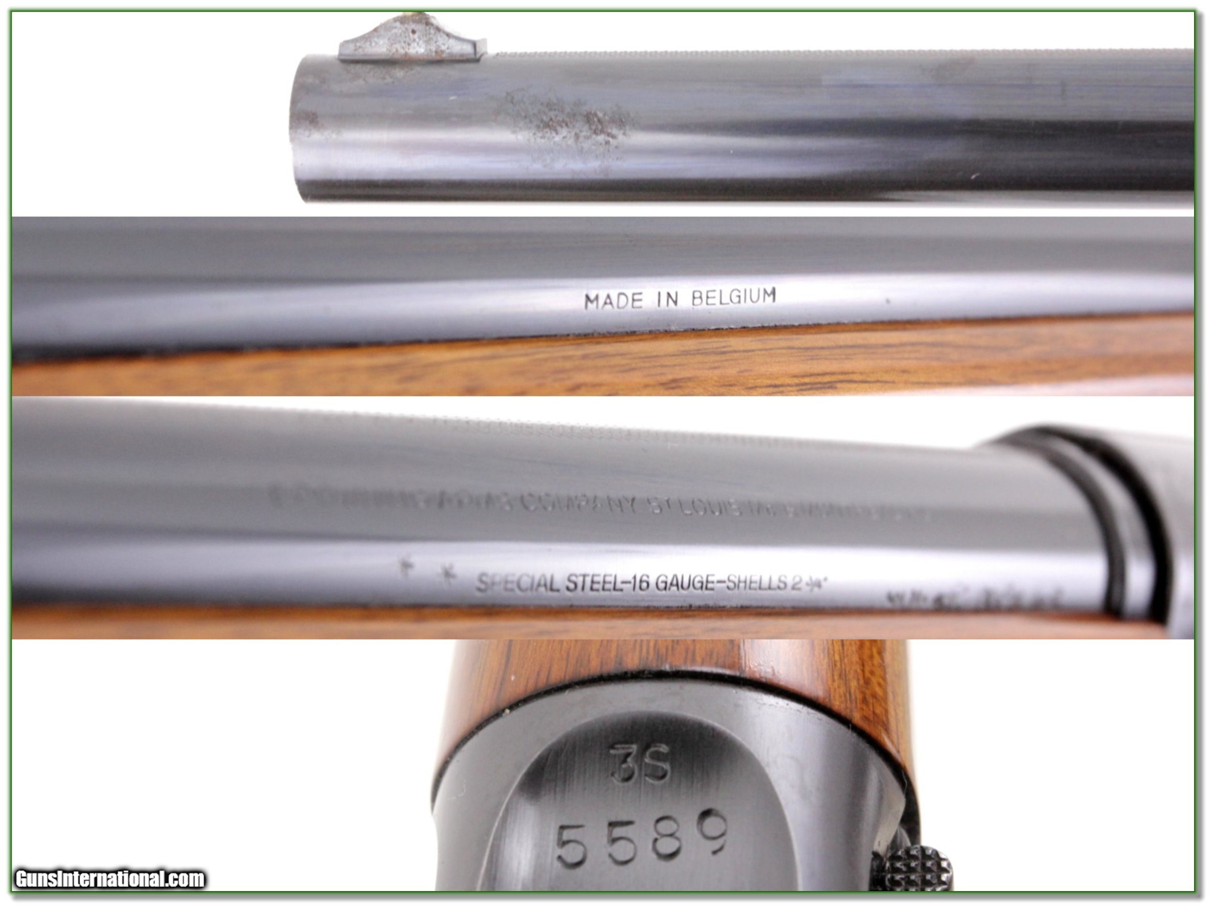Description: This is a 1963 Belgium made Browning Sweet Sixteen. It is all original in excellent condition. I am sure only fired a few shells. I see no edge, recoil or gold trigger wear. The receiver blue is near new. It was stored in a gun case and the end of the barrel has a small area of corrosion as seen. Otherwise mint metal. The wood also only has a few minor marks. It will make a classic field gun or fine addition to your collection! Shipping and insurance is $39. Please email me with any questions or larger pictures. (Consign your quality firearms with Shooting Investments for only 12%! Let me know if you have any you would like to sell!) 19-0325 Payment: Payment is by Money Order, Cashiers Check or Personal Check. I can now also accept Credit Cards (MasterCard, Visa, Discover & American Express) with a 3% convenience fee. PayPal can be used for some items but never for firearms. Shipping: The shipping charge will be listed in each description. It is $39 for most firearms. Some heavy guns or those insured for over $2000 will be higher. Shipments to Alaska and Hawaii are higher because air shipment is required. Most firearms are shipped on Tuesday and Thursday and usually in 5 days of receipt of payment. We package all shipments carefully and insure them. Optics are shipped Priority Mail and most other non-firearm shipments are shipped First Class. Returns: Our return policy is simple. If for any reason you are not pleased with your purchase, you may return your item for a full refund of purchase price. Ammunition cannot be returned. It is important to us that you are happy. Guns cannot be fired or dissembled before returning them and they must be returned in the same condition as received. Notification of a return must occur with-in 3 days of receipt at your dealer. Shipping, convenience and dealer fees are not refundable and are the responsibility of the buyer. Lay-a-way: If needed, we offer a 60 day lay-a-way option on most firearms. It is 1/3 now, 1/3 in 30 days and 1/3 in 60 days. Lay-a-way firearm sales are final and if not completed the first payment cannot be returned. Consigning your firearms with Shooting Investments: We will help you get top dollar for your firearms. While most local guns shops charge 20% or more, our fee is only 12% with a minimum of $75. At your local gun shop it might take months to sell. Selling on-line provides instant access to thousands of interested buyers. You won’t find any other on-line dealer willing to sell your firearms for only 12% or listing every gun on 3 separate s. Selling through an House typically costs the seller 15% and the buyer an addition 15% (so 30%) and you have to wait several months to sell and longer to receive funds. If properly priced, we will sell your firearms in a few weeks. Send us an email or give us a call and we’ll explain how easy it is for you to get top dollar. Trading: Trading for use is really just buying your gun to re-sell. If you have a gun you want to trade, please email a picture and we will let you know what we can give or it. You will always get more if we sell it for you on consignment. Help for California Buyers: We are happy to ship to California. It is the buyer’s responsibility to make sure any item you buy is legal in your state. We are also happy to help with your purchase of a firearm from someone other than us. If you see a gun you would like to buy but the seller can’t or won’t ship to California they can ship to use and we’ll then ship it to your California dealer. The cost for this service is only $30 + shipping. Let us know if we can help! SOLD |