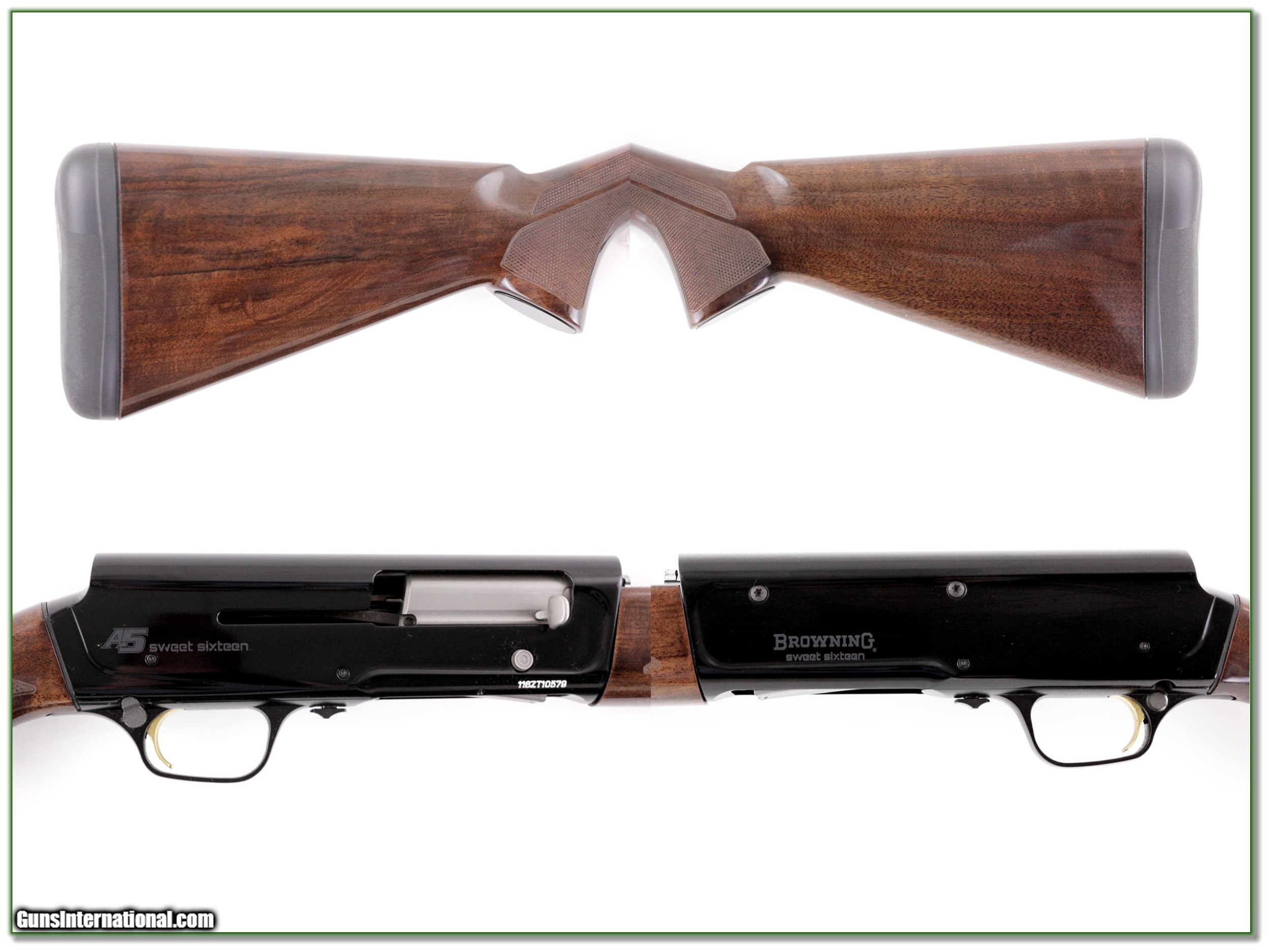 Description: This is a new and unfired Browning A5 Sweet Sixteen (new model). It comes with a 28in barrel and with case, papers and accessories. I am selling this one on consignment and as such lay-a-way can’t be used. It does of course have the standard 3-day inspection. Shipping with insurance is $39. (Consign your quality firearms with Shooting Investments for only 10%! Let me know if you have any you would like to sell!) 18-0972 Payment: Payment is by Money Order, Cashiers Check or Personal Check. I can now also accept MasterCard and Visa with a 3% convenience fee. PayPal can be used for some items but never firearms. Please let us know if you would like to pay via PayPal. Shipping: The shipping charge will be listed in each description. It is $39 for most firearms. Some heavy guns or those insured for over $2000 will be higher. Shipments to Alaska and Hawaii are higher because air shipment is required. Most firearms are shipped on Tuesday and Thursday and usually in 5 days of receipt of payment. We package all shipments carefully and insure them. Optics are shipped Priority Mail and most other non-firearm shipments are shipped First Class. Returns: Our return policy is simple. If for any reason you are not pleased with your purchase, you may return your item for a full refund of purchase price. Ammunition cannot be returned. It is important to us that you are happy. Guns cannot be fired or dissembled before returning them and they must be returned in the same condition as received. Notification of a return must occur with-in 3 days of receipt at your dealer. Shipping, convenience and dealer fees are not refundable and are the responsibility of the buyer. Lay-a-way: If needed, we offer a 60 day lay-a-way option on most firearms. It is 1/3 now, 1/3 in 30 days and 1/3 in 60 days. Lay-a-way firearm sales are final and if not completed the first payment cannot be returned. Consigning your firearms with Shooting Investments: We will help you get top dollar for your firearms. While most local guns shops charge 20% or more, our fee is only 12% with a minimum of $75. At your local gun shop it might take months to sell. Selling on-line provides instant access to thousands of interested buyers. You won’t find any other on-line dealer willing to sell your firearms for only 12% or listing every gun on 3 separate s. Selling through an House typically costs the seller 15% and the buyer an addition 15% (so 30%) and you have to wait several months to sell and longer to receive funds. If properly priced, we will sell your firearms in a few weeks. Send us an email or give us a call and we’ll explain how easy it is for you to get top dollar. Trading: Trading for use is really just buying your gun to re-sell. If you have a gun you want to trade, please email a picture and we will let you know what we can give or it. You will always get more if we sell it for you on consignment. Help for California Buyers: We are happy to ship to California. It is the buyer’s responsibility to make sure any item you buy is legal in your state. We are also happy to help with your purchase of a firearm from someone other than us. If you see a gun you would like to buy but the seller can’t or won’t ship to California they can ship to use and we’ll then ship it to your California dealer. The cost for this service is only $30 + shipping. Let us know if we can help! SOLD |