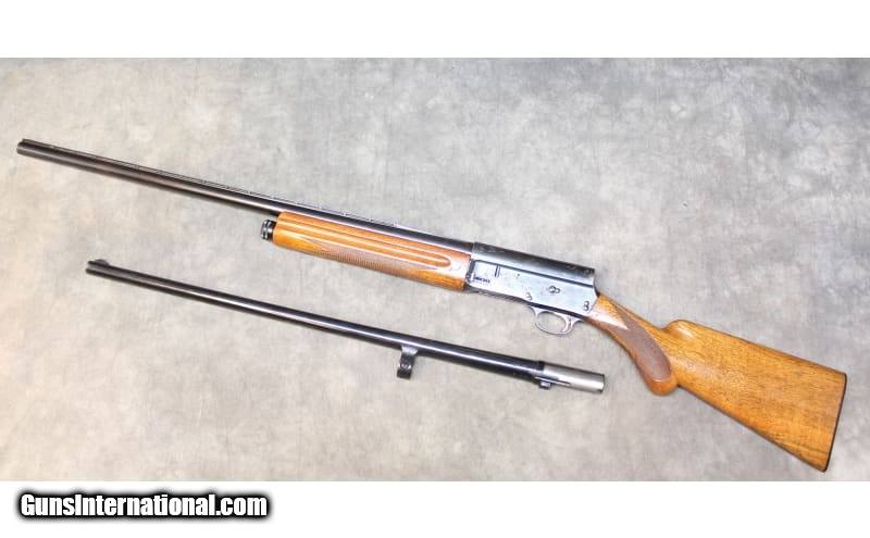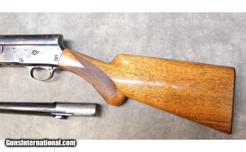 Description: A great shotgun in very good condition for its age (serial number -5S 46022), manufacture date - 1965. 16 Gauge SOLD Curio/Relic: Yes Chambers: 2 3/4 INCH Metal Condition: VERY GOOD Wood Condition: VERY GOOD Bore Condition: VERY GOOD Barrels: 27 1/2 INCH VENT RIB + 25 1/2 INCH STANDARD Butt Pad: FACTORY READING "BROWNING AUTOMATIC" - 'FN' IN A CIRCLE Weight: 6 lbs Sights: METAL BEAD IN THE 27 1/2" - RAISED METAL BEAD ON THE 25 1/2 Chokes: FULL CHOKE ON THE 27 1/2" BARREL - MODIFIED CHOKE ON THE 25 1/2" BARREL Item Location: Oklahoma City, OK |
