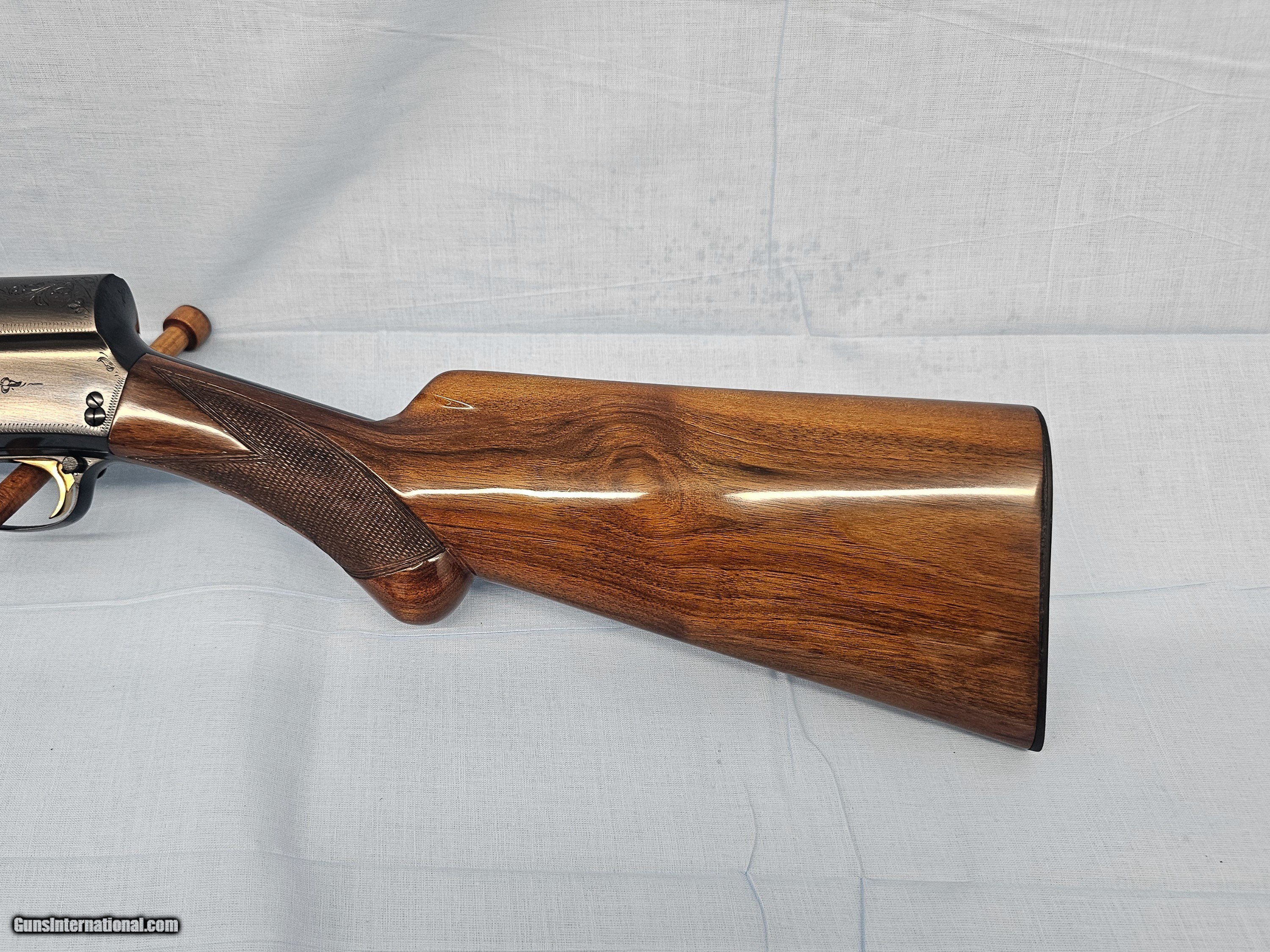 Description: MADE IN BELGIUM IN 1952. BARREL IS 28'' WITH A VENT RIB AND CHOKED MOD. FULL RESTORATION. PLEASE ADD $75 FOR SHIPPING. SOLD Curio/Relic: Yes Shotgun Gauge: 16 Gauge Manufacturer: BROWNING Model: AUTO 5 Condition: EXCELLENT Metal Condition: EXCELLENT Wood Condition: EXCELLENT Bore Condition: EXCELLENT Action: SEMI Triggers: GOLD LOP: 14 1/4'' Weight: 7 LB 10 OZ Extras: NONE |