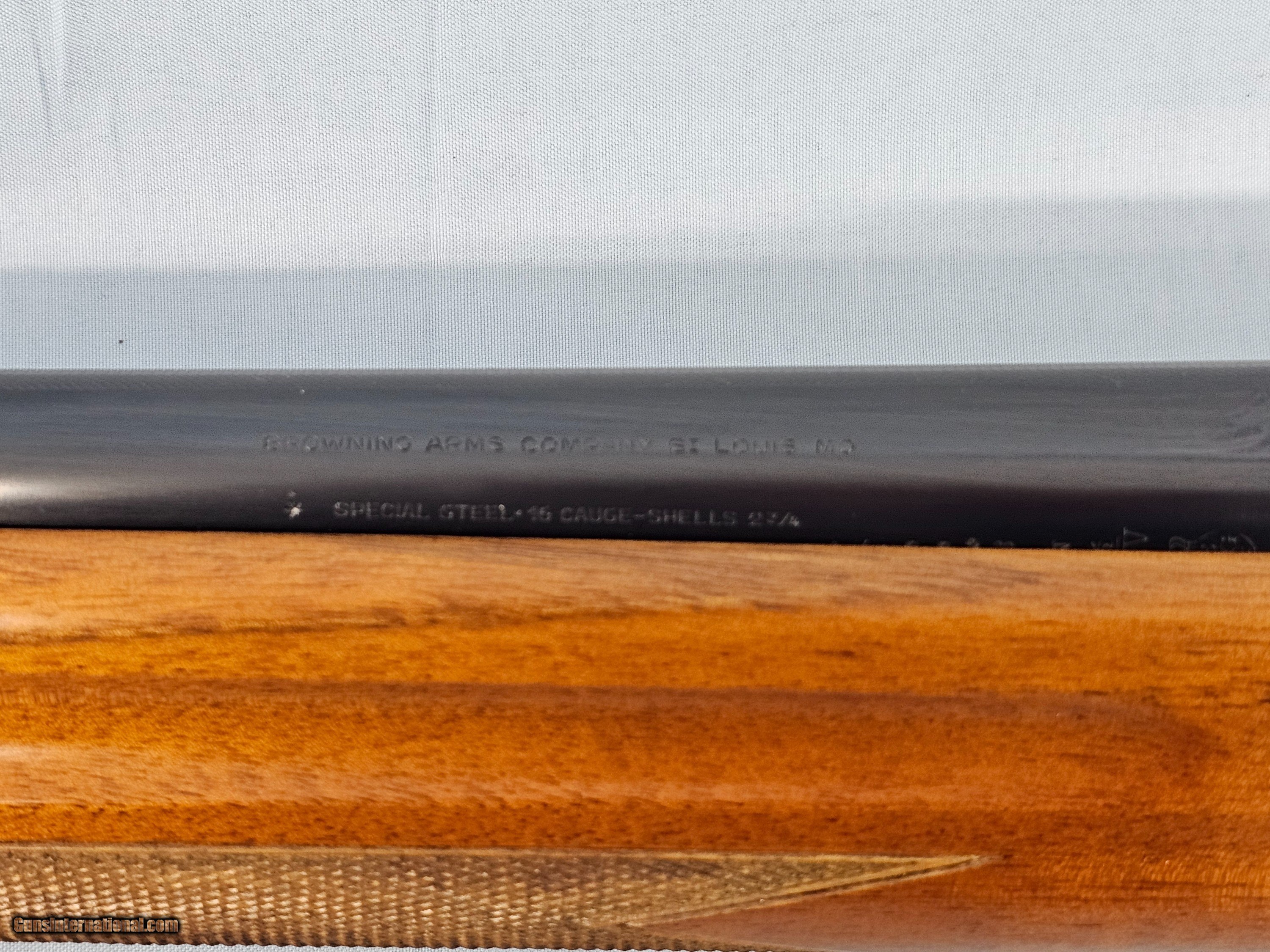Description: MADE IN BELGIUM IN 1950. BARREL IS 28'' WITH MATTING AND CHOKED FULL. FULL RESTORATION. PLEASE ADD $75 FOR SHIPPING. SOLD Curio/Relic: Yes Shotgun Gauge: 16 Gauge Manufacturer: BROWNING Model: AUTO 5 Condition: EXCELLENT Metal Condition: EXCELLENT Wood Condition: EXCELLENT Bore Condition: EXCELLENT Action: SEMI LOP: 14 1/4'' Weight: 7 LB Extras: NONE |