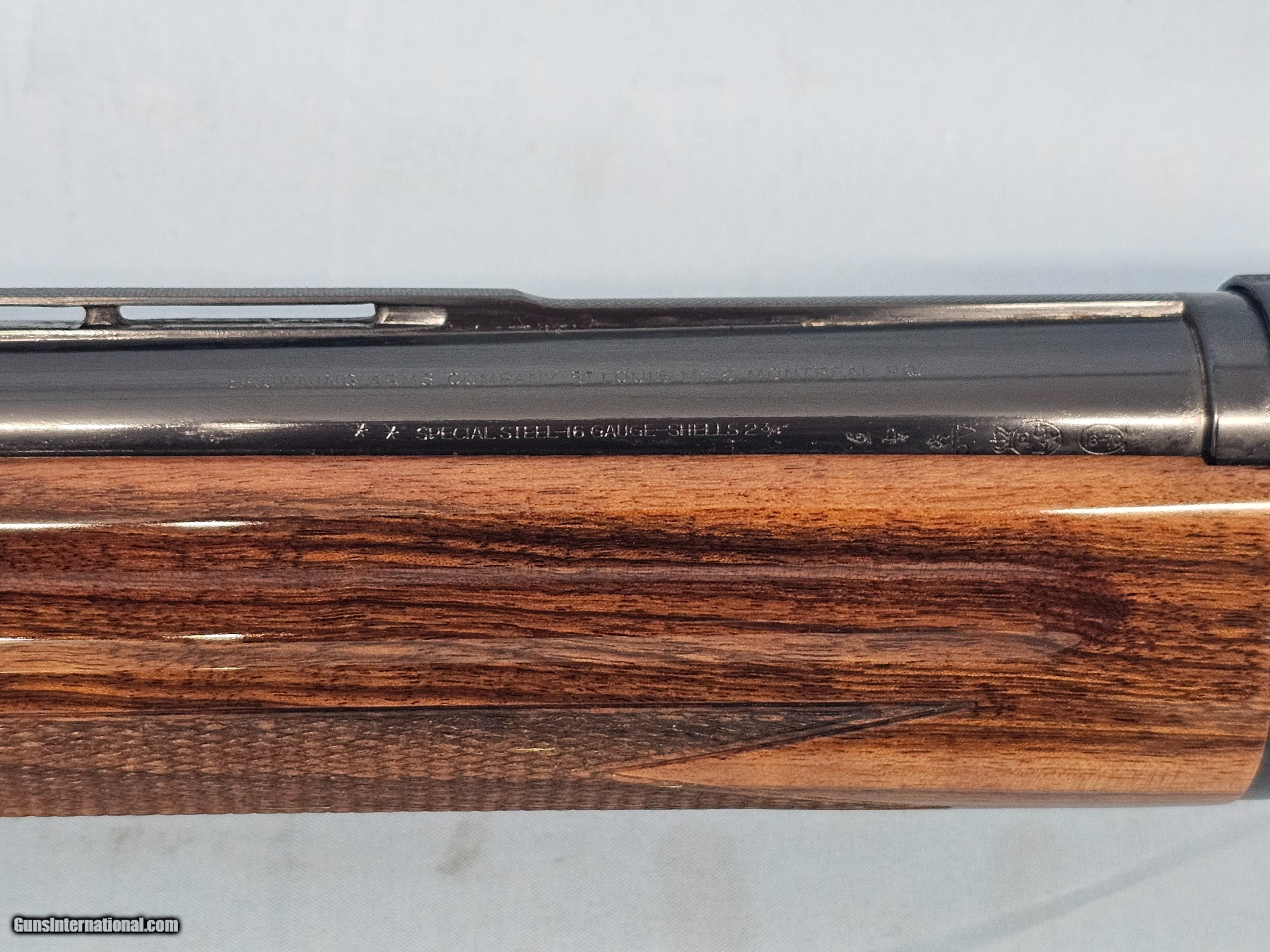 Description: MADE IN BELGIUM IN 1963. 28'' BARREL WITH VENT RIB AND CHOKED MOD. FULL RESTORATION. PLEASE ADD $75 FOR SHIPPING. SOLD Curio/Relic: Yes Shotgun Gauge: 16 Gauge Manufacturer: BROWNING Model: AUTO 5 Condition: EXCELLENT Metal Condition: EXCELLENT Wood Condition: EXCELLENT Bore Condition: EXCELLENT Action: SEMI LOP: 14 1/4'' Weight: 7 LB 12 OZ |