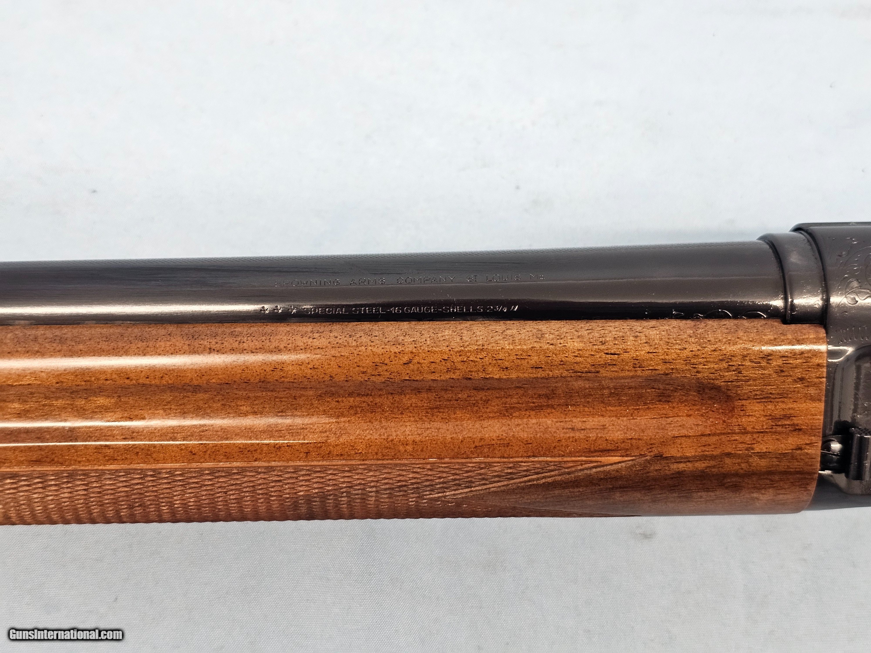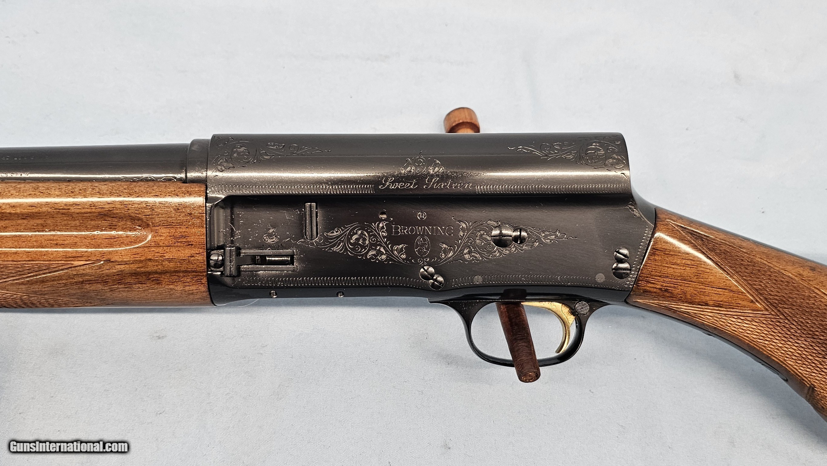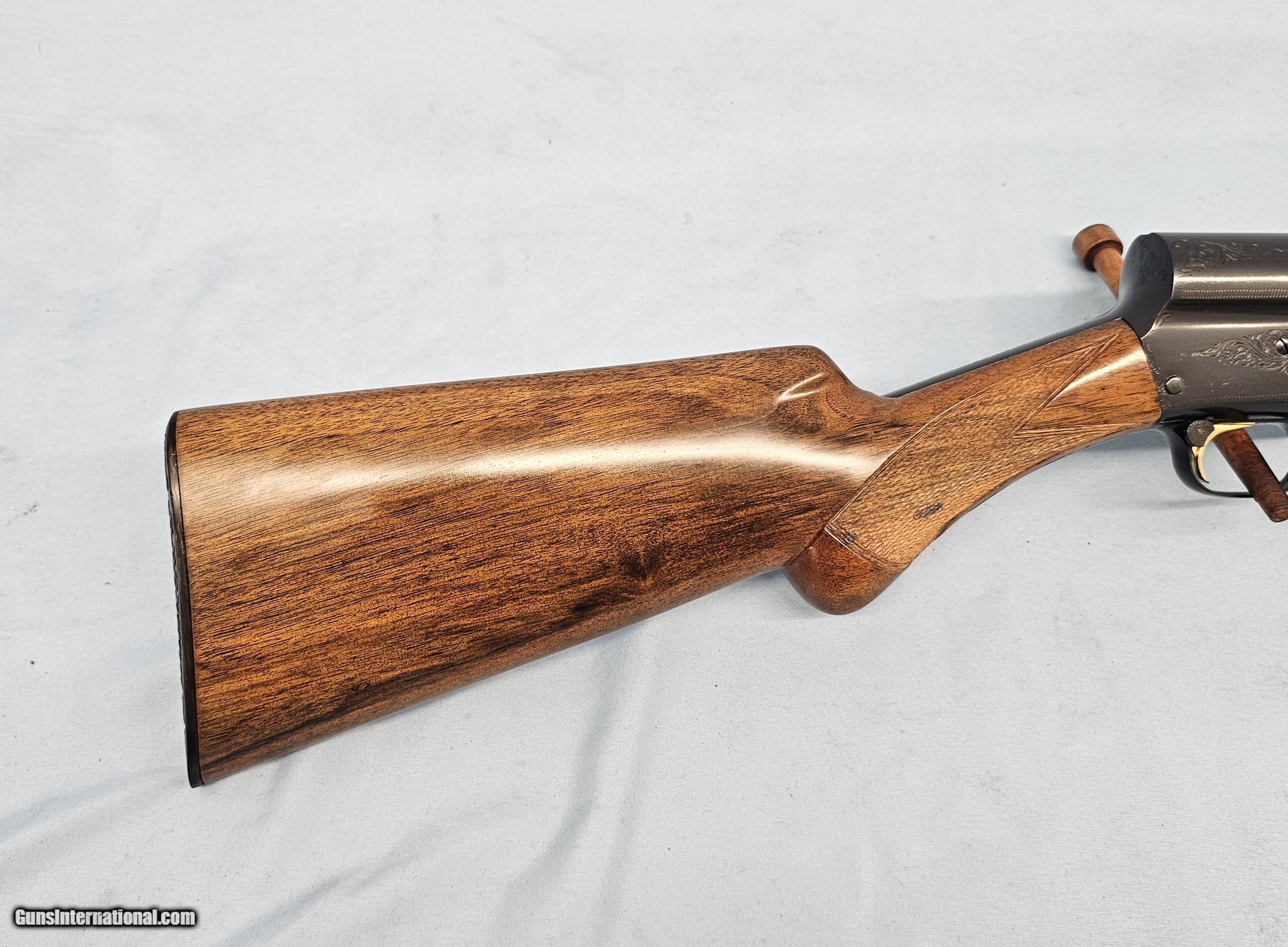 Description: MADE IN BELGIUM IN 1952 26'' BARREL WITH MATTING CHOKED CYL. 14 1/4'' L.O.P. 6.4 LBS FULL RESTORATION BY ART ISAACSON SOLD Shotgun Gauge: 16 Gauge Manufacturer: BROWNING Model: AUTO 5 Condition: EXCELLENT Metal Condition: EXCELLENT Wood Condition: EXCELLENT Bore Condition: EXCELLENT Action: SEMI Triggers: GOLD |