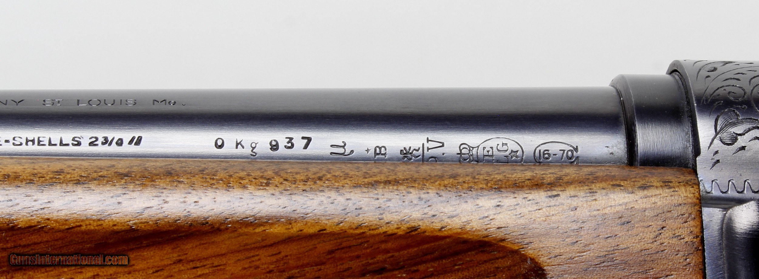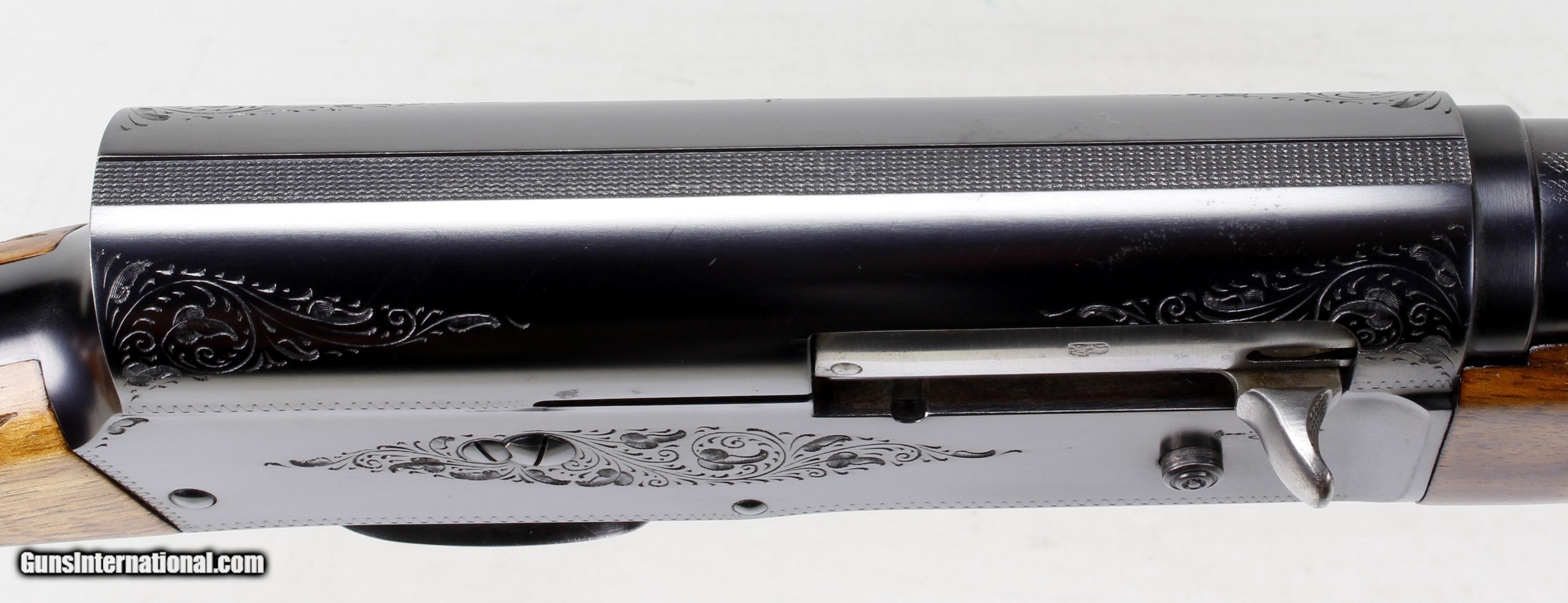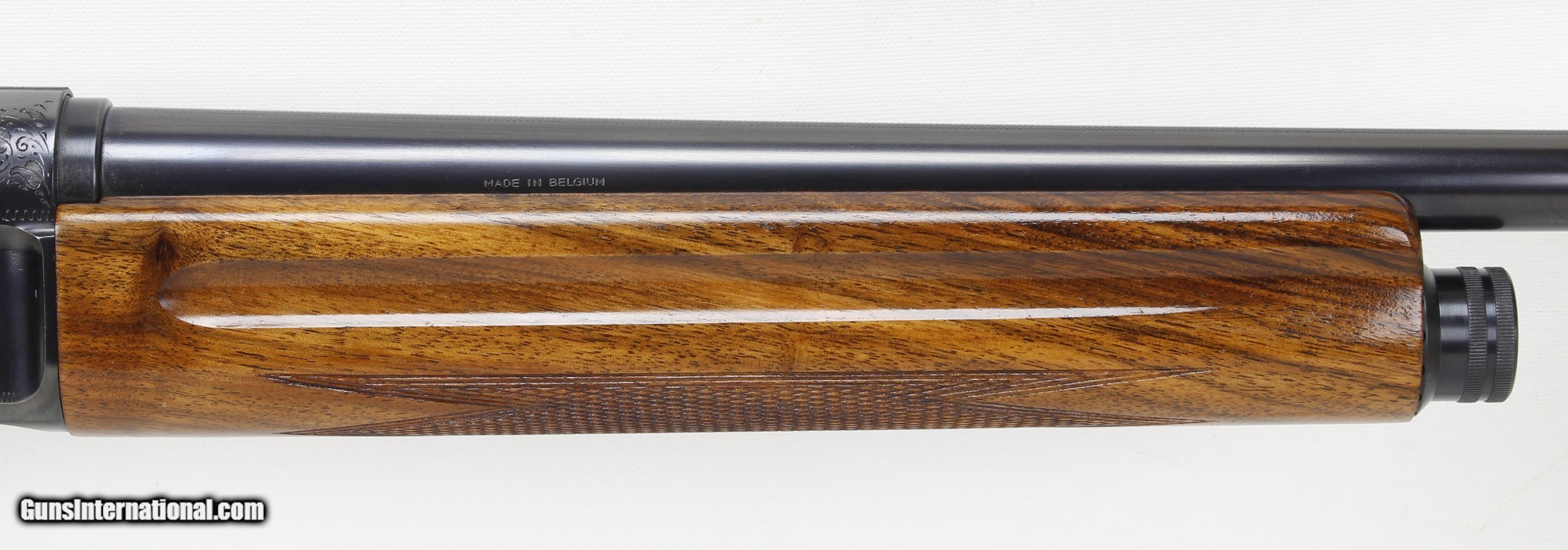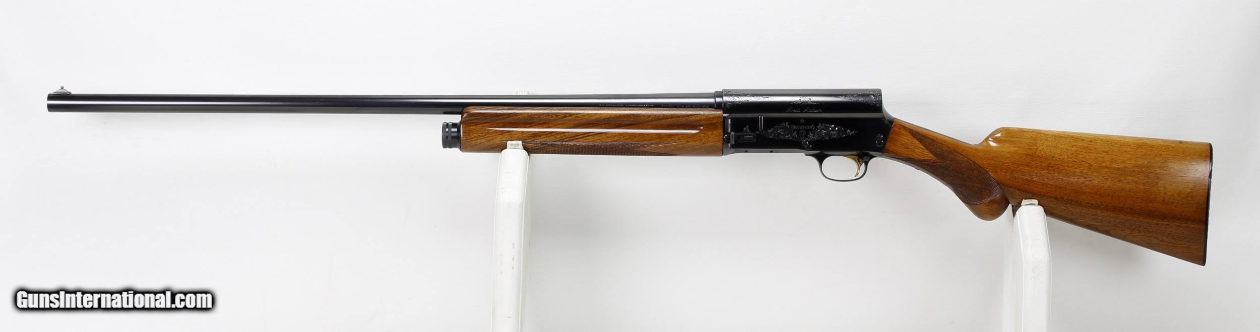 Description: Browning Auto-5 "Sweet Sixteen" Semi-Auto 16Ga. Shotgun. SN #S34535. Mfg. in Belgium in 1955. LOP 14 3/8". Chamber 2 3/4". Modified Choke. DAH 2 1/4"- DAC 1 1/2". 27" Barrel with a Matte Rib and and an EXCELLENT Bright Bore. The Checkered Round Knob Pistol Grip Blonde Stock and Forend have been FULLY RESTORED by THE SHOOTER'S EXCHANGE SHOP as has the Scroll Engraved Blued Receiver and Barrel. Gold Plated Trigger. GUN APPEARS UN-FIRED IN THE FIELD. VERY NICE ALL-AROUND. Weight: 6 lbs. 8 oz. Trigger Pull: 3 1/2 lbs. More photos available upon request. Ships to Lower 48 W/ Insurance $55.00. SOLD Curio/Relic: Yes Shotgun Gauge: 16 Gauge Manufacturer: Browning Model: Auto-5 Sweet Sixteen Serial Number: S34535 Barrel Length: 27 Chambers: 2 3/4 Condition: Excellent Metal Condition: Refinished Wood Condition: Refinished Bore Condition: Excellent Action: Semi-Auto LOP: 14 3/8 Rib: Matte Finish: Blue Weight: 6 lbs 8 oz. Manufacture Date: 1955 Chokes: Modified |