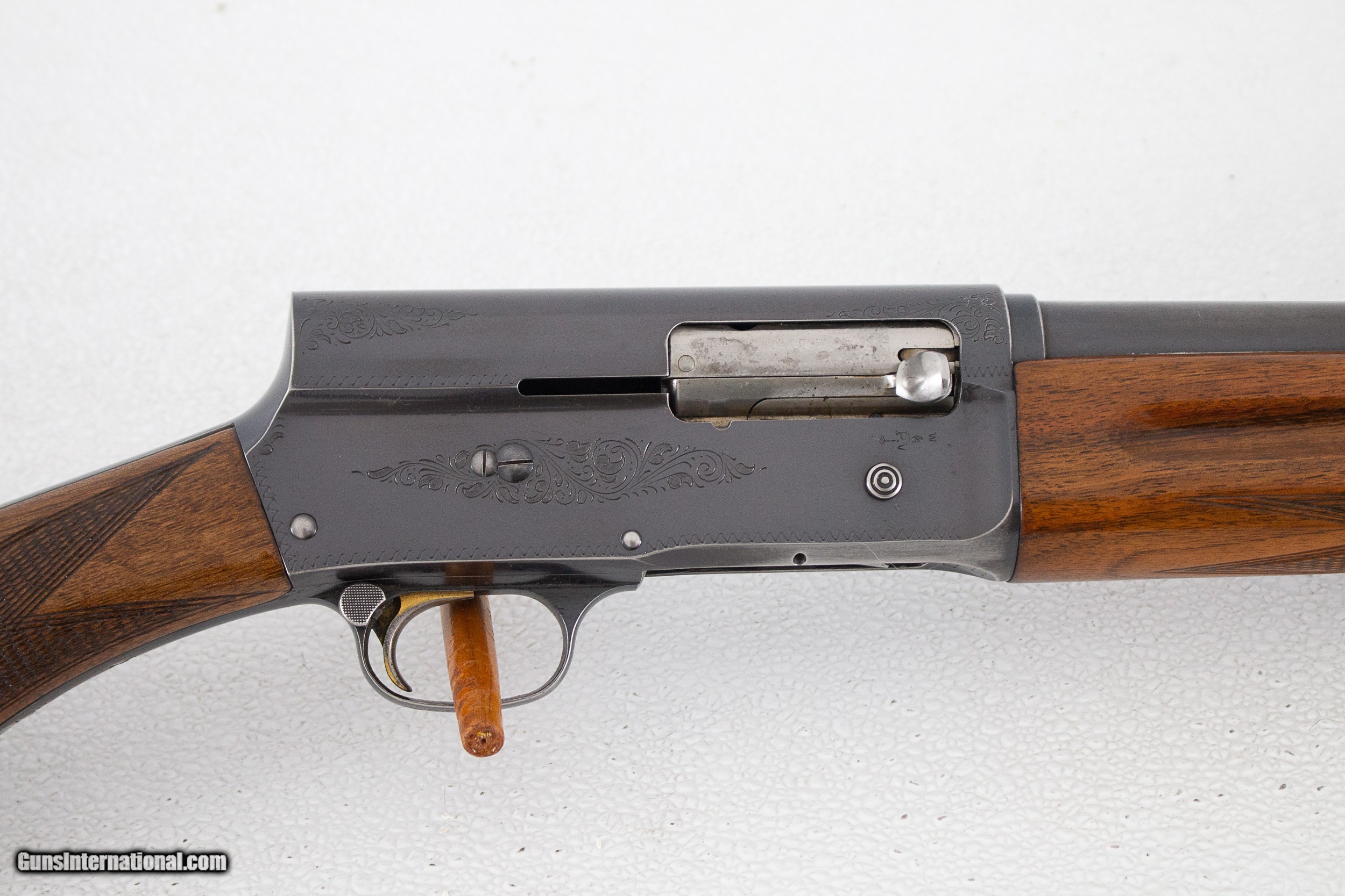 Description: MADE IN BELGIUM IN 1959. BARREL IS 28'' WITH A MATTE RIB AND CHOKED MOD. OUTSTANDING WOOD. PLEASE ADD $50 FOR SHIPPING. SOLD Curio/Relic: Yes Shotgun Gauge: 16 Gauge Manufacturer: BROWNING Model: AUTO 5 Condition: USED Metal Condition: USED Wood Condition: USED Bore Condition: GOOD Action: SEMI Triggers: SINGLE/GOLD LOP: 14 1/4'' Extras: NONE |