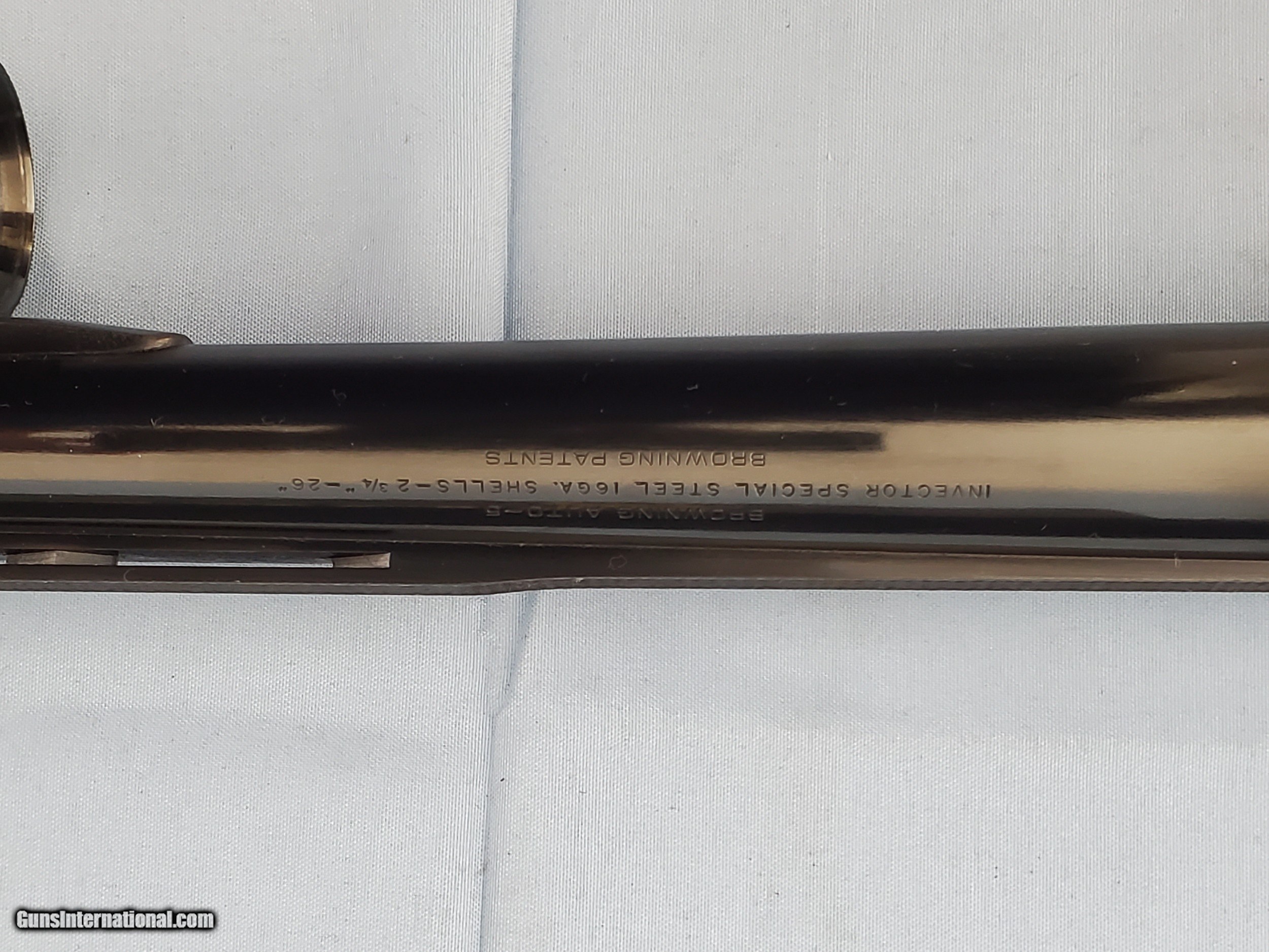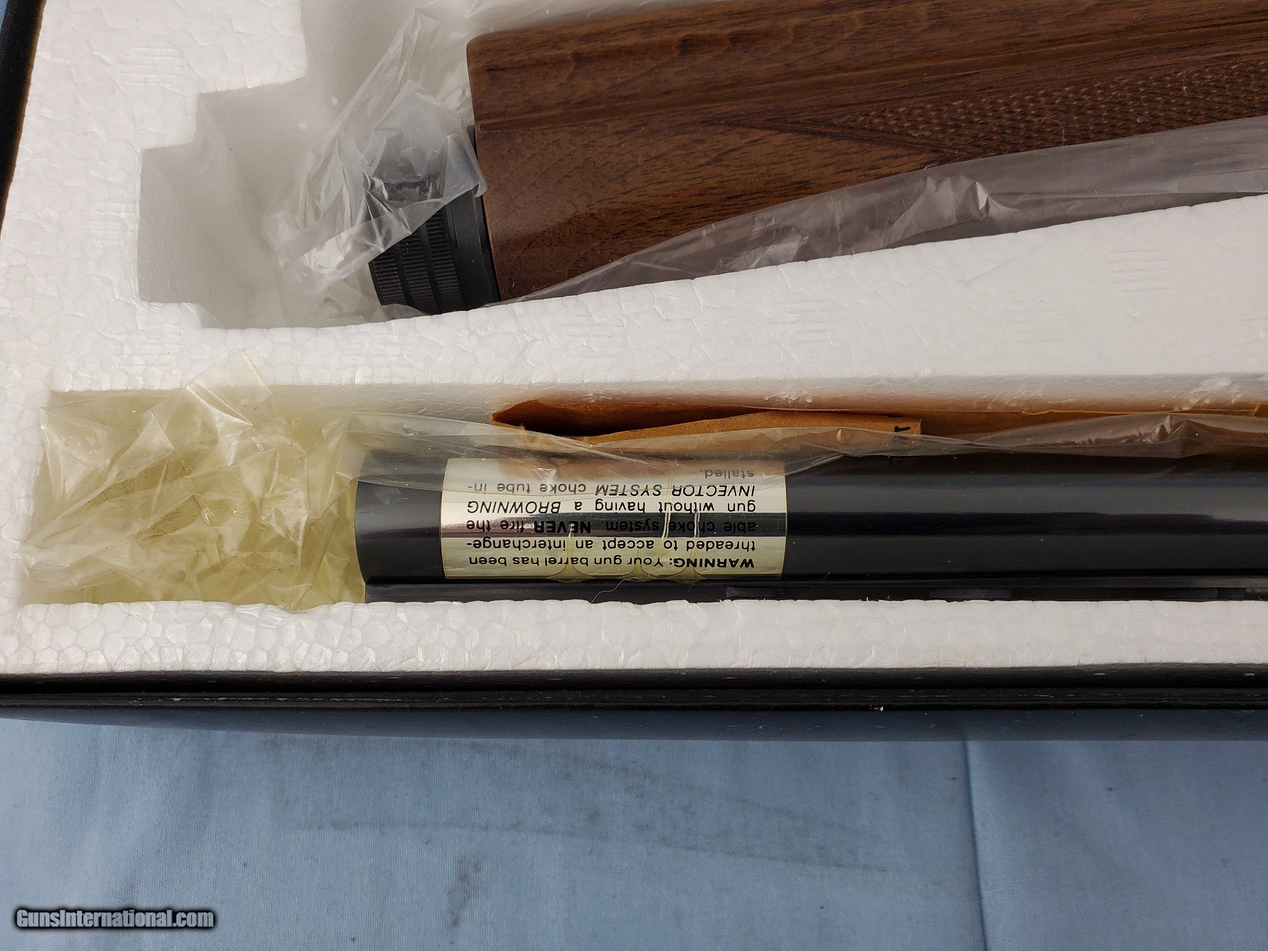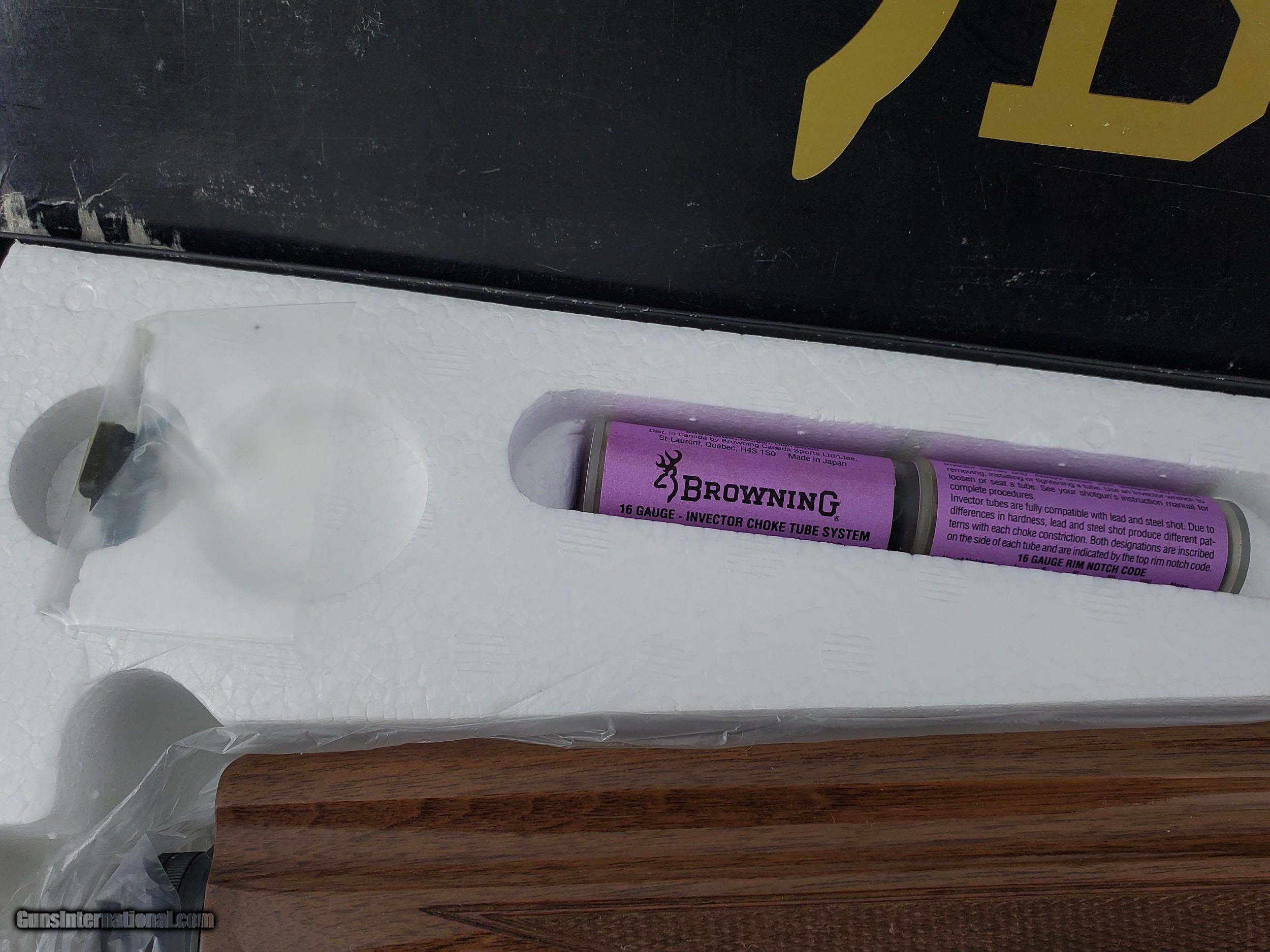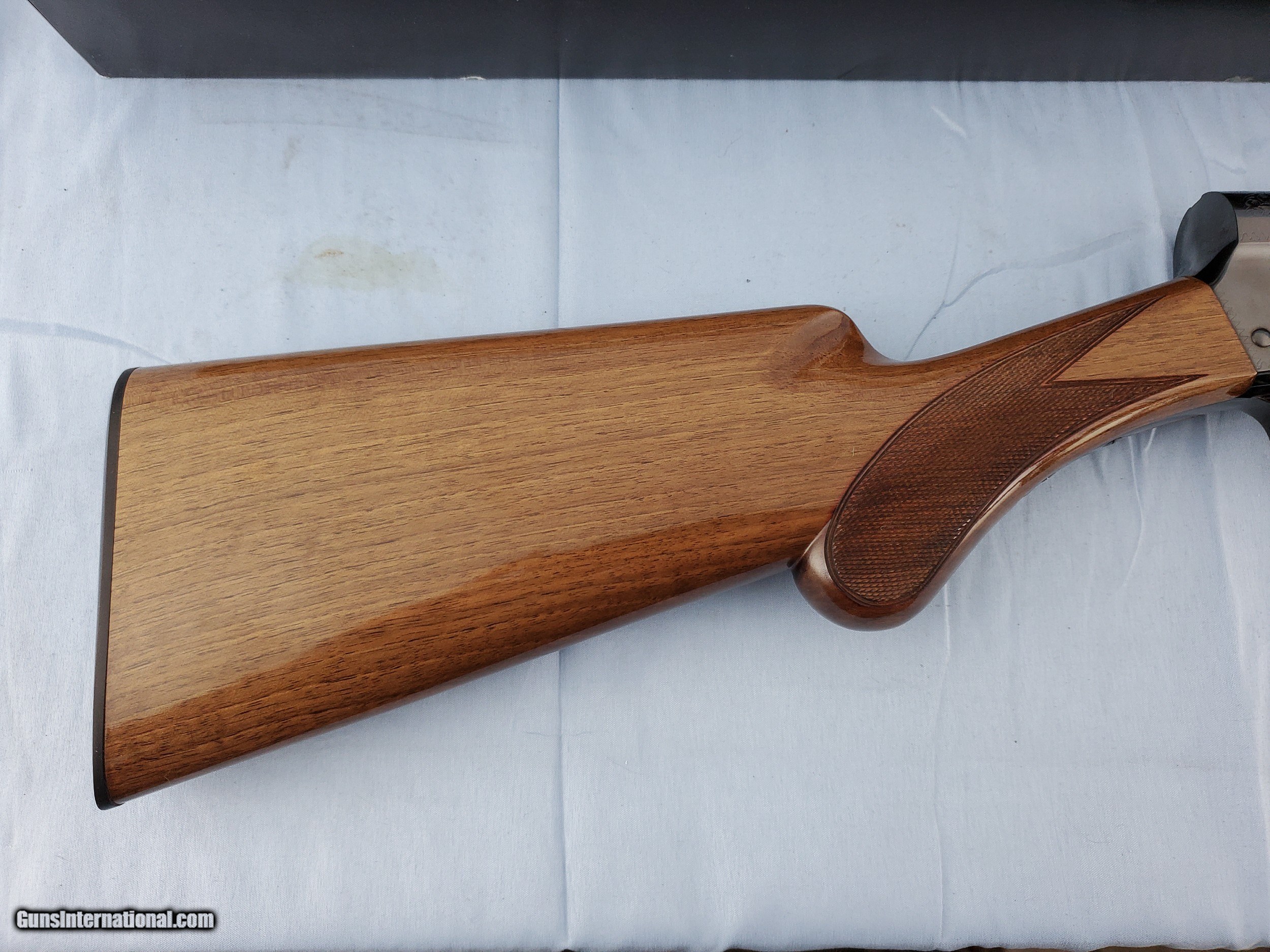 Description: MADE IN JAPAN IN 1991. BARREL IS 26'' WITH A VENT RIB AND INVECTOR CHOKED. NEW IN BOX. INCLUDES 3 CHOKES, BOOKLET, WRENCH, AND CORRECT BOX. PLEASE ADD $75 FOR SHIPPING. SOLD Shotgun Gauge: 16 Gauge Manufacturer: BROWNING Model: AUTO 5 Condition: EXCELLENT Metal Condition: EXCELLENT Wood Condition: EXCELLENT Bore Condition: EXCELLENT Action: SEMI Triggers: SINGLE/GOLD LOP: 14 1/4'' Case: FACTORY BOX |