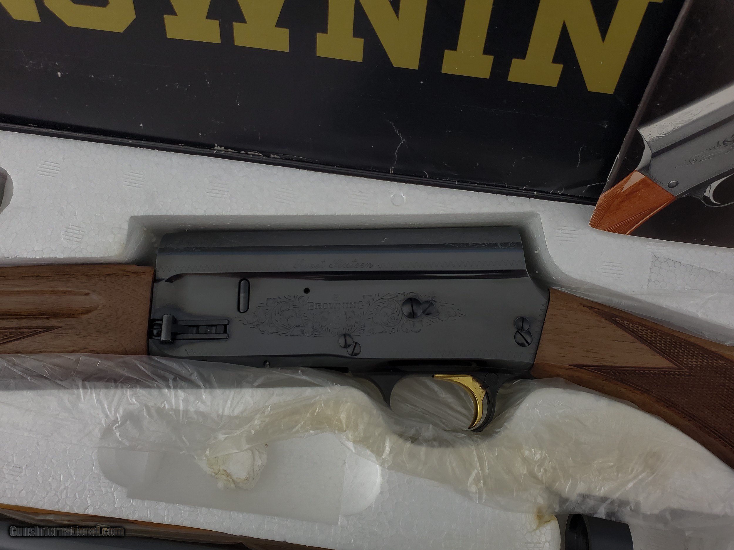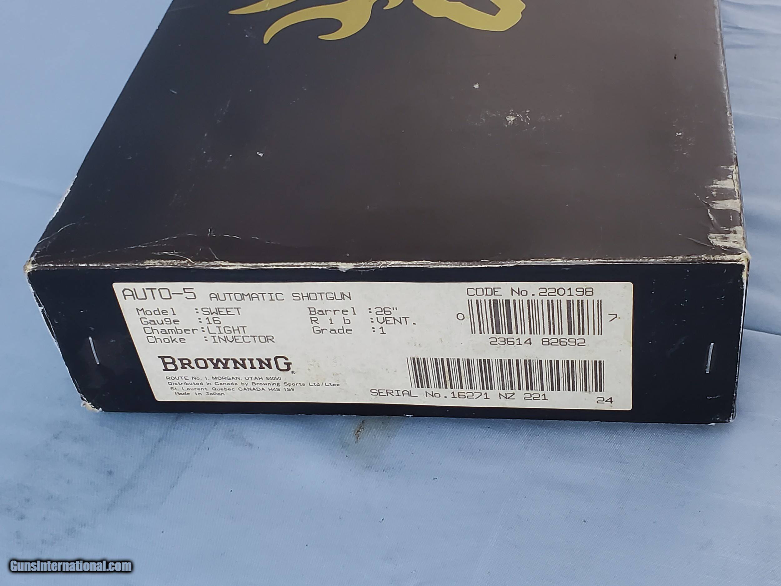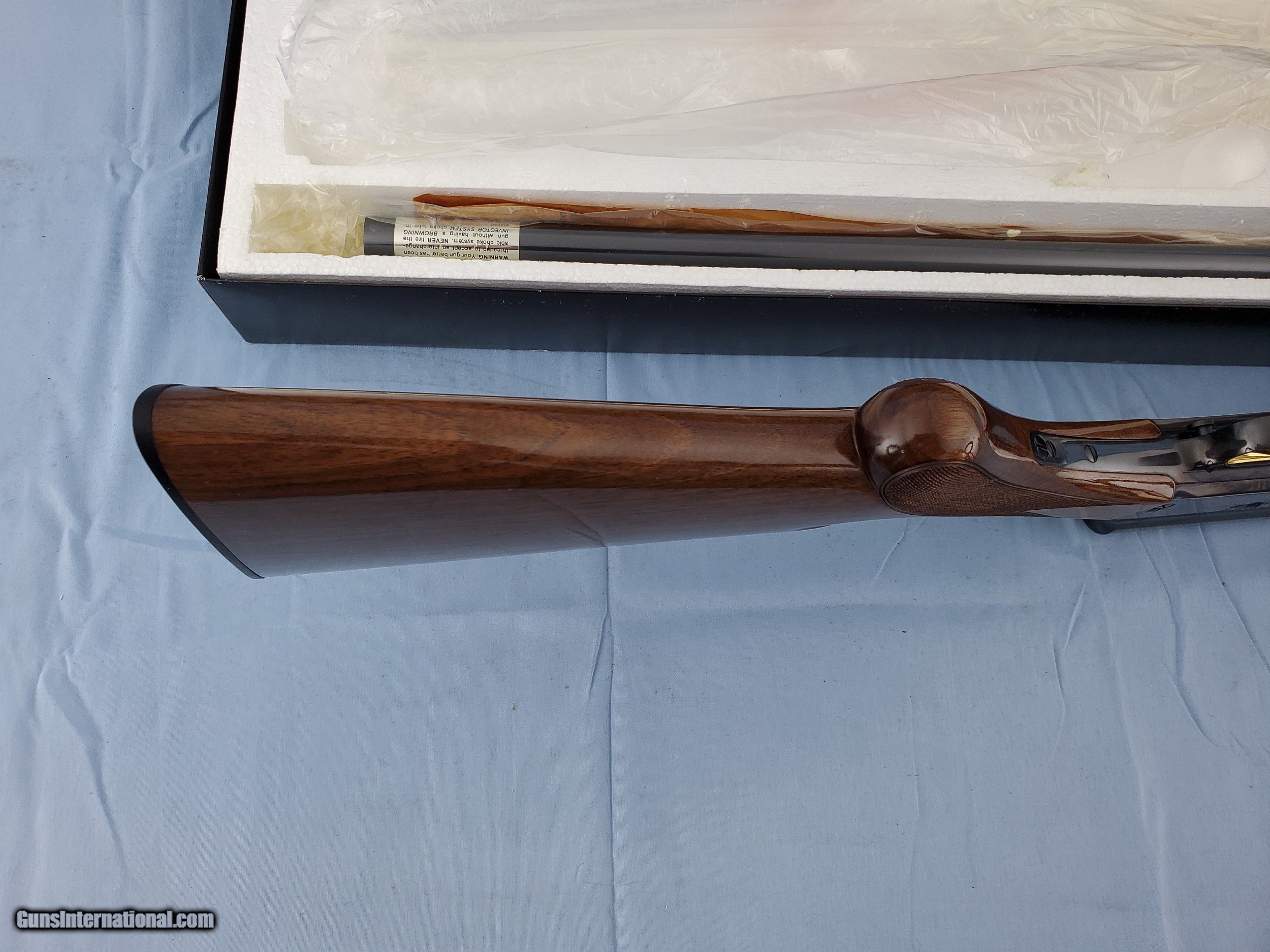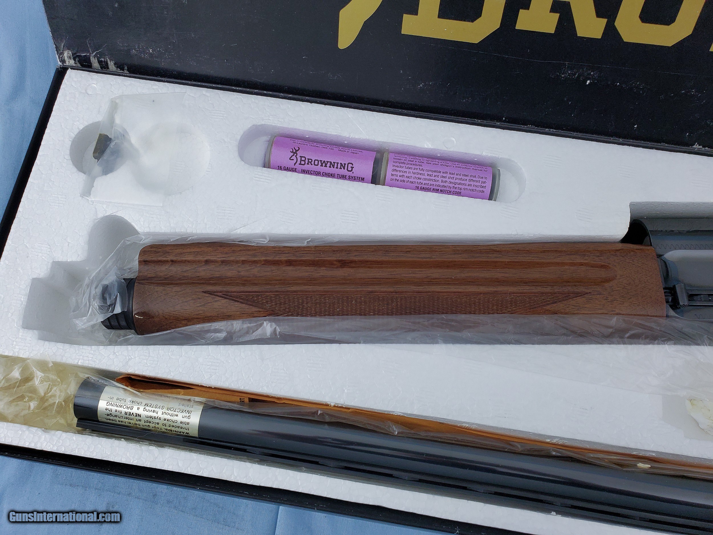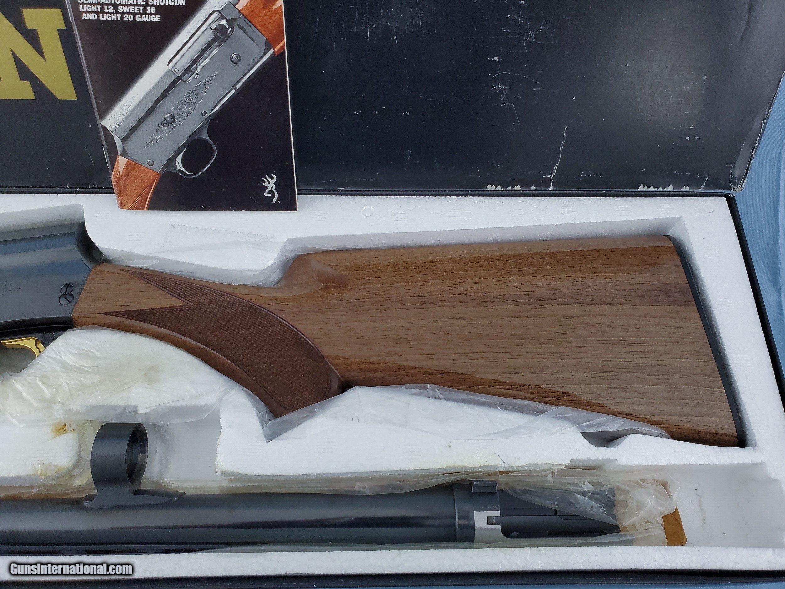 Description: MADE IN JAPAN IN 1991. BARREL IS 26'' WITH A VENT RIB AND INVECTOR CHOKED. NEW IN BOX. INCLUDES 3 CHOKES, BOOKLET, WRENCH, AND CORRECT BOX. PLEASE ADD $75 FOR SHIPPING. SOLD Shotgun Gauge: 16 Gauge Manufacturer: BROWNING Model: AUTO 5 Condition: EXCELLENT Metal Condition: EXCELLENT Wood Condition: EXCELLENT Bore Condition: EXCELLENT Action: SEMI Triggers: SINGLE/GOLD LOP: 14 1/4'' Case: FACTORY BOX |