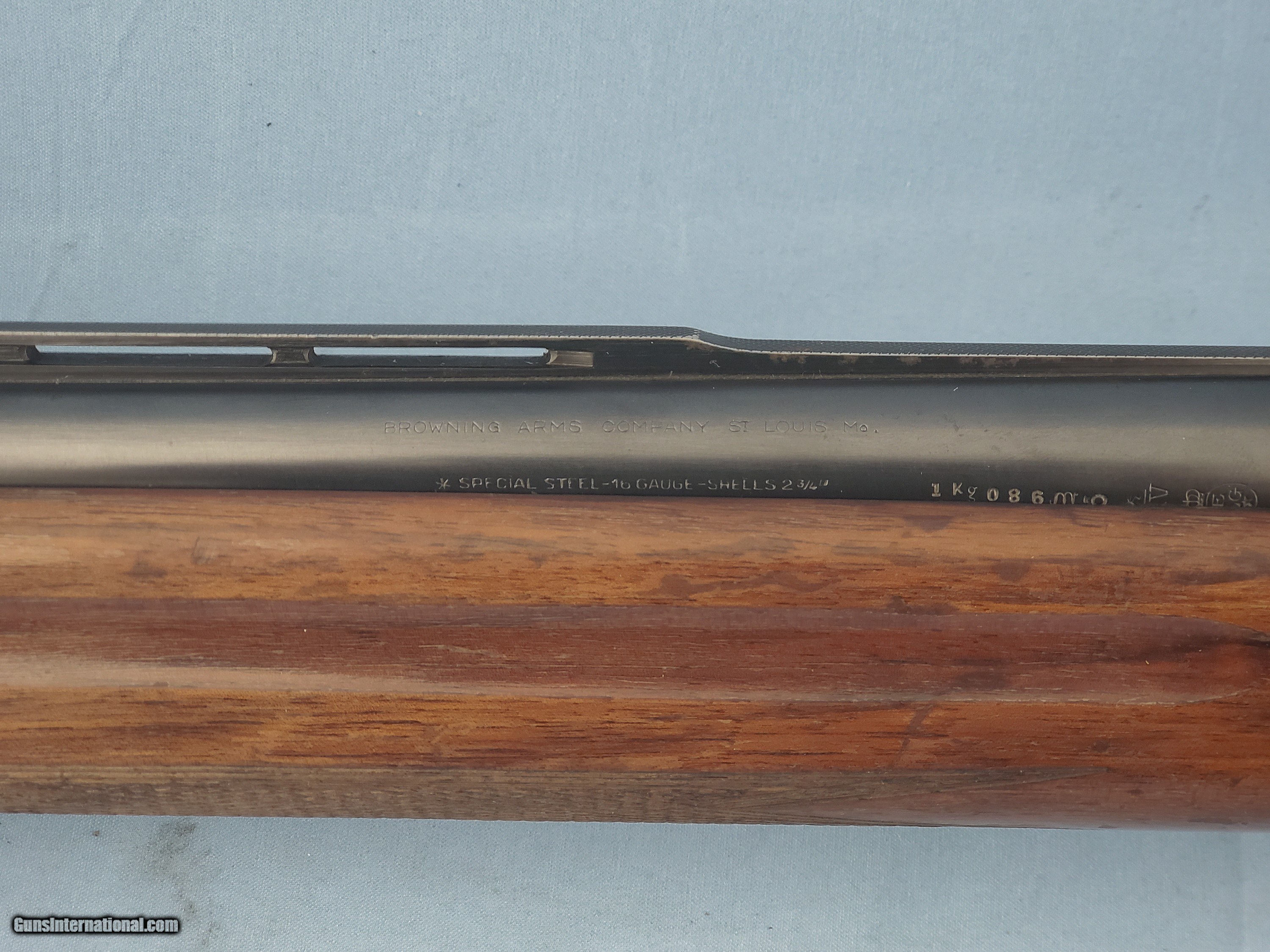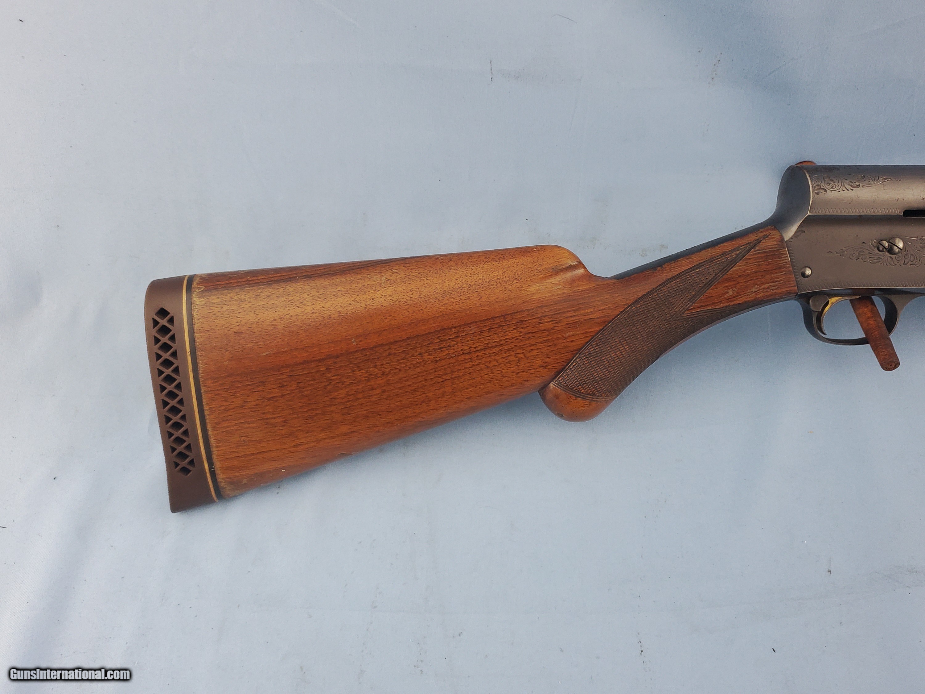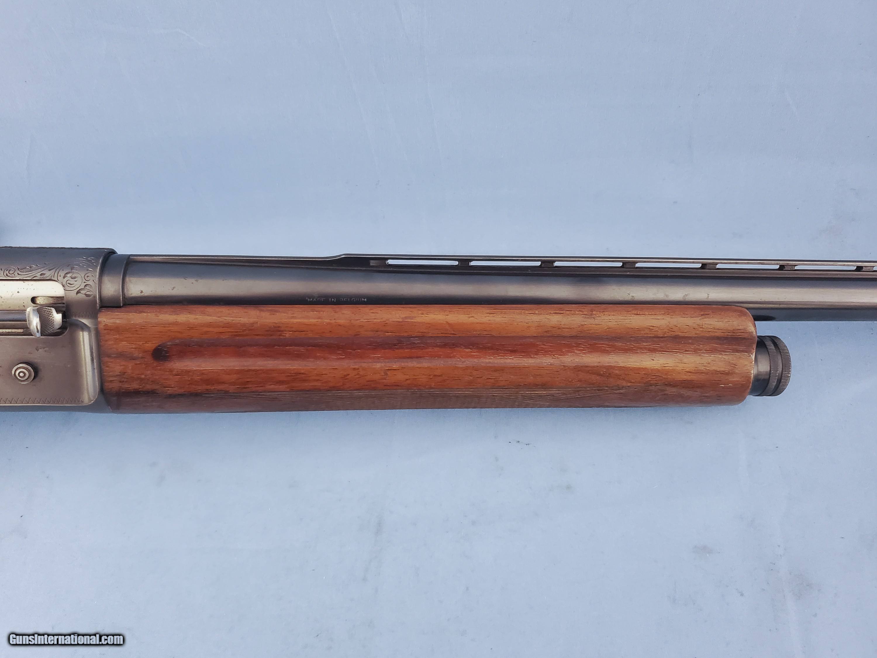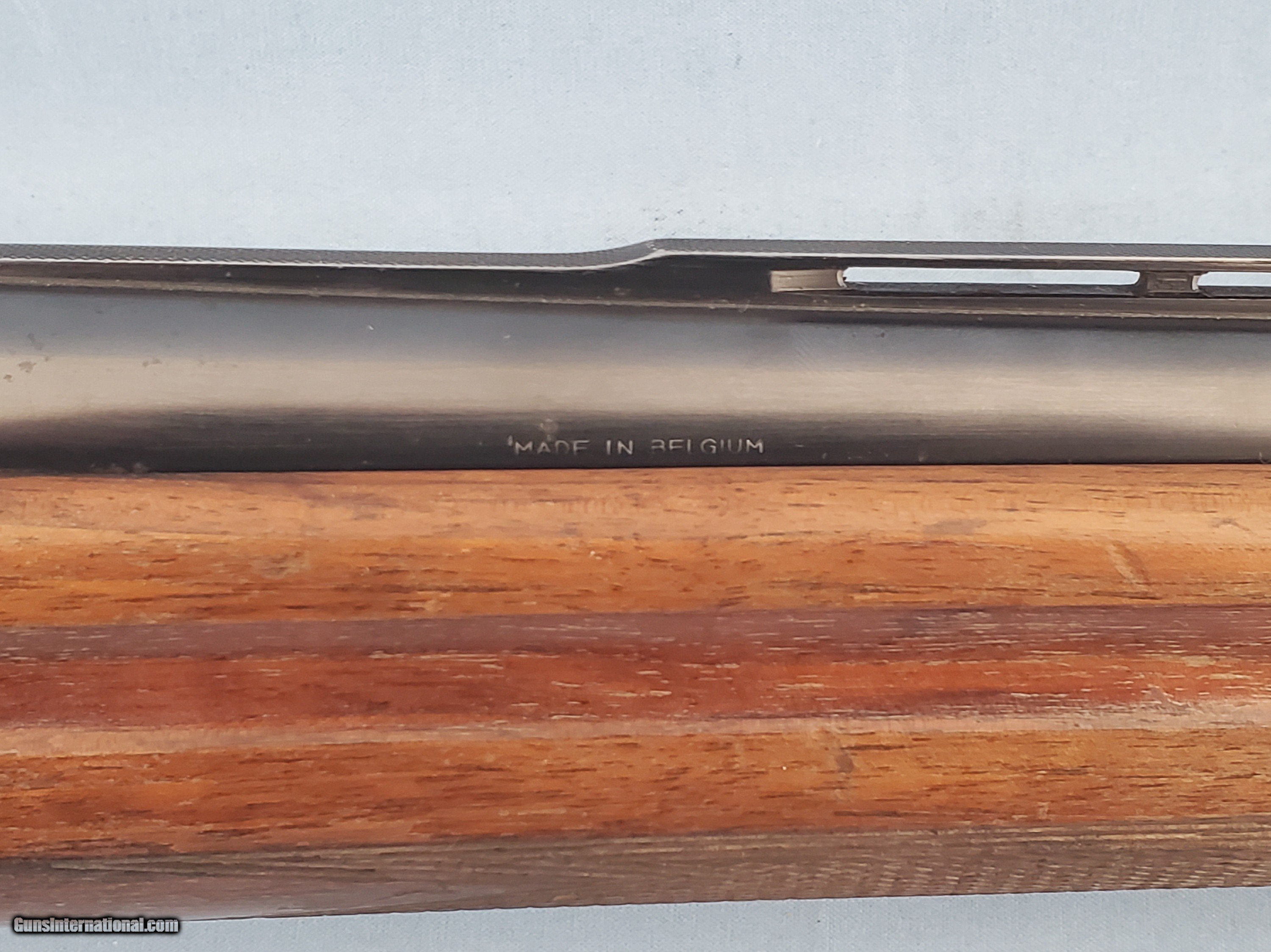 Description: MADE IN BELGIUM IN 1956. BARREL IS 28'' WITH A VENT RIB AND CHOKED FULL. FACTORY BLUE AND WOOD FINISH. PLEASE ADD $75 FOR SHIPPING. SOLD Curio/Relic: Yes Shotgun Gauge: 16 Gauge Manufacturer: BROWNING Model: AUTO 5 Condition: USED Metal Condition: USED Wood Condition: USED Bore Condition: GOOD LOP: 13 7/8'' Weight: 7 LB 4 OZ Extras: NONE |