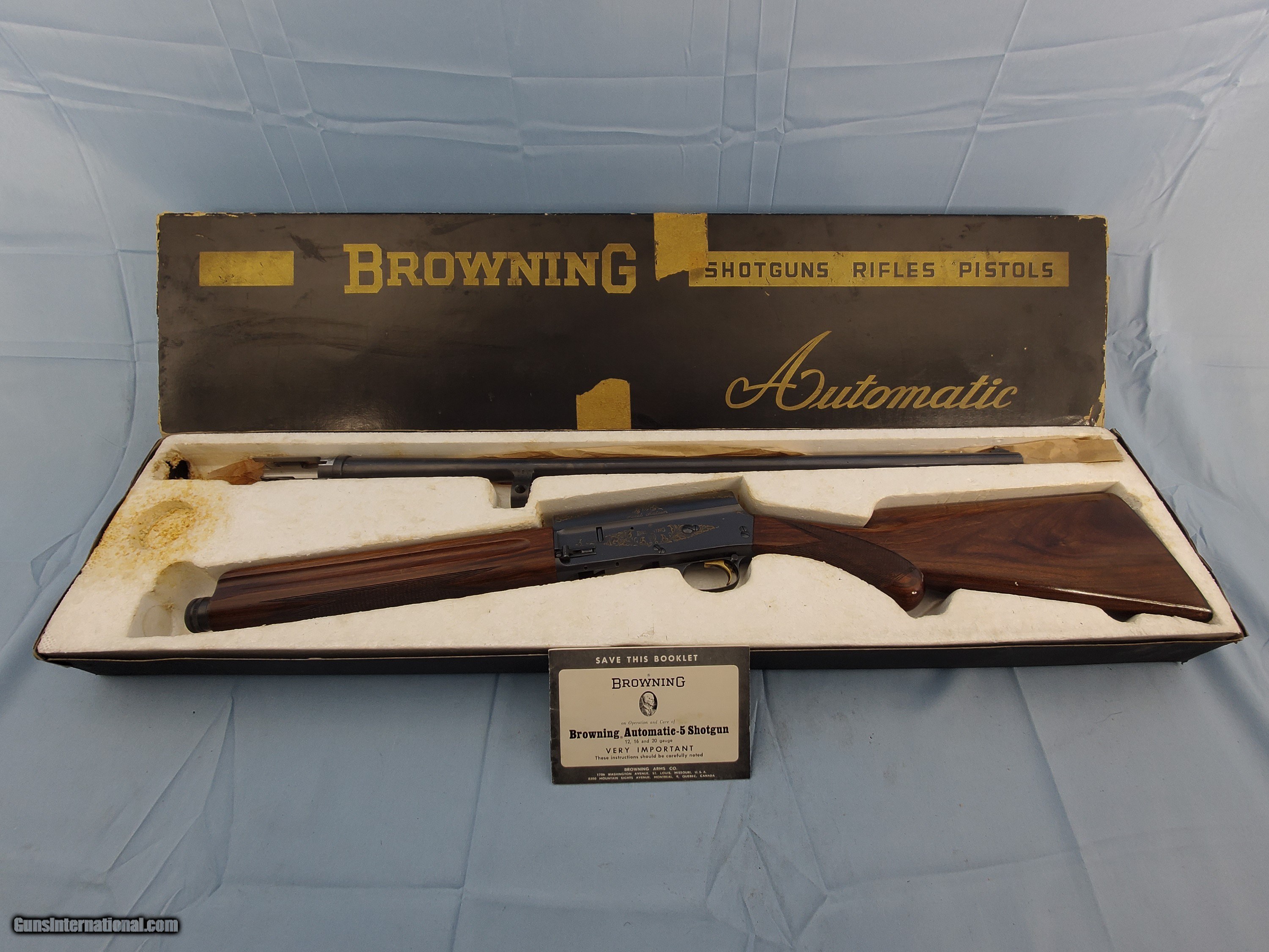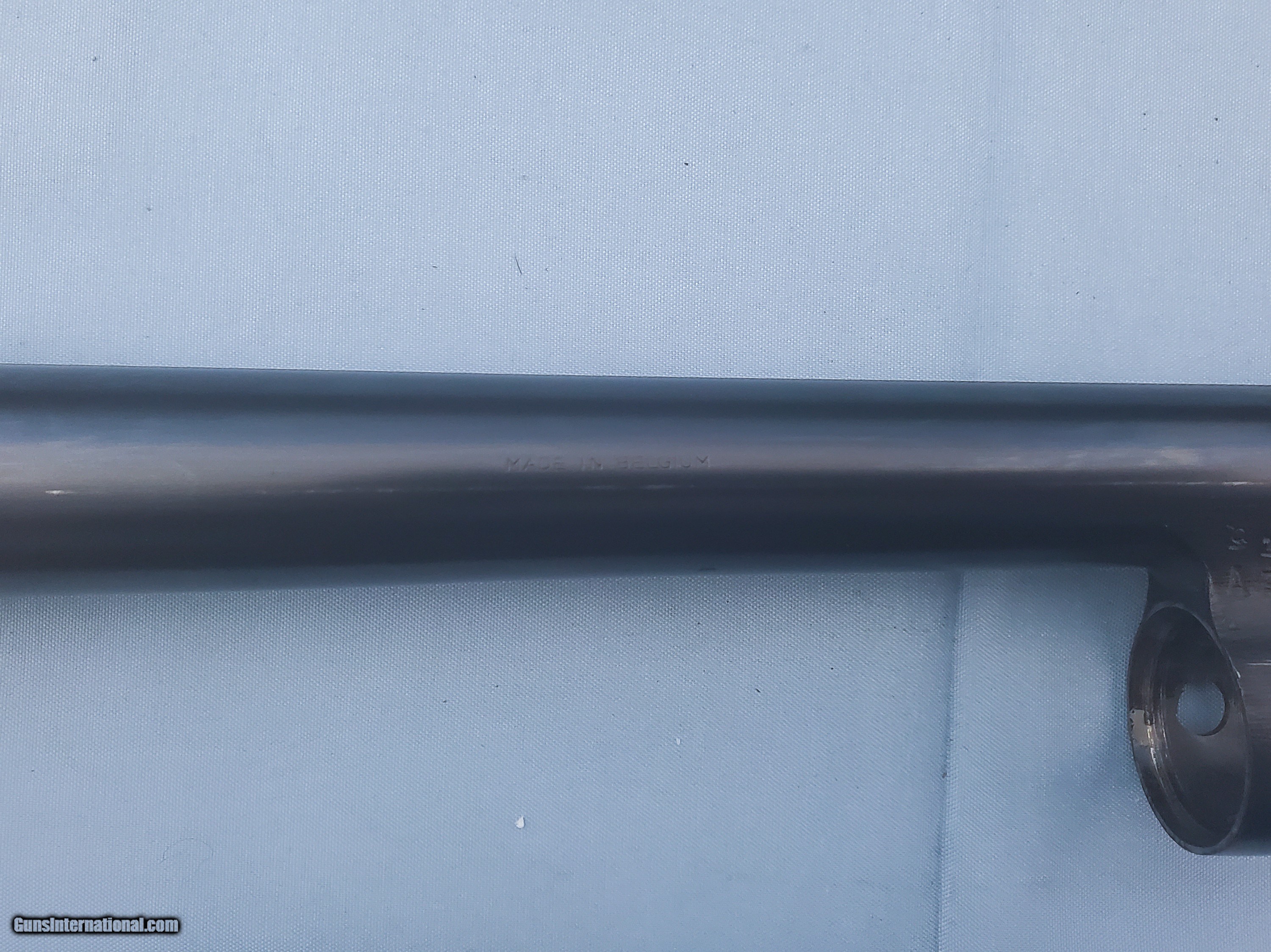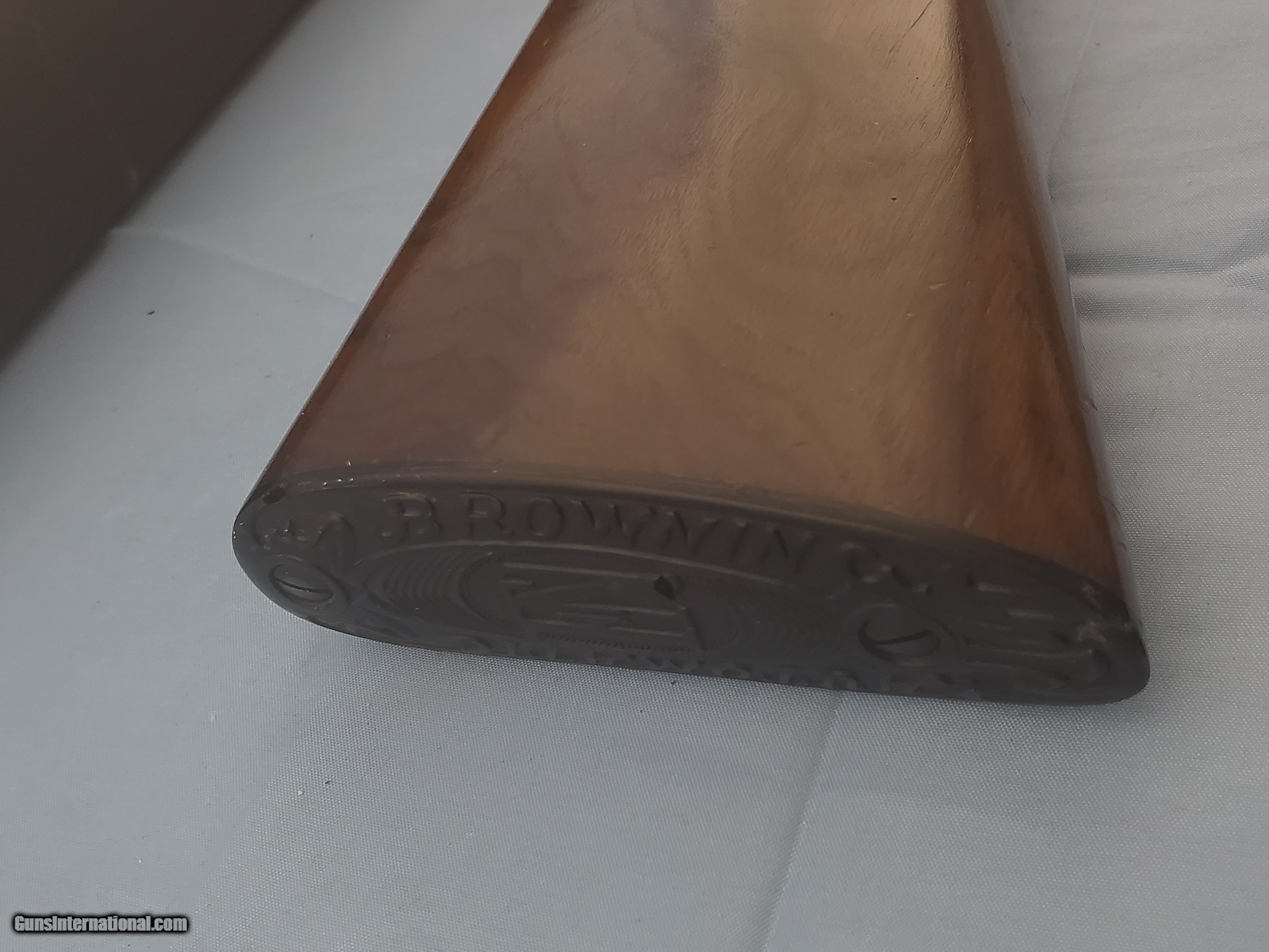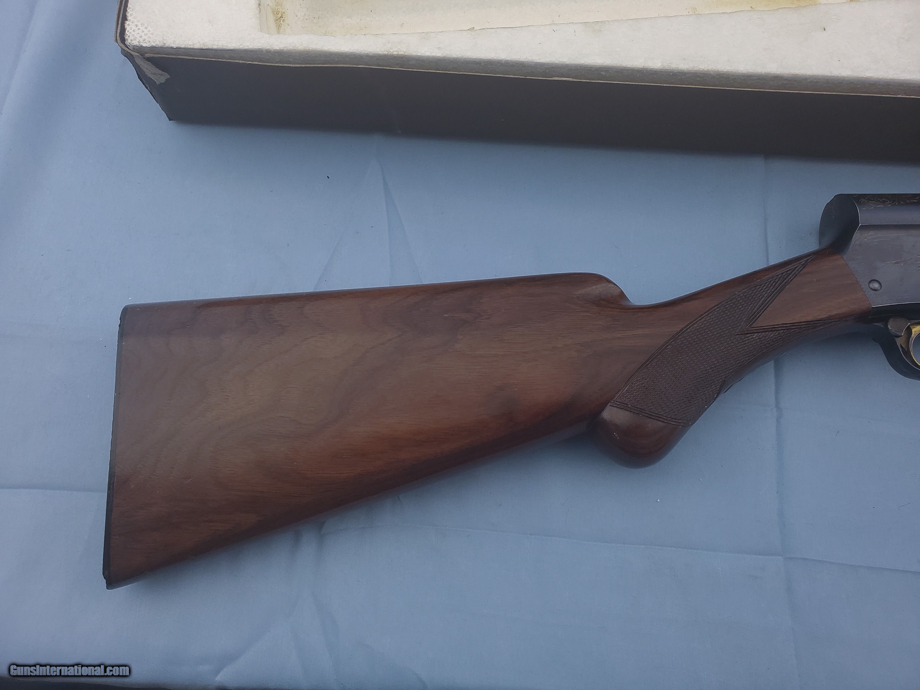 Description: MADE IN BELGIUM IN 1955. BARREL IS 26'' WITH A MATTED RIB AND CHOKED I.C. FACTORY BLUE AND WOOD FINISH. WRONG BOX WITH LABEL ADDED. PLEASE ADD $75 FOR SHIPPING. SOLD Curio/Relic: Yes Shotgun Gauge: 16 Gauge Manufacturer: BROWNING Model: AUTO 5 Condition: GOOD Metal Condition: GOOD Wood Condition: GOOD Bore Condition: GOOD Action: SEMI Triggers: GOLD LOP: 14 1/4'' Extras: BOX AND BOOKLET |
