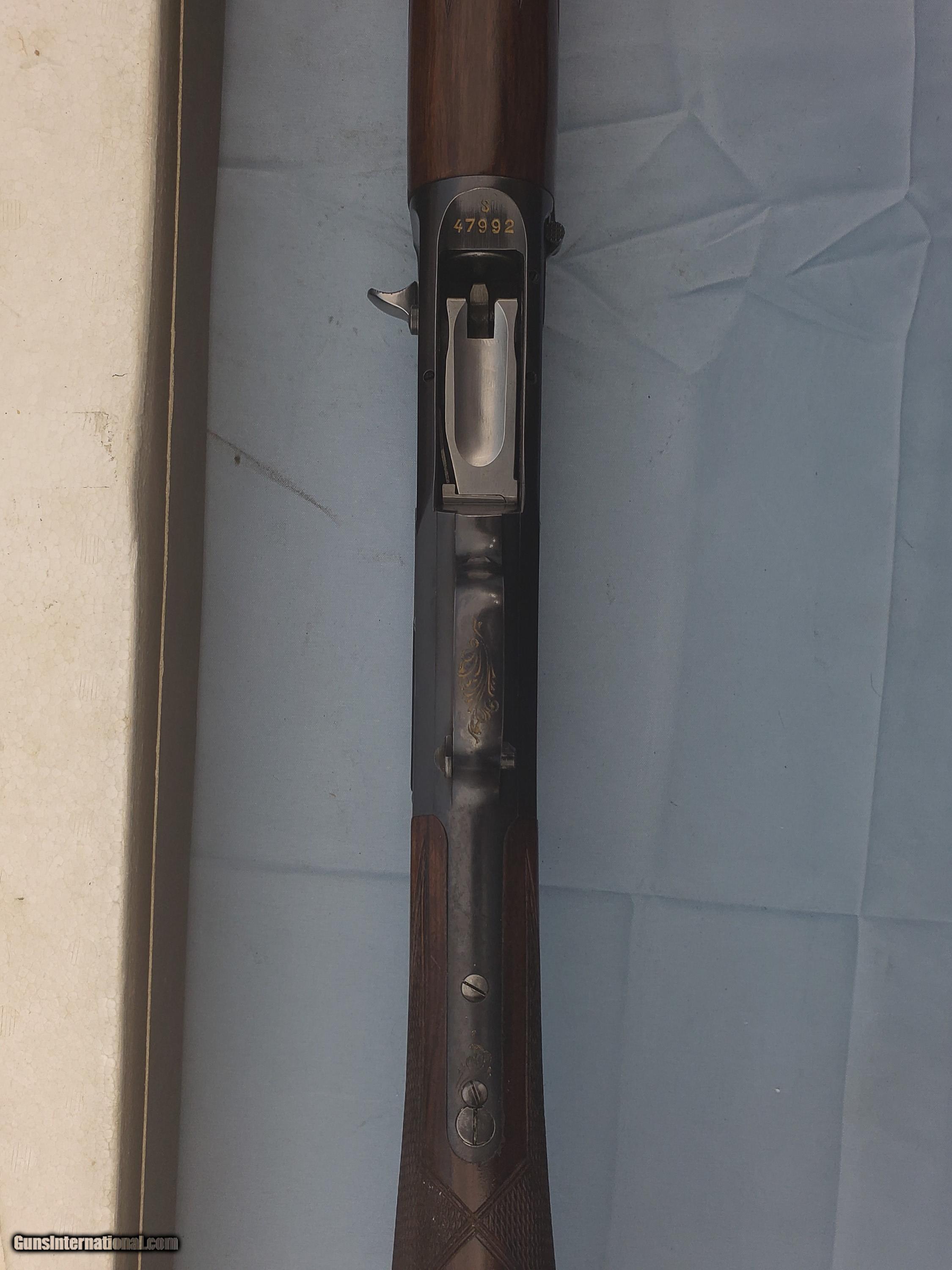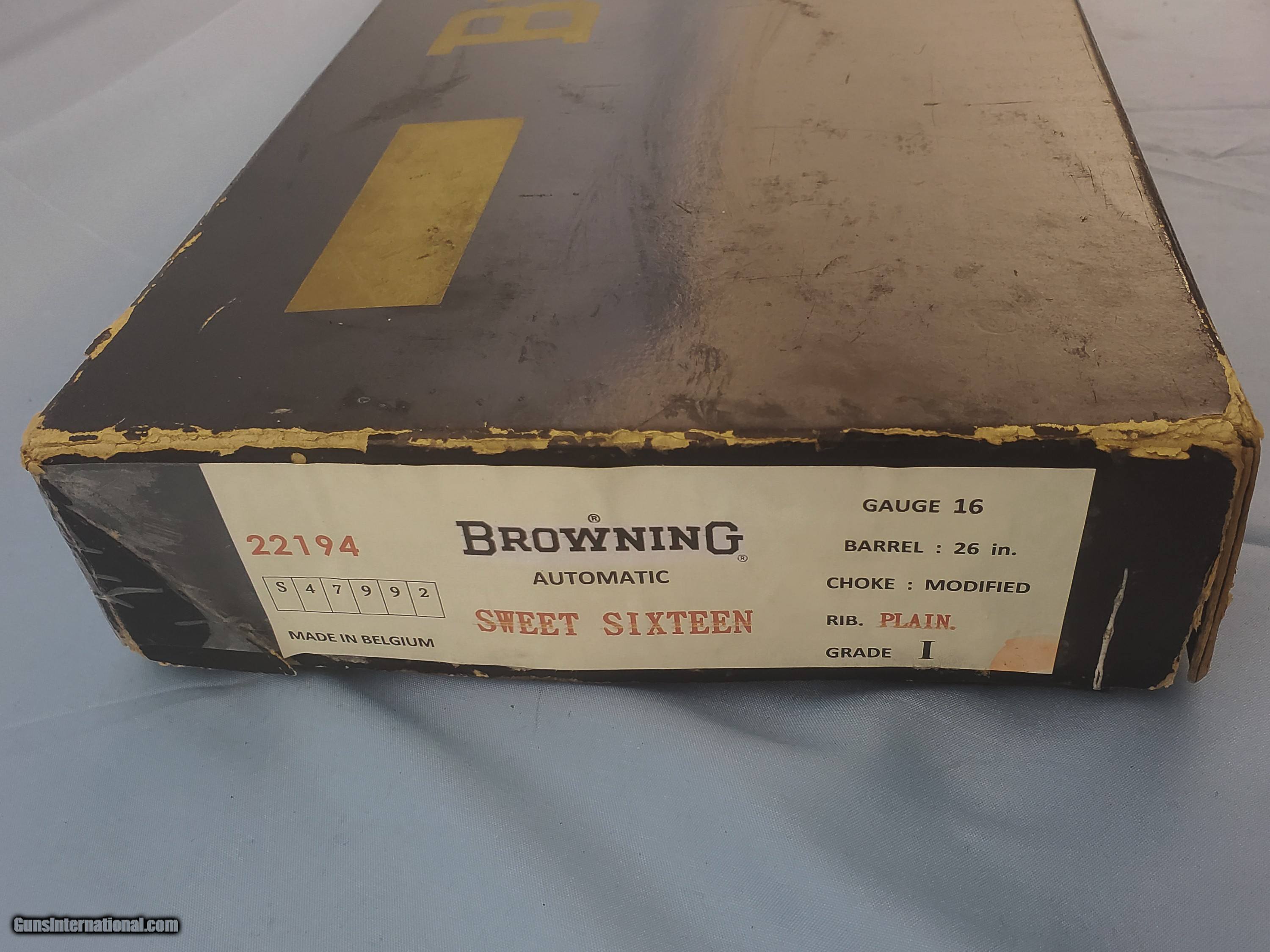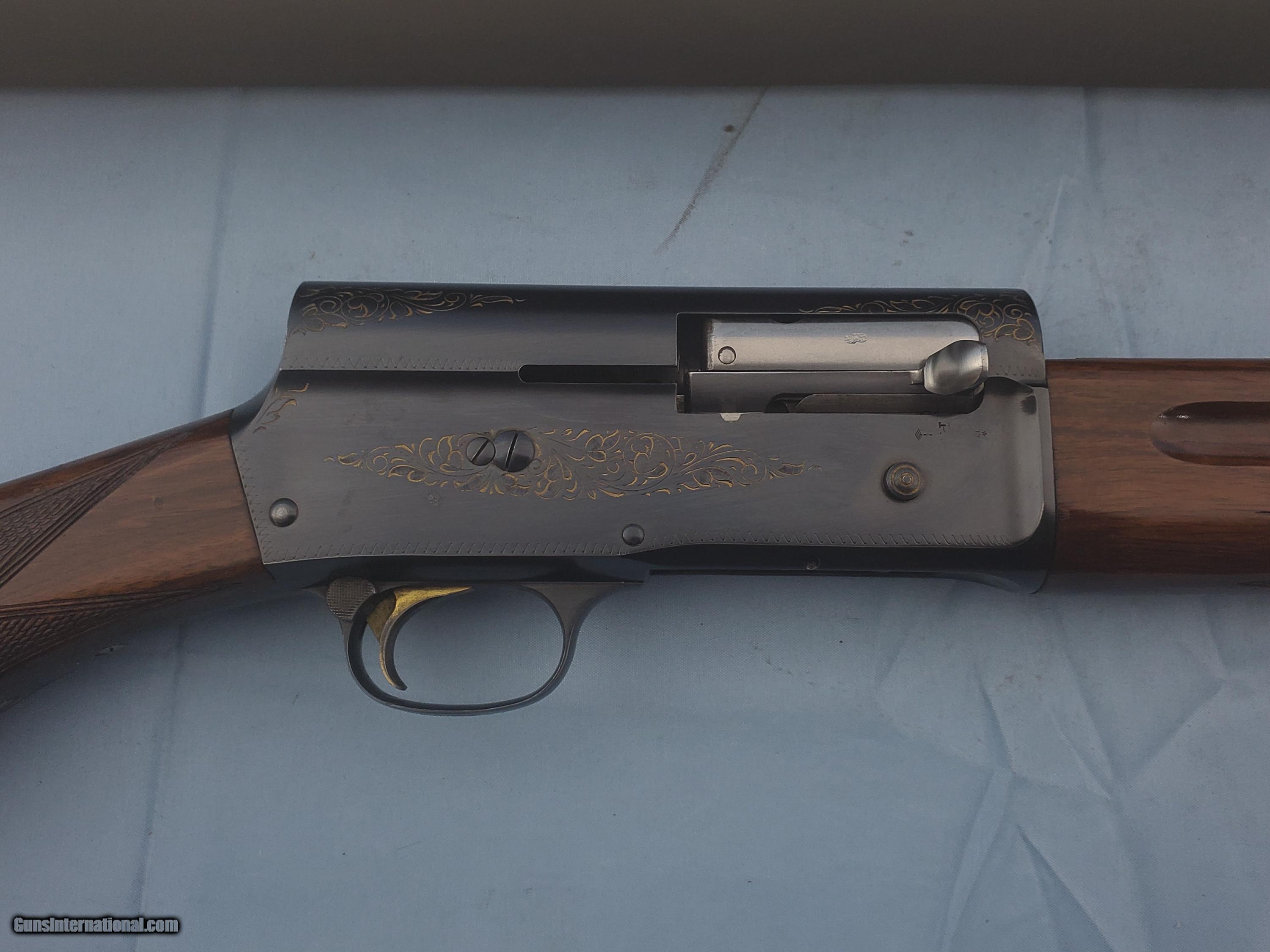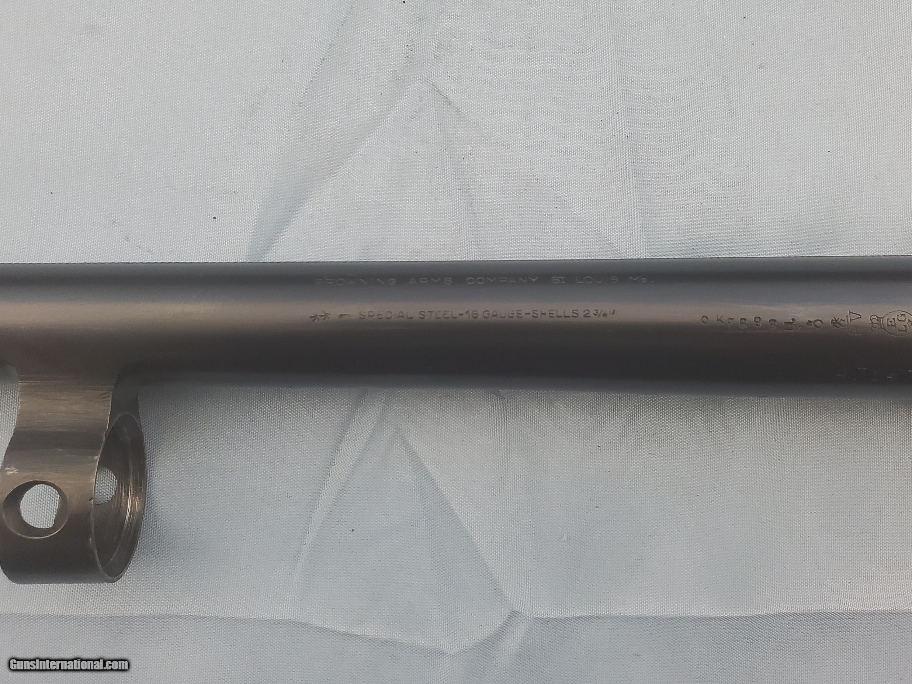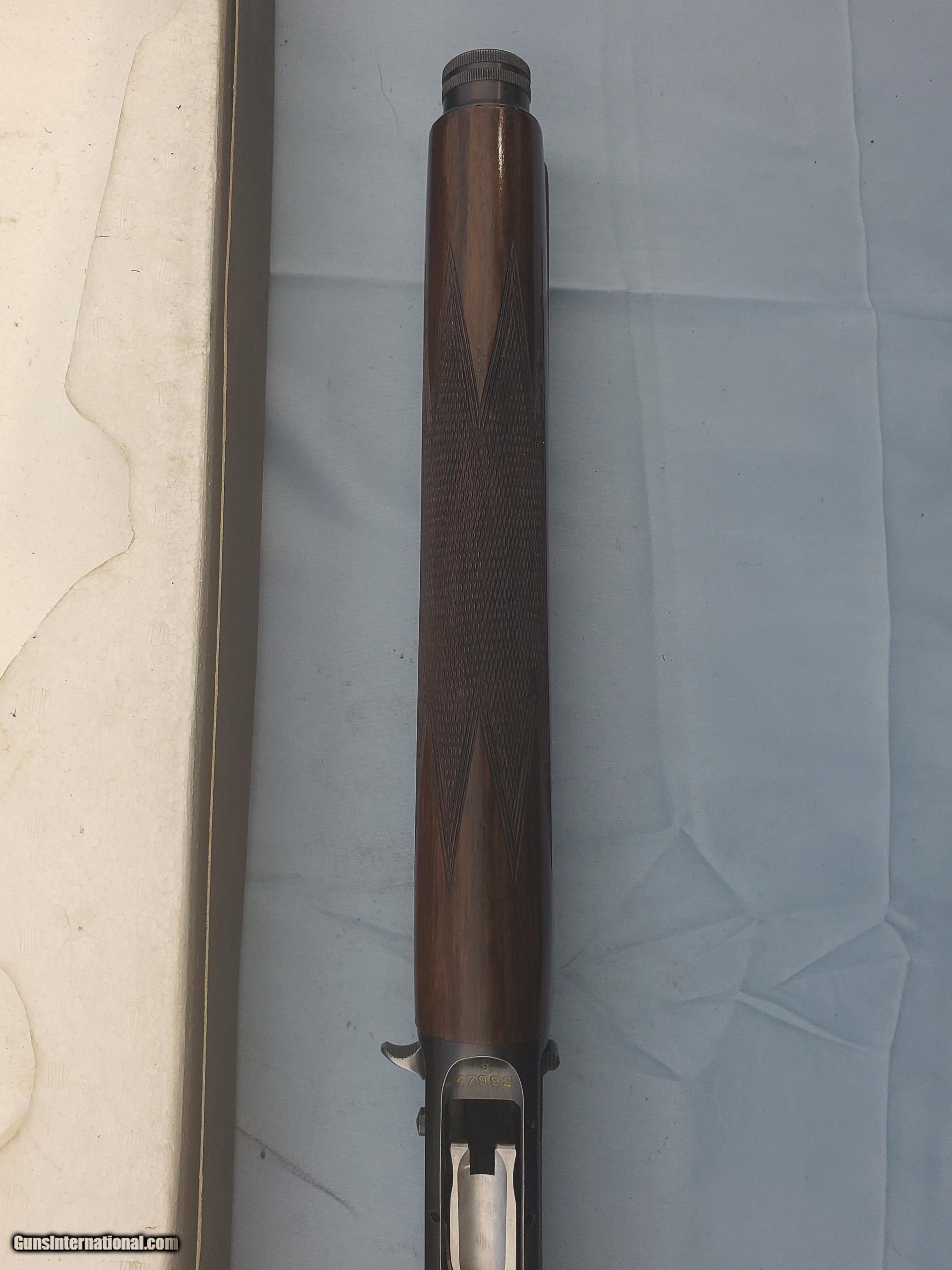 Description: MADE IN BELGIUM IN 1955. BARREL IS 26'' WITH A MATTED RIB AND CHOKED I.C. FACTORY BLUE AND WOOD FINISH. WRONG BOX WITH LABEL ADDED. PLEASE ADD $75 FOR SHIPPING. SOLD Curio/Relic: Yes Shotgun Gauge: 16 Gauge Manufacturer: BROWNING Model: AUTO 5 Condition: GOOD Metal Condition: GOOD Wood Condition: GOOD Bore Condition: GOOD Action: SEMI Triggers: GOLD LOP: 14 1/4'' Extras: BOX AND BOOKLET |