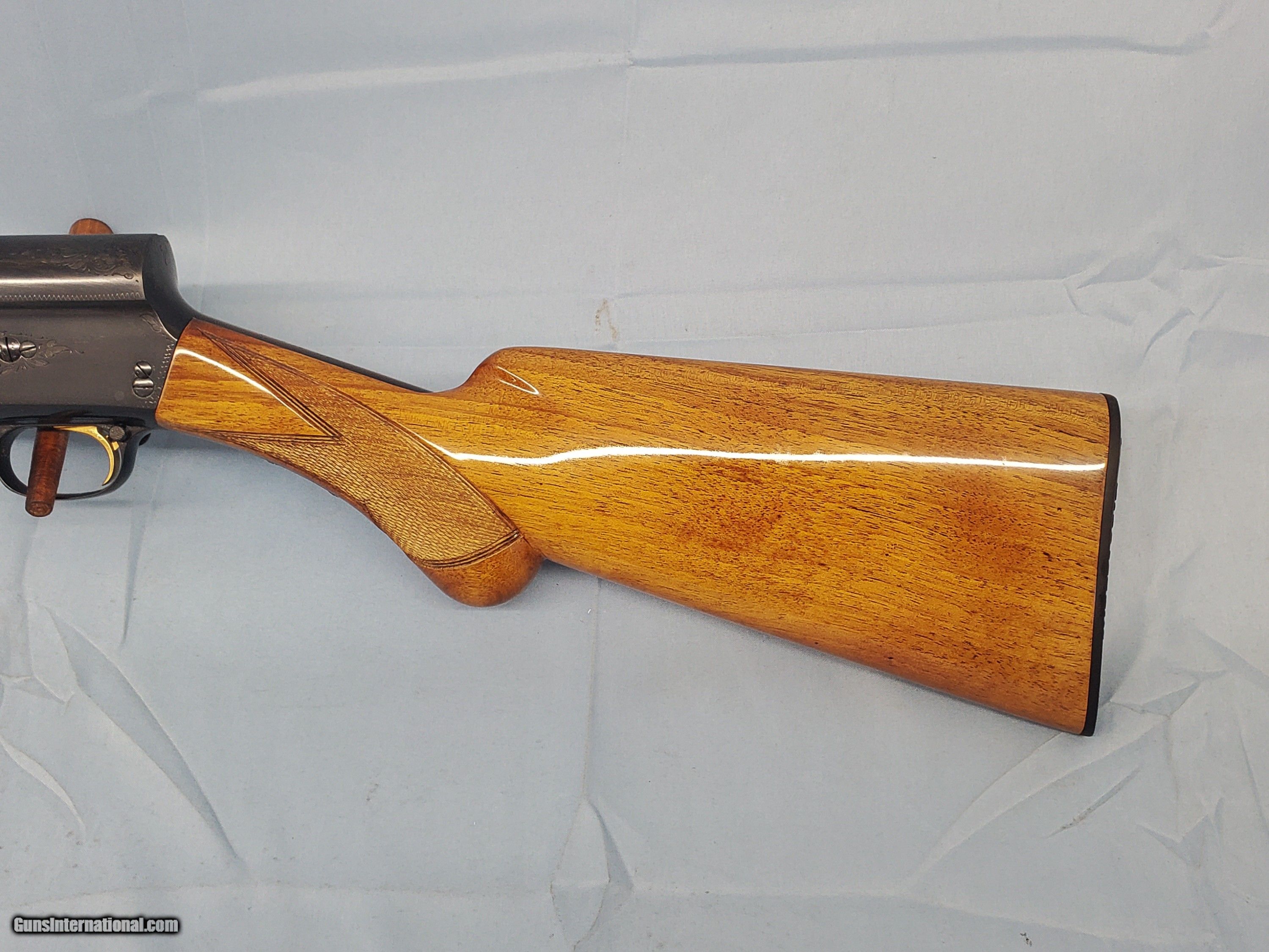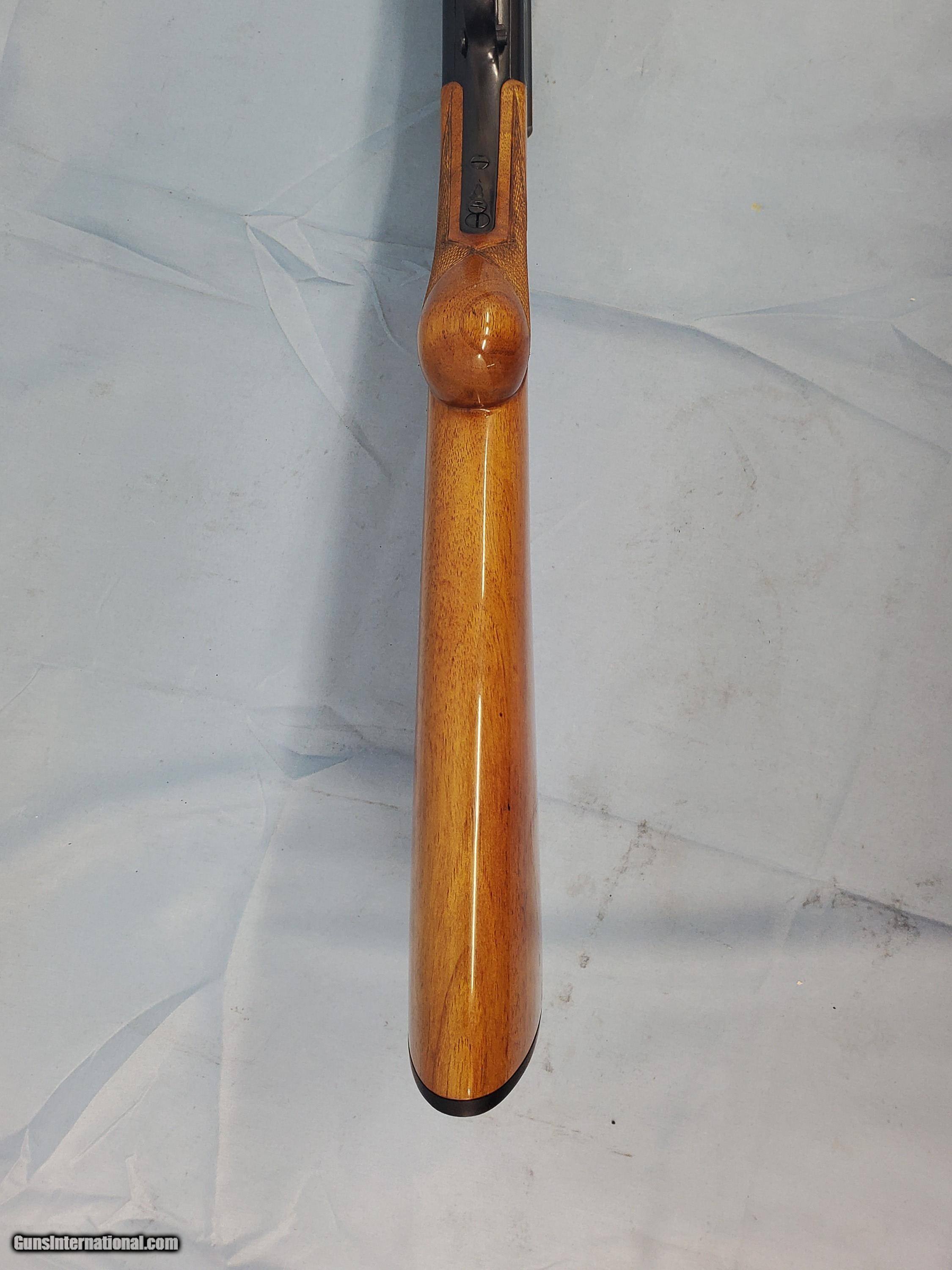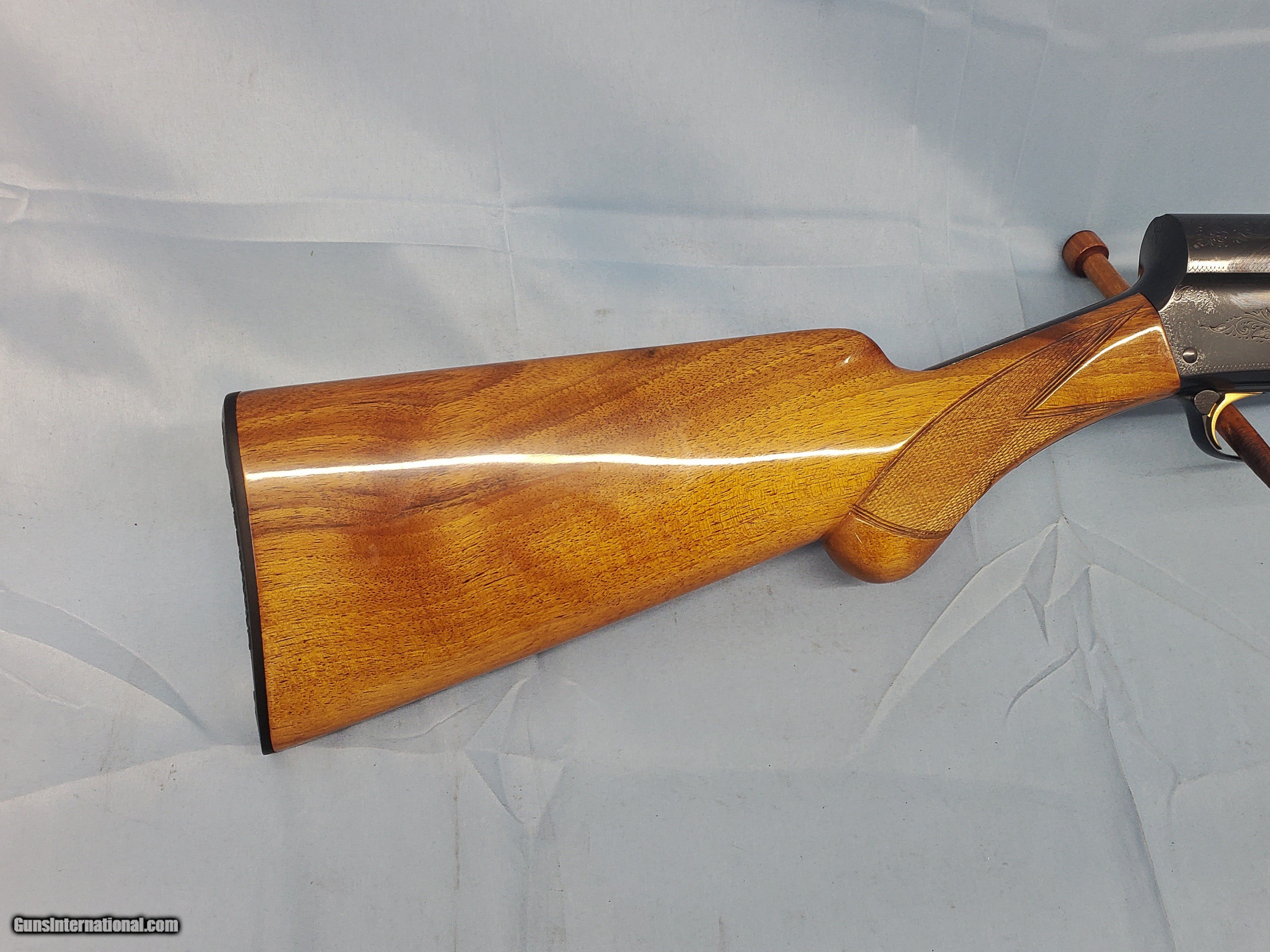 Description: MADE IN BELGIUM IN 1951. BARREL IS 28'' WITH A SOLID RIB AND CHOKED MOD. FULL RESTORATION. PLEASE ADD $75 FOR SHIPPING. SOLD Shotgun Gauge: 16 Gauge Manufacturer: BROWNING Model: AUTO 5 Condition: EXCELLENT Metal Condition: EXCELLENT Wood Condition: EXCELLENT Bore Condition: E Action: SEMI Triggers: GOLD LOP: 14 1/8'' Weight: 7 LB 6 OZ Extras: NONE |