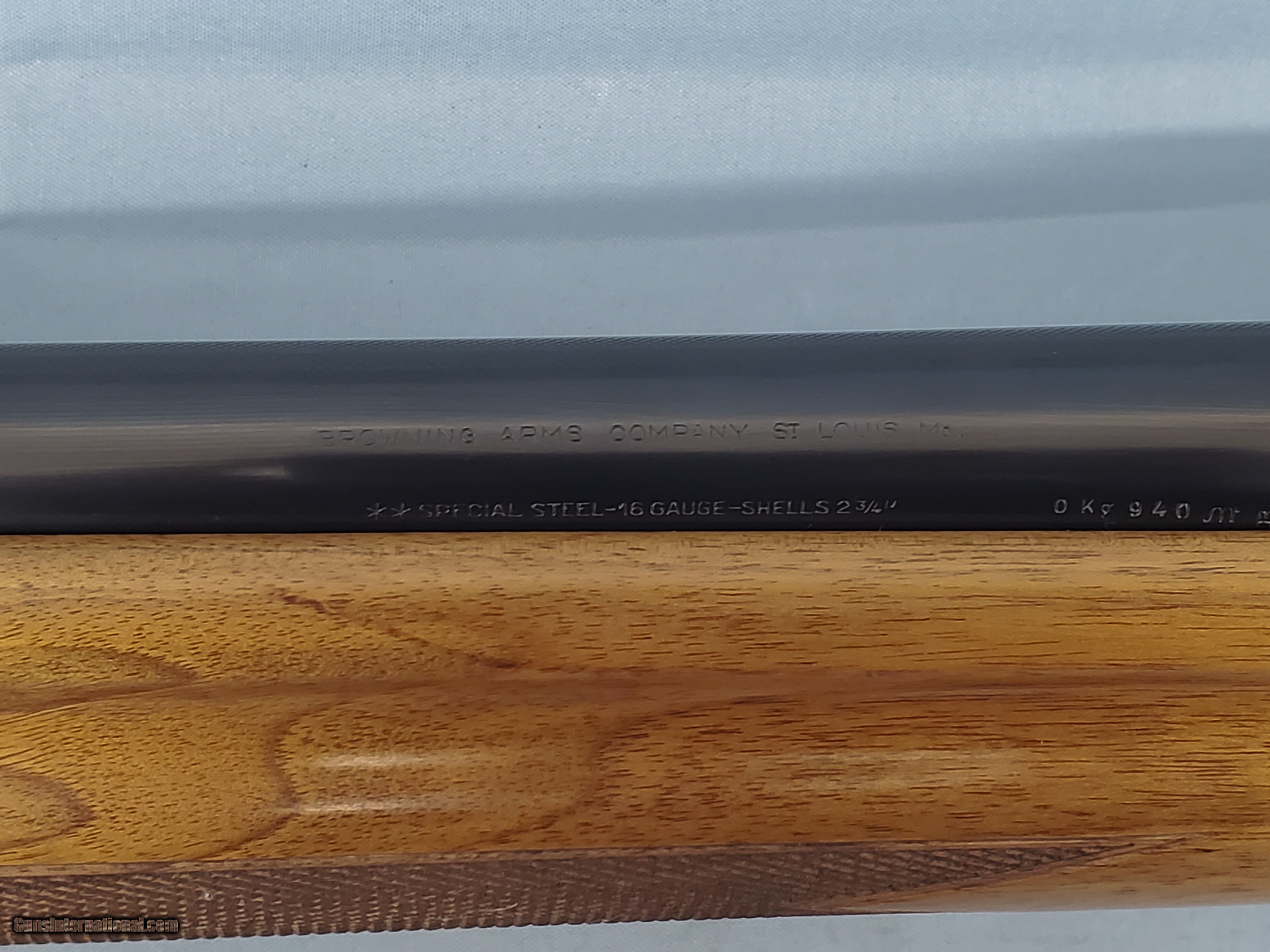 Description: MADE IN BELGIUM IN 1956. BARREL IS 28'' WITH A MATTED RIB AND CHOKED MOD. FULL RESTORATION. PLEASE ADD $75 FOR SHIPPING. SOLD Curio/Relic: Yes Shotgun Gauge: 16 Gauge Manufacturer: BROWNING Model: AUTO 5 Condition: EXCELLENT Metal Condition: EXCELLENT Wood Condition: EXCELLENT Bore Condition: EXCELLENT LOP: 14 1/8'' Weight: 7 LB 2 OZ Extras: NONE |