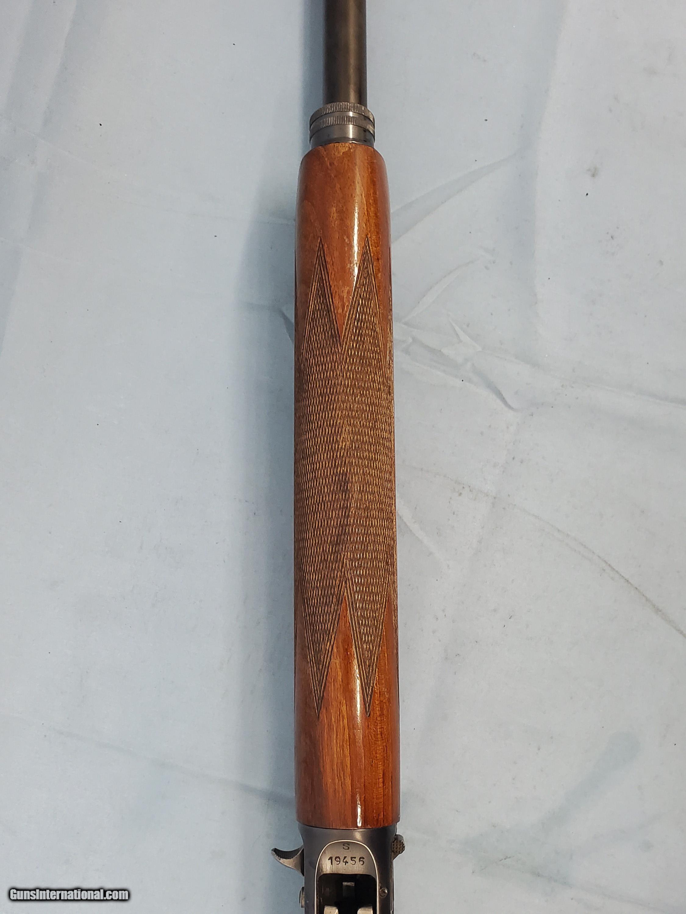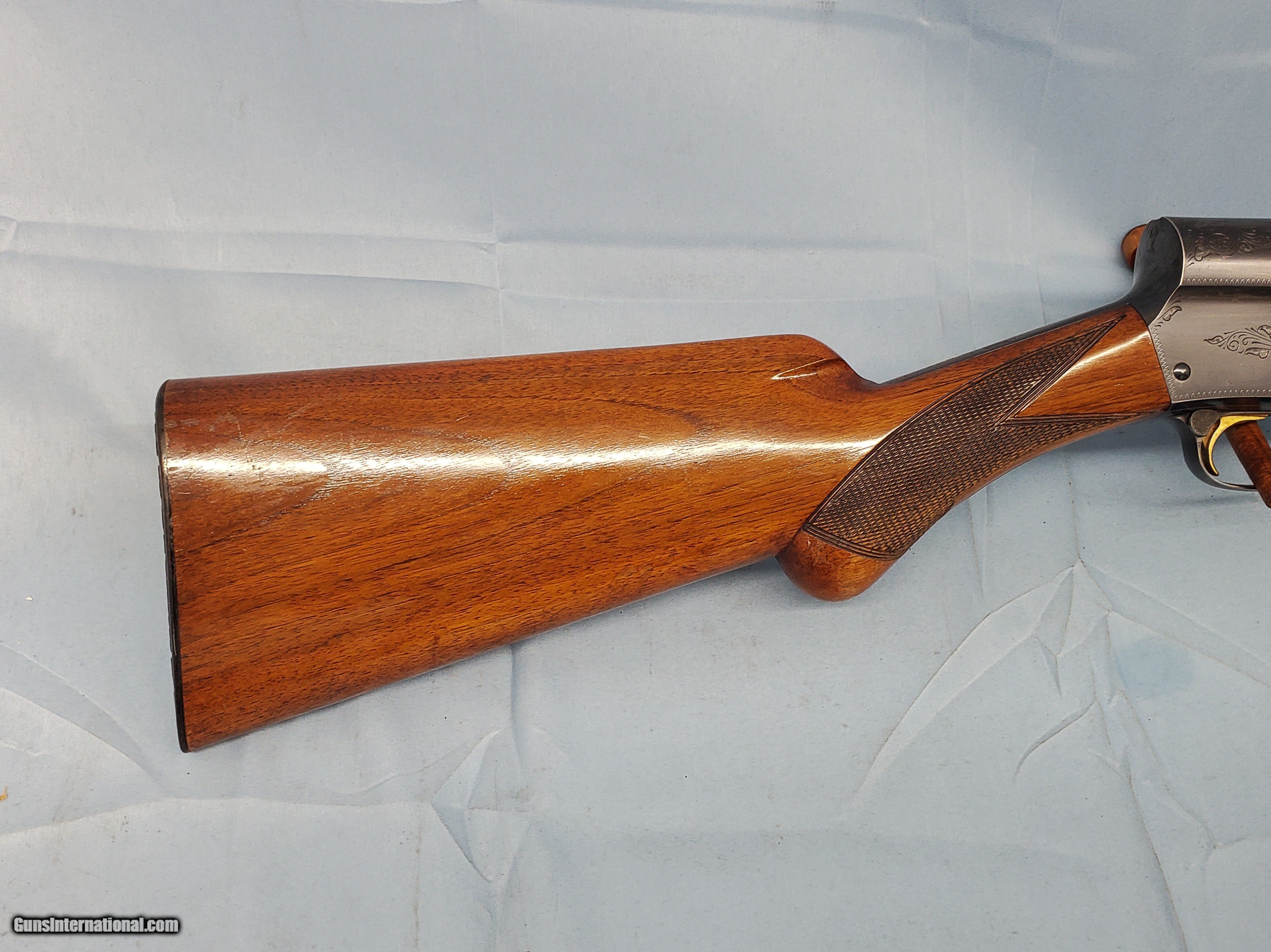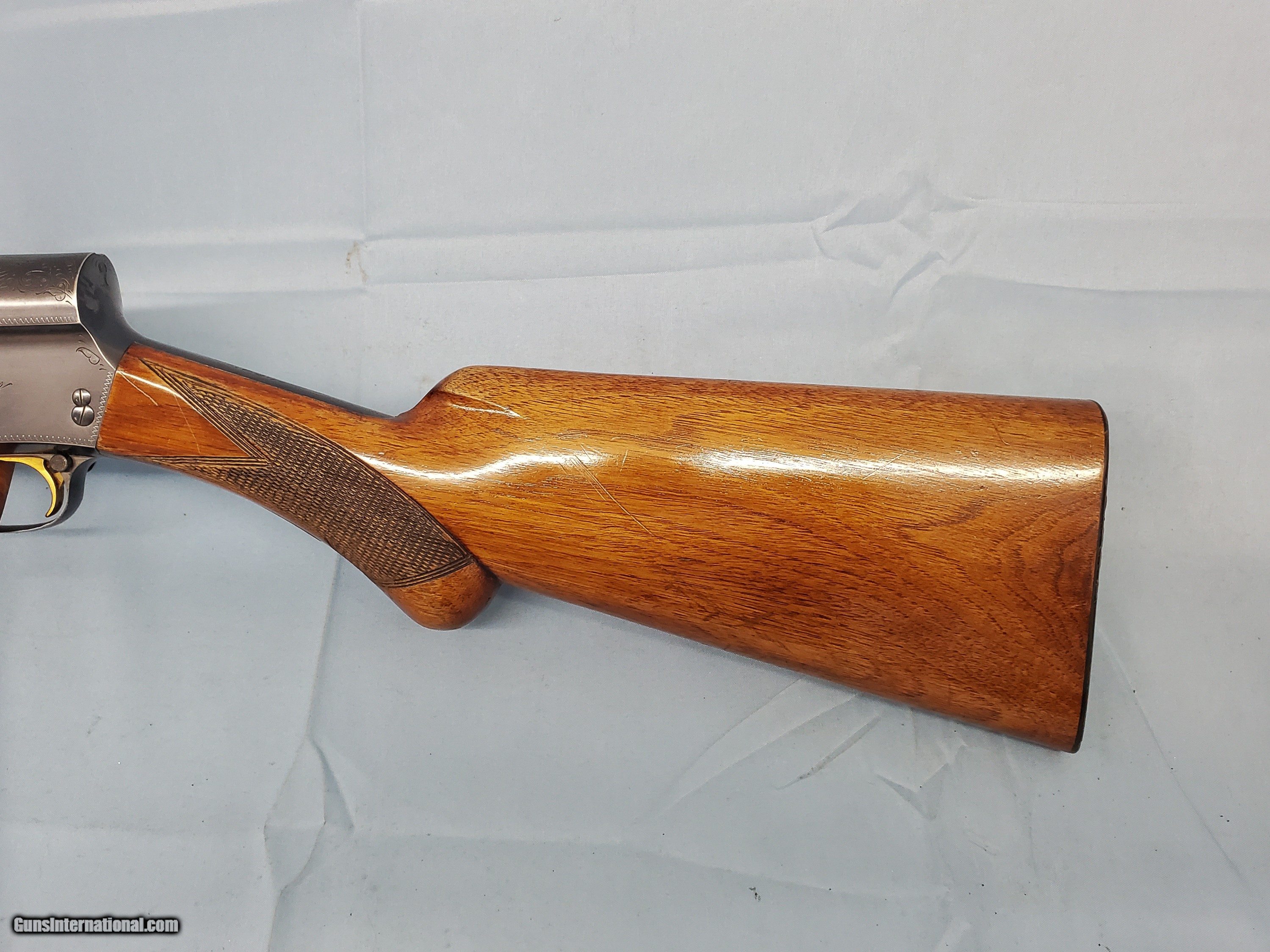 Description: MADE IN BELGIUM IN 1954. BARREL IS 28'' WITH A MATTED RIB AND CHOKED FULL. ALL FACTORY AND GOOD CONDITION. PLEASE ADD $75 FOR SHIPPING. SOLD Curio/Relic: Yes Shotgun Gauge: 16 Gauge Manufacturer: BROWNING Model: AUTO 5 Condition: VERY GOOD Metal Condition: VERY GOOD Wood Condition: GOOD WITH SOME MARKS Bore Condition: EXCELLENT LOP: 14 1/4'' Weight: 7 LB Extras: NONE |