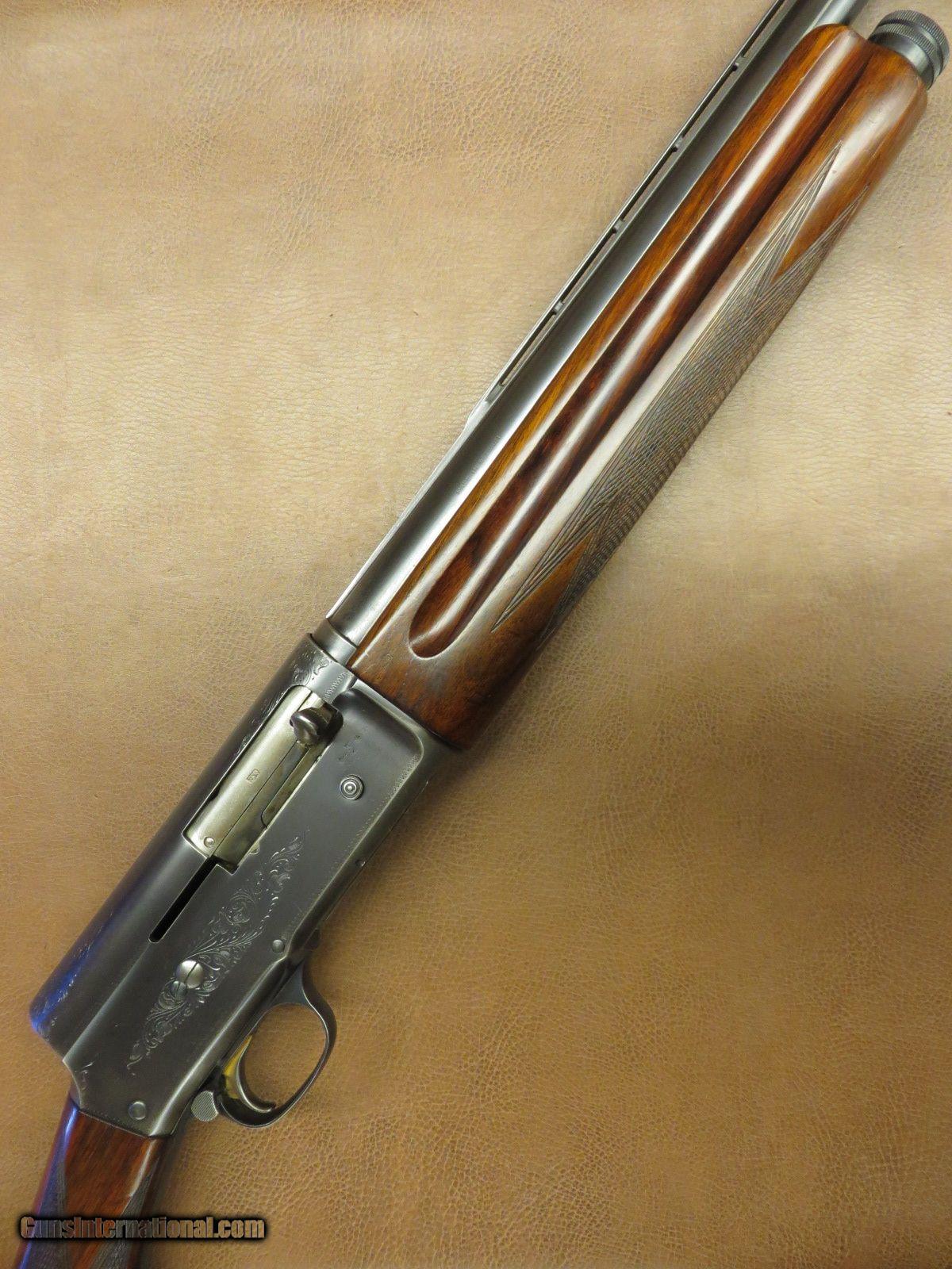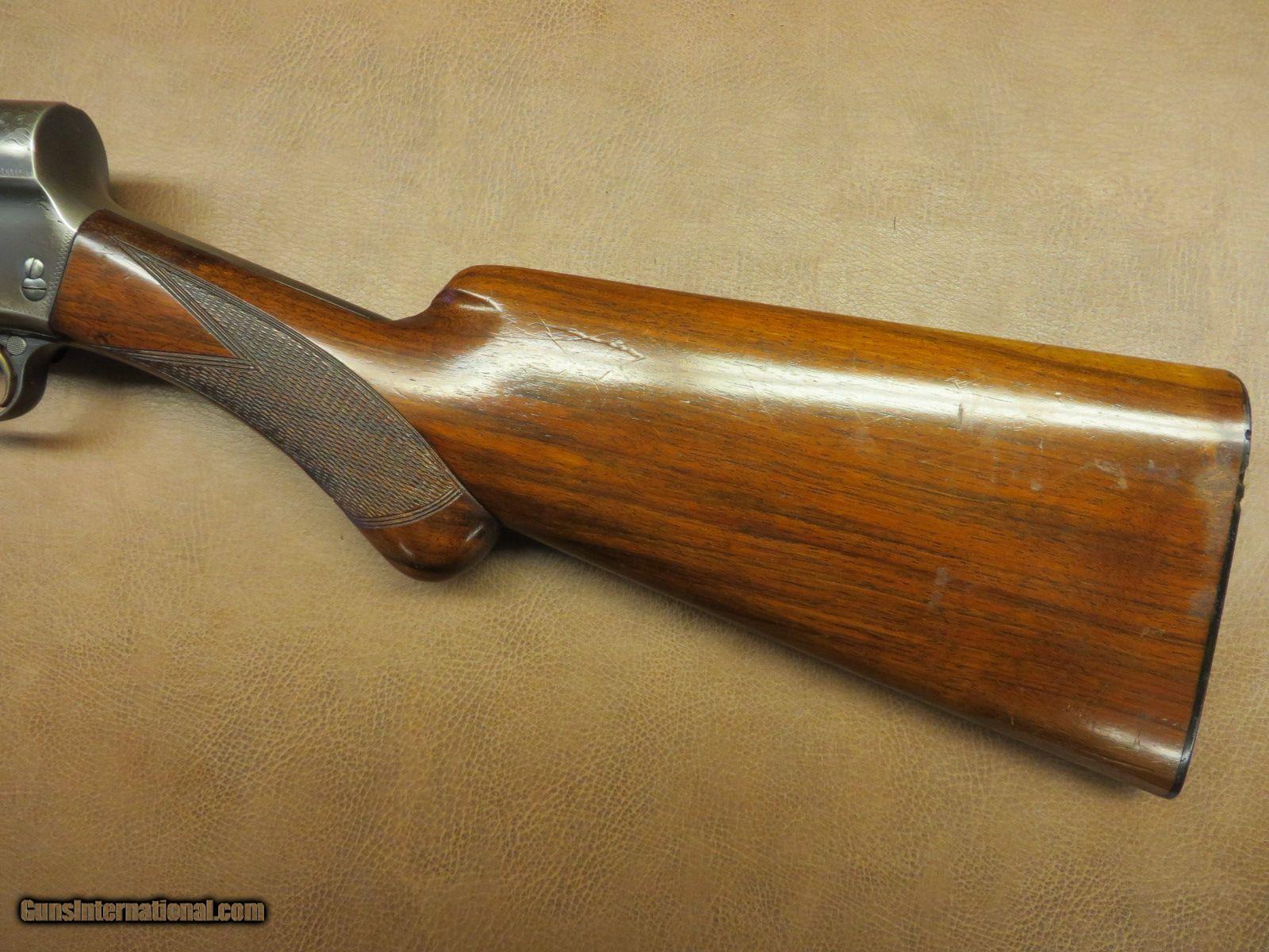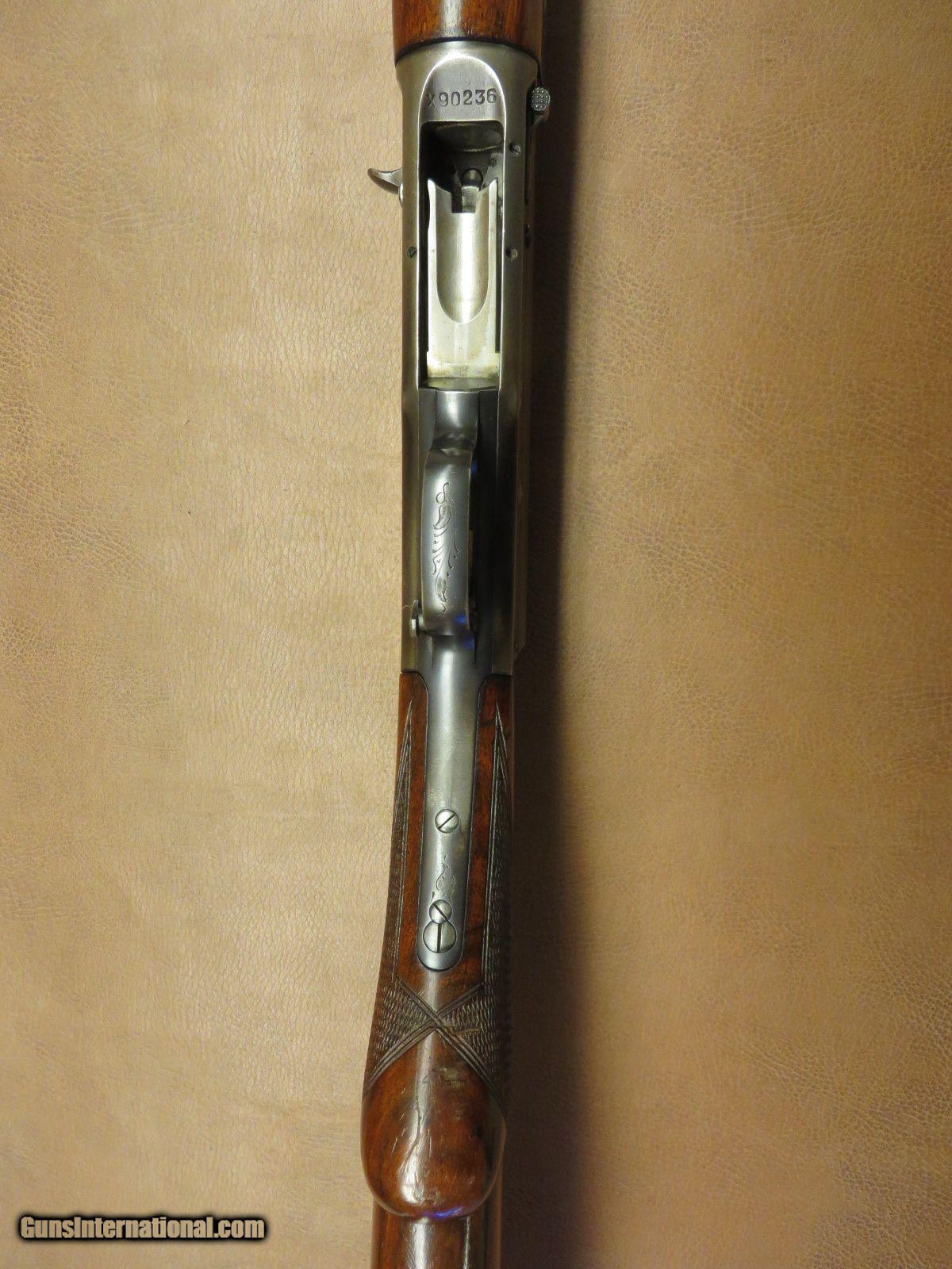 Description: Belgian made 16 ga. has 27 1/2 inch modified choke vent rib barrel. Engraved receiver with gold trigger serial number X90xxx. Checkered walnut round knob stock with original butt plate. Blue is 80-85% and turning brown. The wood finish is also 80-85%. SOLD |