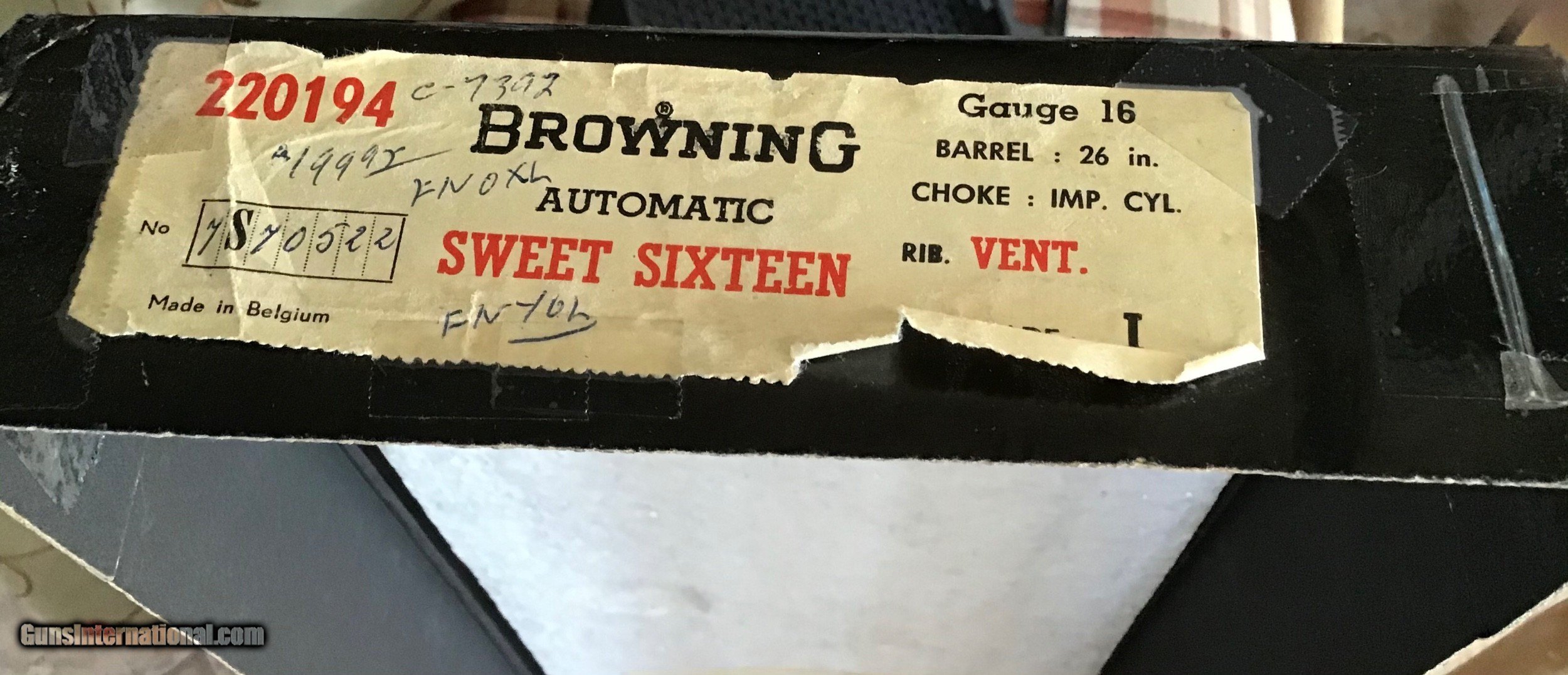 BROWNING BELGIUM “SWEET 16” 26” IMPROVED CYLINDER, VENT RIB, NEW UNFIRED 100% COND. IN THE BOX