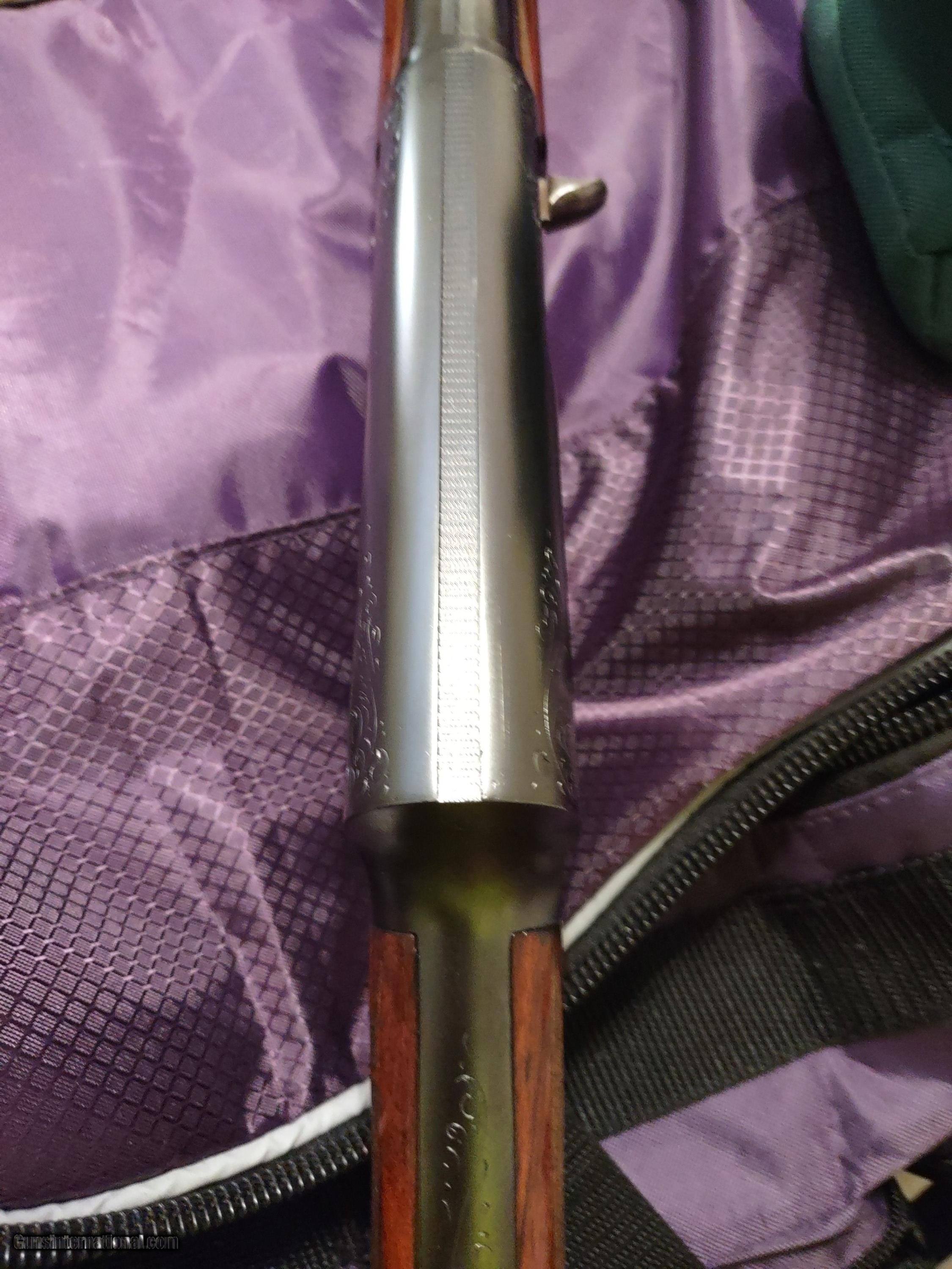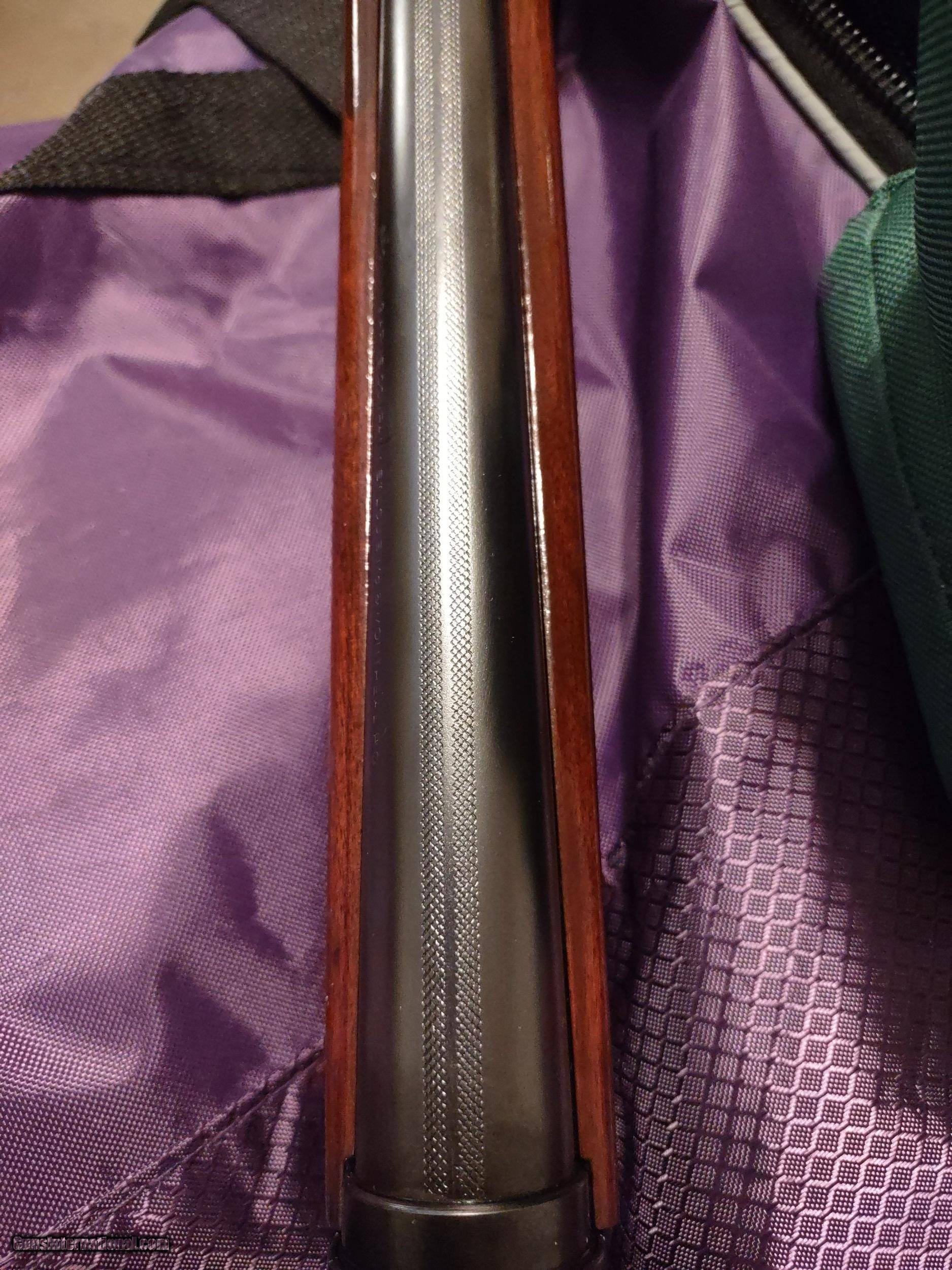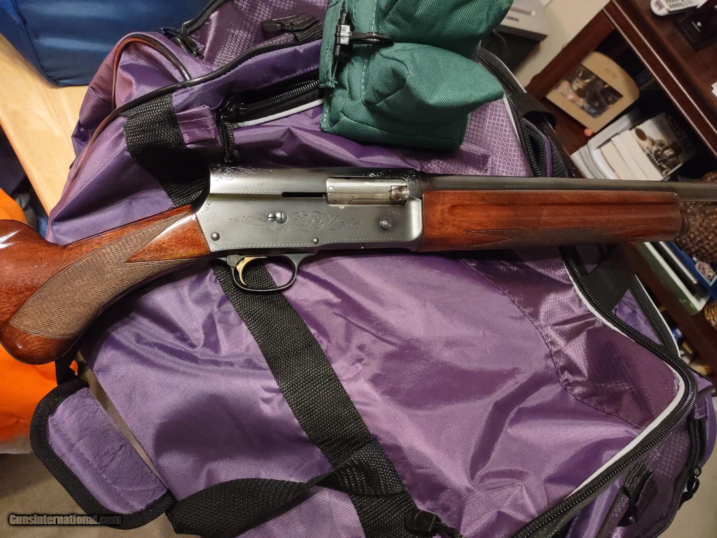 Description: BROWNING A-5 SWEET SIXTEEN 16 gauge semi-automatic shotgun made in Belgium in 1959, serial number 9S 29648, factory FN butt plate, round knob on spectacular checkered walnut stock and forearm. The bore is bright and glossy and the bluing is flawless. The barrel is 27 1/2" with matte rib and brass bead front sight, the LOP is 14 3/16", the overall length is 47" and the fixed choke is "modified" (**). The bluing and the walnut stock/forearm have both been professionally refinished. A prized possession! The price is $2500 including UPS shipping to the FFL dealer near you. Call or text me at 318-780-4242 if you are interested. Meanwhile enjoy looking at the pictures. SOLD Manufacturer: FABRIQUE NATIONALE, Browning Model: A-5, Sweet Sixteen Serial Number: 9S 29648 Barrel Length: 27 1/2 Bore: flawless Chambers: Excellent Ejectors: Semi-automatic Condition: Flawless Metal Condition: Flawless Wood Condition: Flawless Bore Condition: Perfect, glossy Barrels: Single Barrel Type: shotgun Action: Semi-automatic Triggers: single, gold Stock: Checkered walnut Butt Pad: FN, factory original LOP: 14 3/16 Rib: Top scrolling Finish: blu Sights: brass bead front Manufacture Date: 1959 Chokes: fixed, modified Engraving: None Case: Quality soft zipper carry case Item Location: Shreveport, Louisiana |