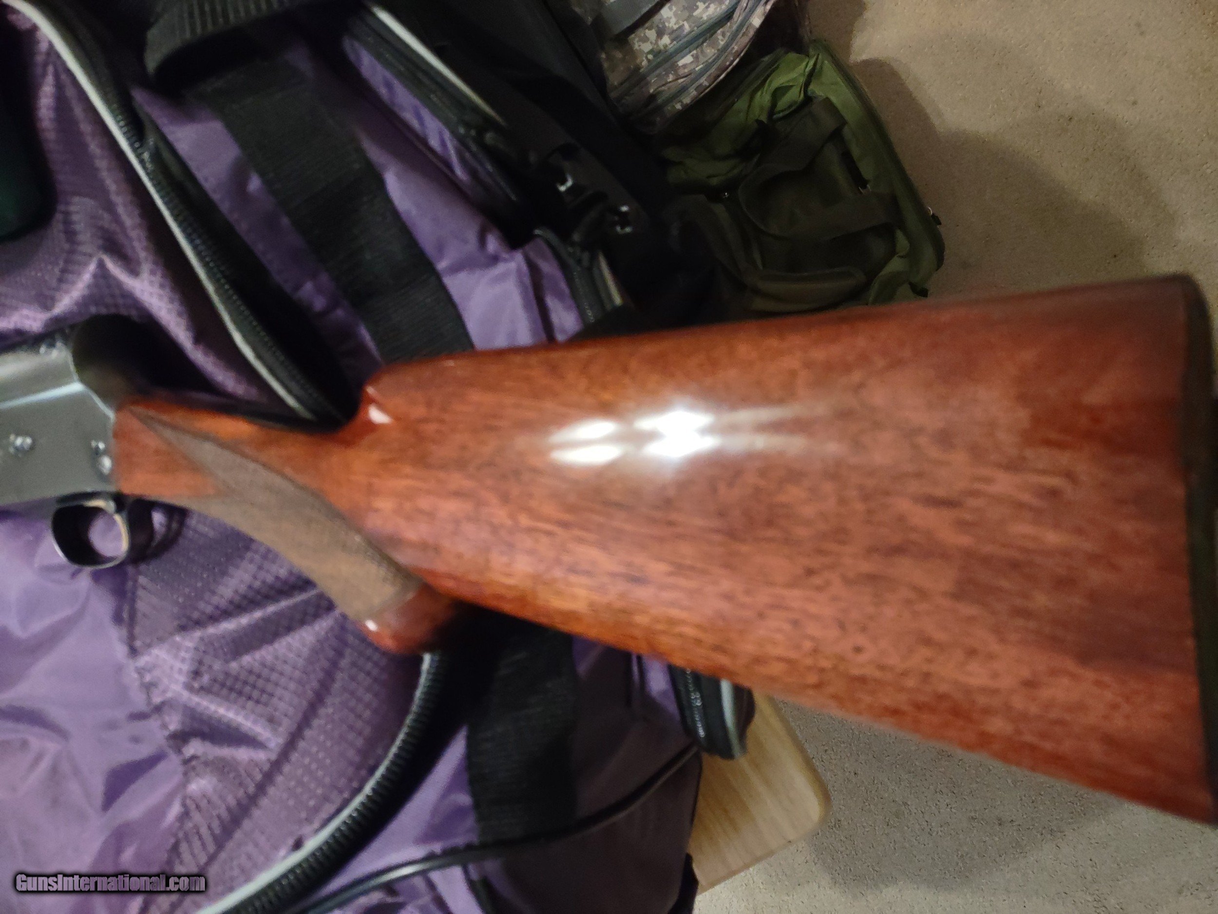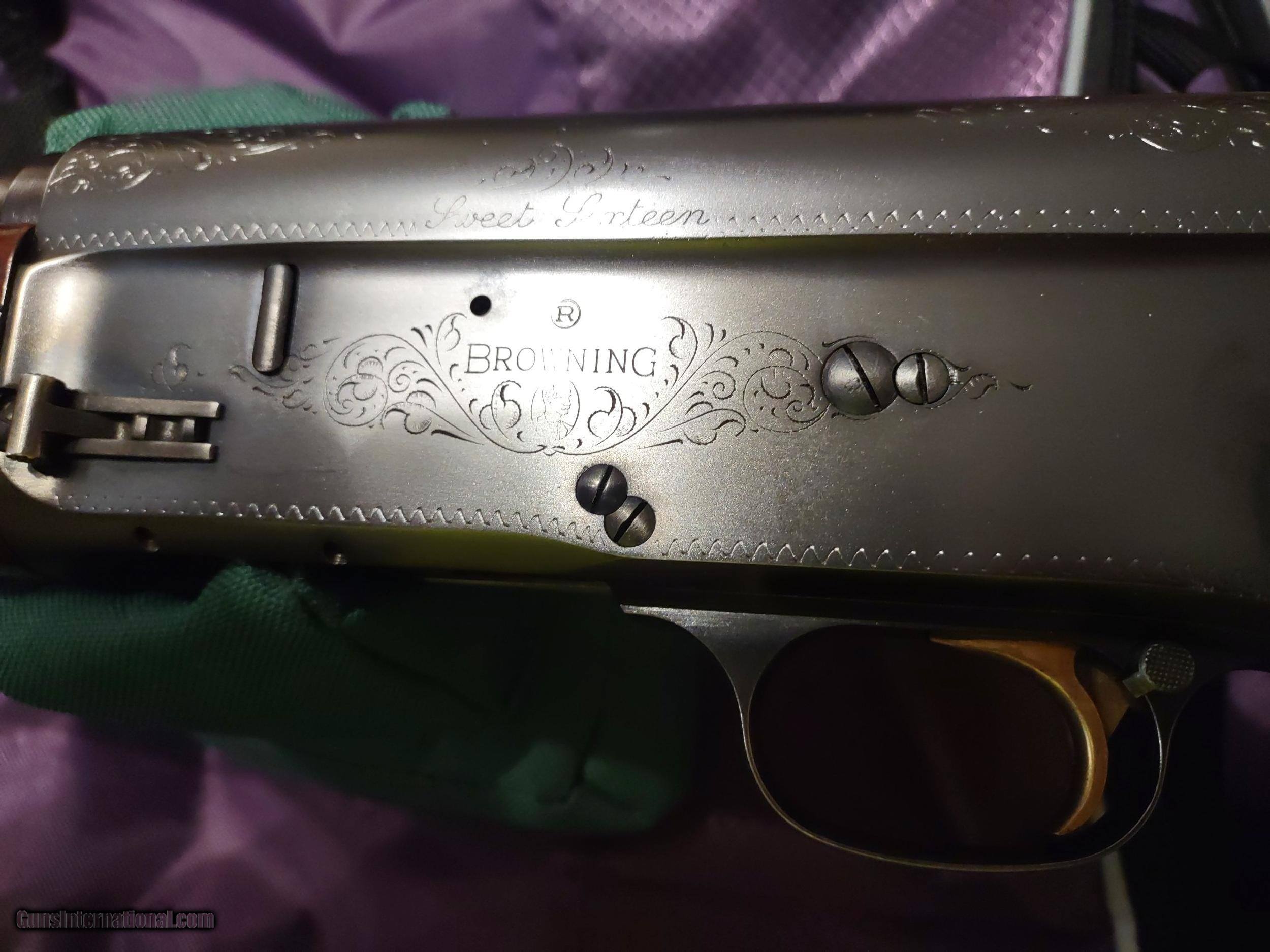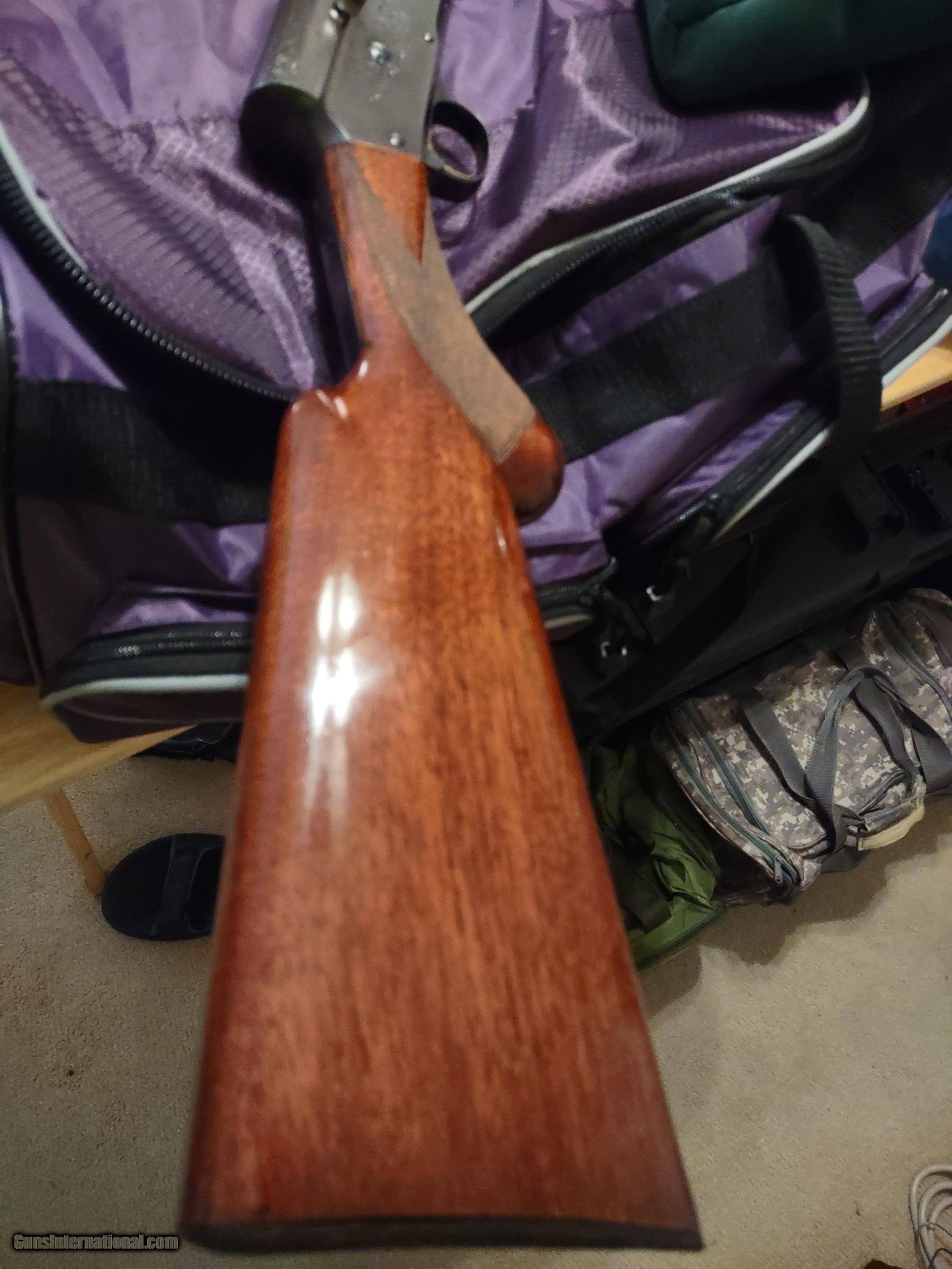 Description: BROWNING A-5 SWEET SIXTEEN 16 gauge semi-automatic shotgun made in Belgium in 1959, serial number 9S 29648, factory FN butt plate, round knob on spectacular checkered walnut stock and forearm. The bore is bright and glossy and the bluing is flawless. The barrel is 27 1/2" with matte rib and brass bead front sight, the LOP is 14 3/16", the overall length is 47" and the fixed choke is "modified" (**). The bluing and the walnut stock/forearm have both been professionally refinished. A prized possession! The price is $2500 including UPS shipping to the FFL dealer near you. Call or text me at 318-780-4242 if you are interested. Meanwhile enjoy looking at the pictures. SOLD Manufacturer: FABRIQUE NATIONALE, Browning Model: A-5, Sweet Sixteen Serial Number: 9S 29648 Barrel Length: 27 1/2 Bore: flawless Chambers: Excellent Ejectors: Semi-automatic Condition: Flawless Metal Condition: Flawless Wood Condition: Flawless Bore Condition: Perfect, glossy Barrels: Single Barrel Type: shotgun Action: Semi-automatic Triggers: single, gold Stock: Checkered walnut Butt Pad: FN, factory original LOP: 14 3/16 Rib: Top scrolling Finish: blu Sights: brass bead front Manufacture Date: 1959 Chokes: fixed, modified Engraving: None Case: Quality soft zipper carry case Item Location: Shreveport, Louisiana |