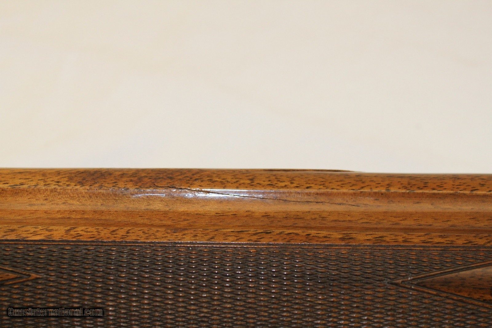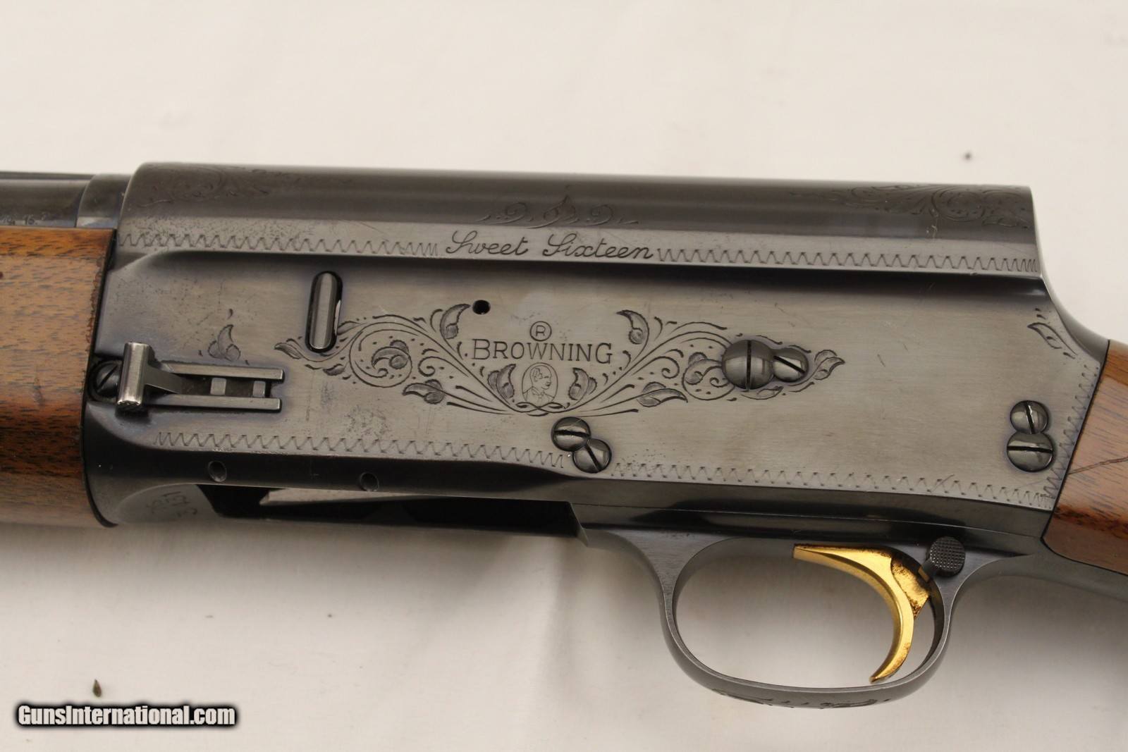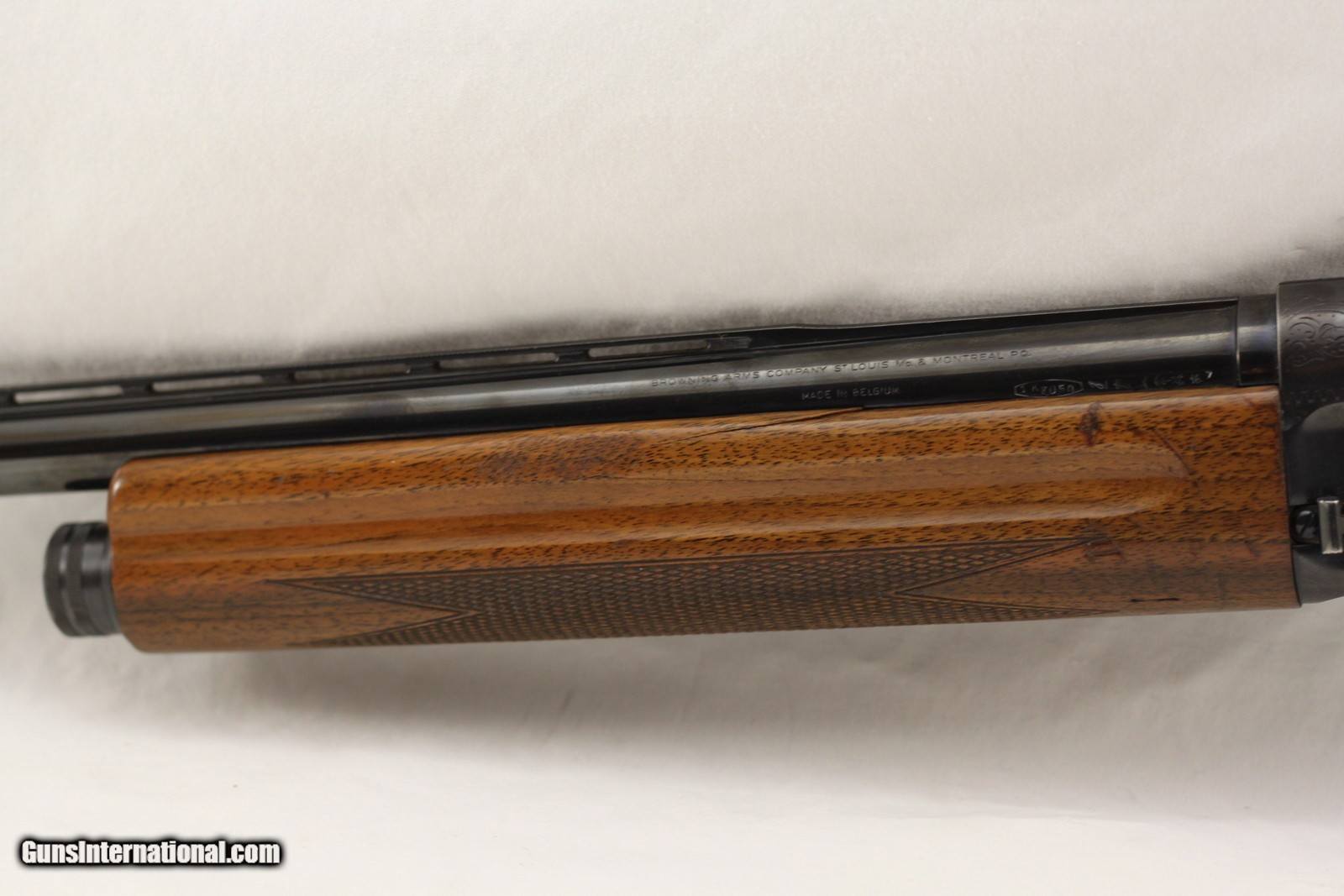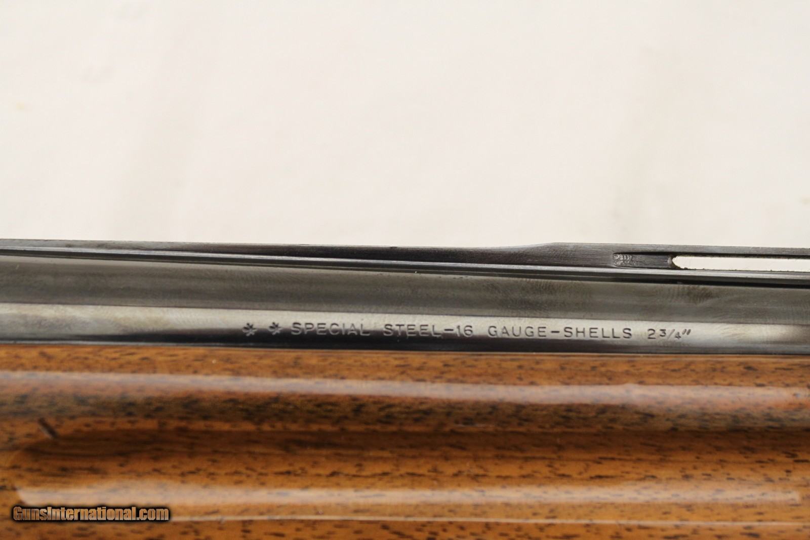 Description: Browning Sweet 16, Made in Belgium, 28 inch VR BBL. Modified Choke, Crack in Forend, The metal is very clean on this shotgun, the wood is the problem. The fore end is marred and cracked at shown in picture. The butt stock has a bad scratch that looks like a crack. We removed the stock and could see no evidence or a crack. Only good news is the checkering is in good shape and it has not been cut down. The origninal Browning plate is installed. Please click "Buy Now" to purchase. Thanks SOLD Shotgun Gauge: 16 Gauge |