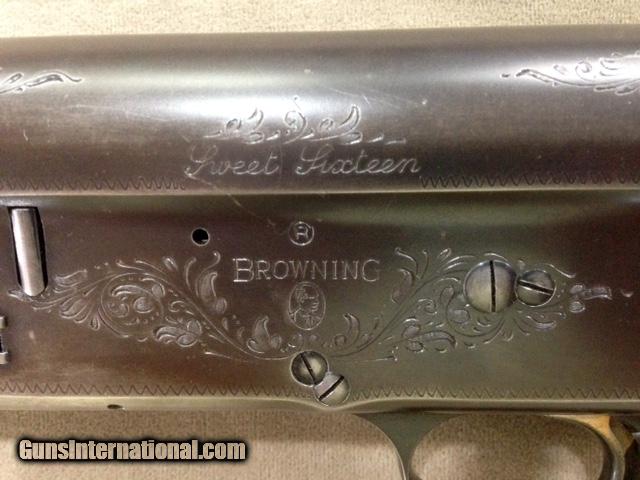 Description: This is an early Browning Sweet 16 with serial number range X72144, with about 75-85% original blue, perfect 2&3/4 inch chamber, original 27.5 inch full choke barrel (*), etc. Original factory wood has been refinished but nicely done as you can see in the photos. Buttplate is horn and is prefect and original to the gun. If you are looking for a shooter that hasn't been destroyed then this is it! SOLD Curio/Relic: Yes |
