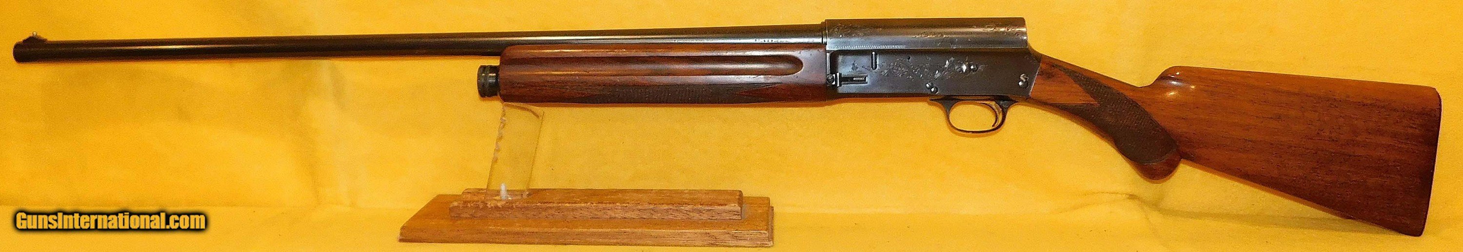 Description: BROWNING SWEET 16 IN 16 GA. CAL., WITH 27 .5" BARREL. COLOR BLUE. CONDITION 90%. SERIAL NUMBER S14675. BROWNING MODEL SWEET 16 (LONG TANG) (CIRCA 1954) IN 16 GAUGE CALIBER, SINGLE BEAD ROUND MIRROR BORE BARREL WITH FIXED FULL CHOKE, STOCK AND FORE ARM ARE VERY GOOD, SMALL CHIP ON THE UPPER LEFT CORNER OFF BUTT PLATE, 90% OVERALL CONDITION, OUR STOCK # D4072 SOLD |
