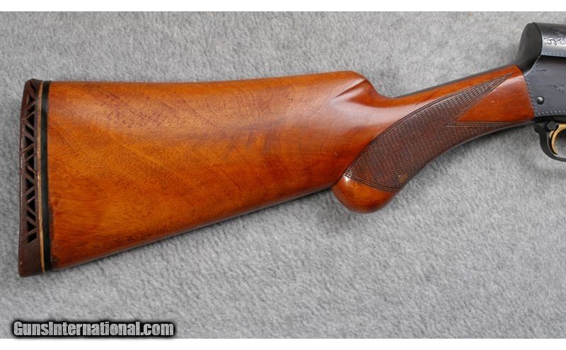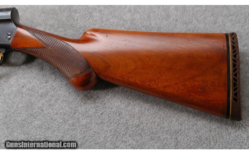 Description: 16 Gauge SOLD Chambers: "2 3/4"", semi-auto repeater. Metal Condition: Good. Wood Condition: "Good, butt stock has a customized comb. Bore Condition: Good. Barrels: "27 1/2"", blued. Triggers: Single. Stock Dimensions: 14 1/4" LOP. Fore End: Matching checkered walnut. Butt Pad: Rubber pad. Weight: 7 lb. 8 oz. Sights: Solid rib with double bead. Chokes: Fixed full choke. Item Location: Dundee, MI |