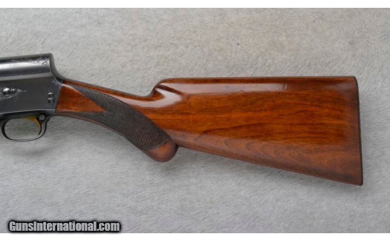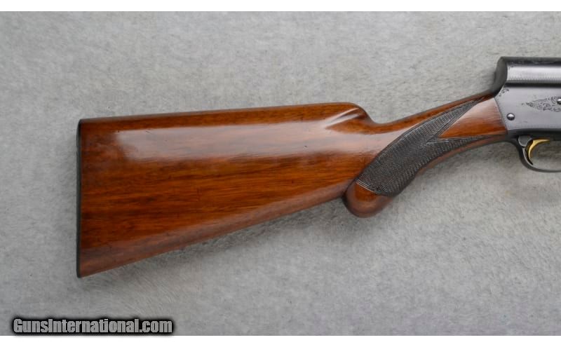 Description: This Browning Model Sweet Sixteen is a right hand semi-auto shotgun in 16 Ga. It has a 27.5 inch ventilated rib barrel with a metal bead front sight. With a 2 3/4 inch chamber it has a fixed Modified choke. The butt stock is a checkered grip walnut round knob pistol grip. The forearm is a checkered grip walnut with finger grooves. The receiver is lightly engraved. S/N S96727. Made in Belgium. 16 Gauge SOLD Chambers: 2 3/4 inch. Metal Condition: Good. A little blue wear at the bore. Minor handling marks and freckling. Wood Condition: Good. Light handling marks. Bore Condition: Shiny. Barrels: 27.5 inch barrel with a ventilated rib. Stock Dimensions: LOP 14 1/4 inches. Fore End: Checkered grip walnut with finger grooves. Butt Pad: FN Browning black plate. Weight: 7 lb. 2 oz. Sights: Metal bead front sight. Chokes: Fixed Modified. Item Location: Richfield, WI |