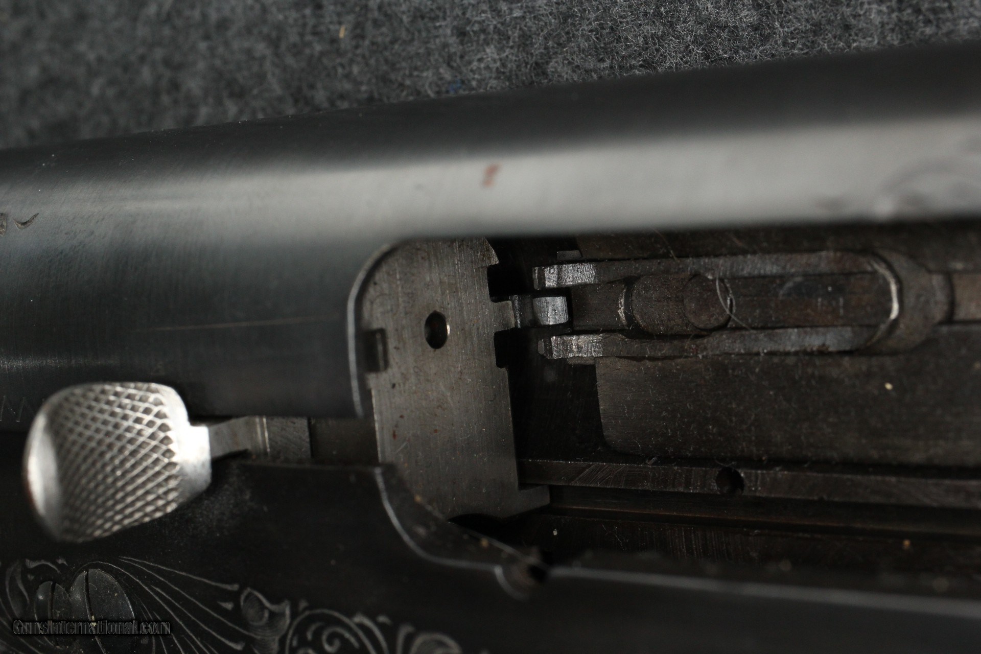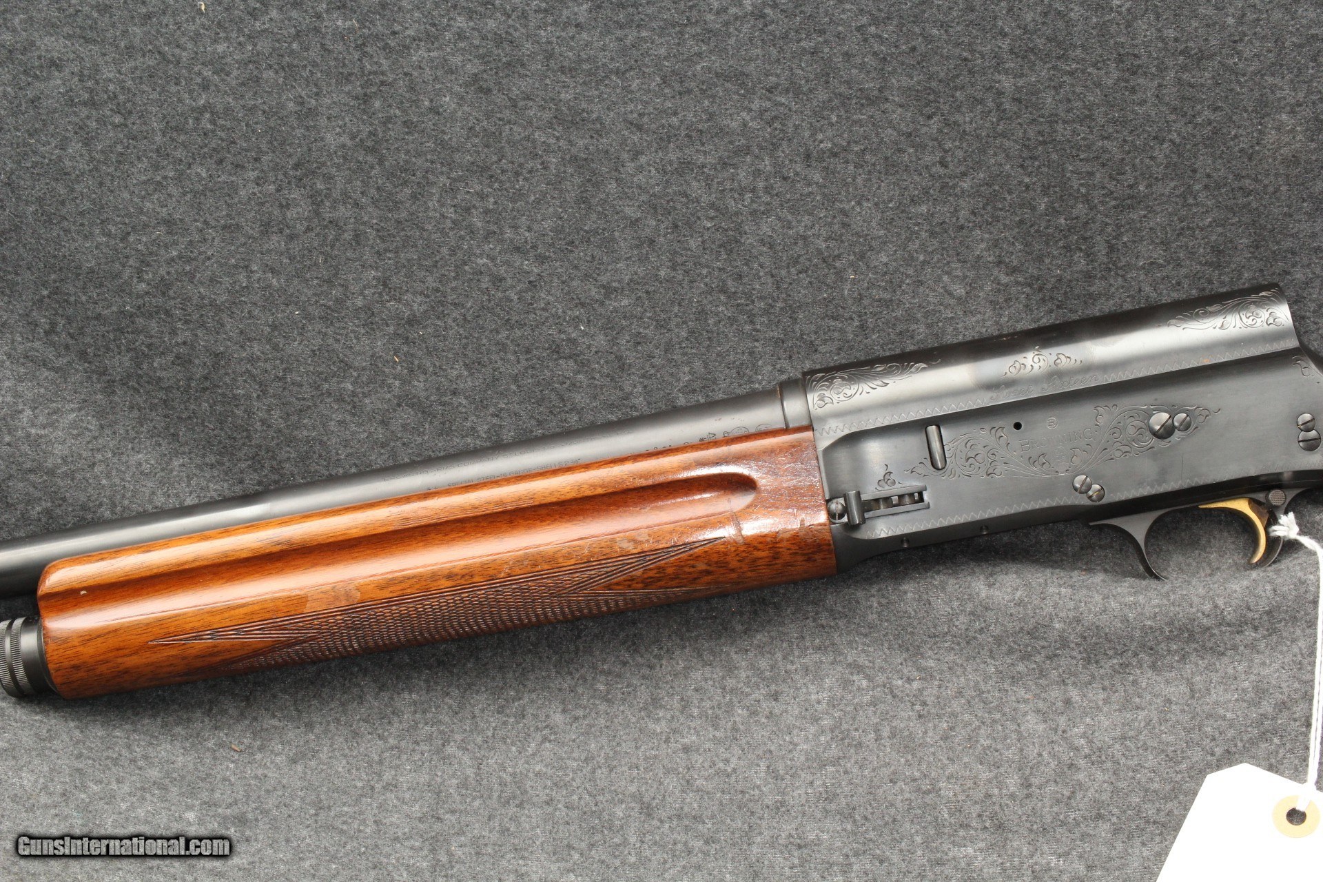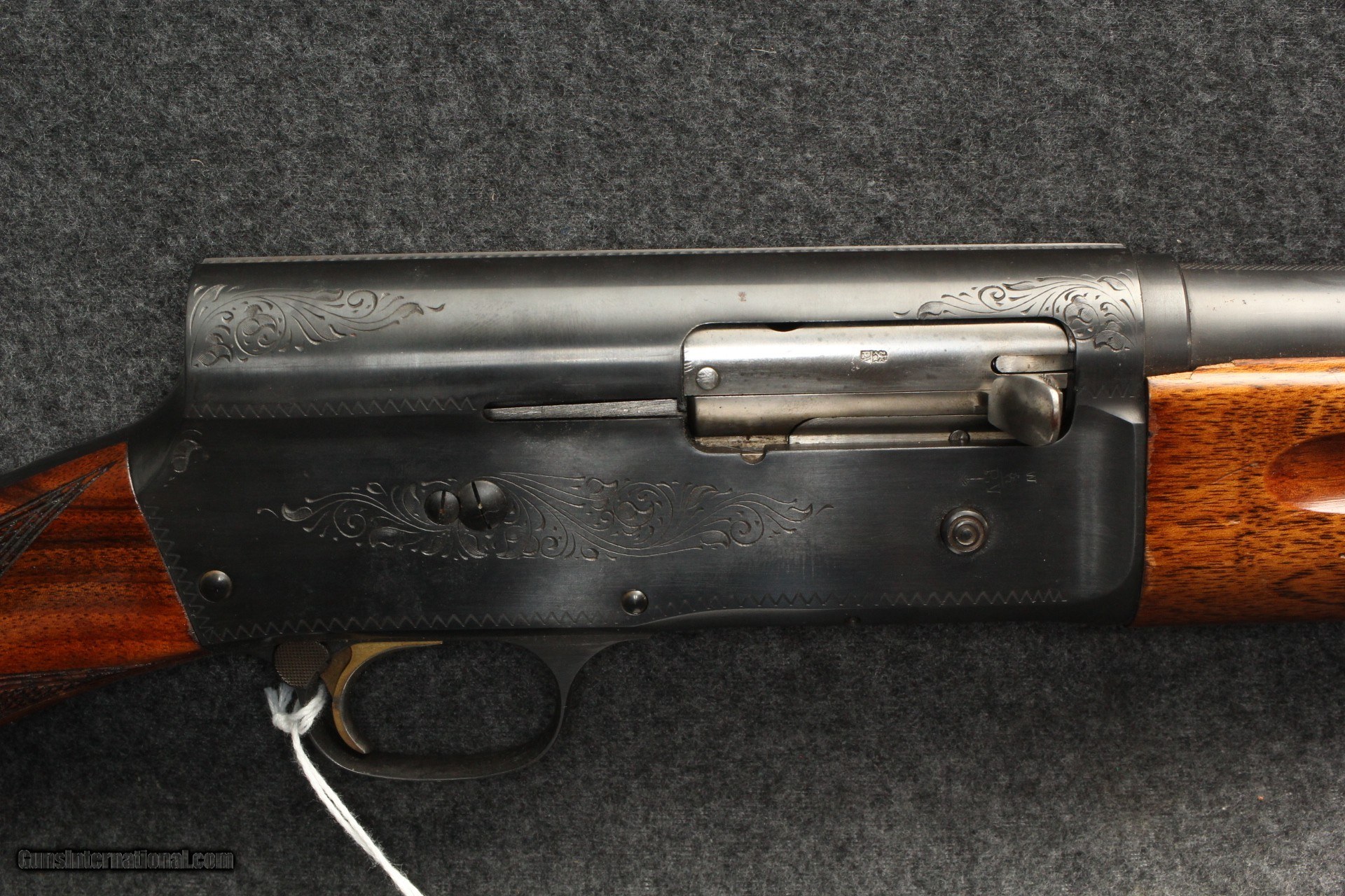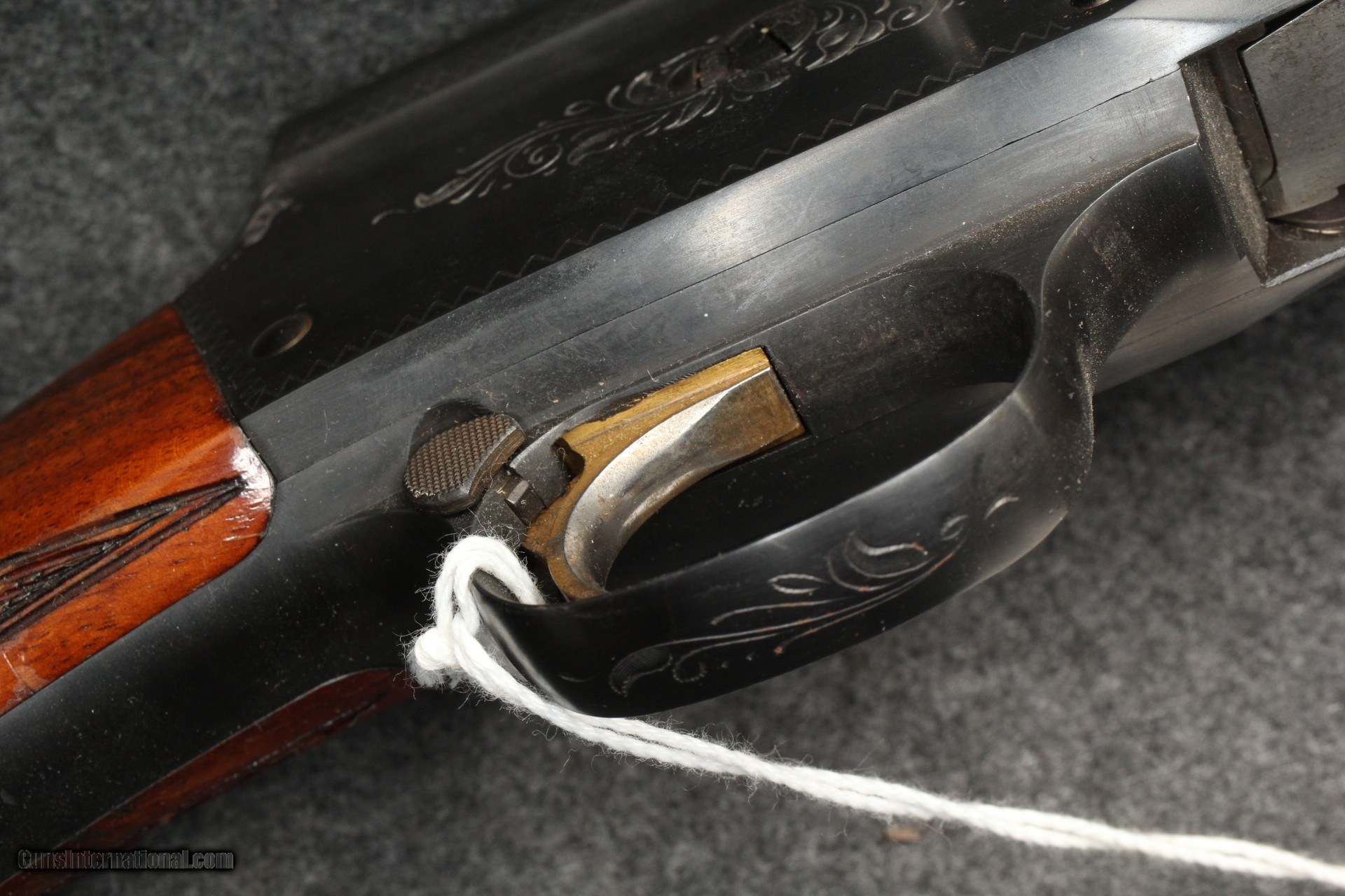 Description: 16ga, serial number 9S281XX. 25" barrel, 2 3/4" chamber. Made in Belgium. Fixed choke (mod). Forend shows light marring, no apparent cracks. Checkering shows wear, flattening at some points. Retains 90% original finish. Buttstock shows hunting wear and checking of original finish, 90% remains. Slight oil soaking around tang. Correct original buttplate. Metal shows minor rust freckling on barrel and receiver. Retains 95% blue. First 8" of barrel show dulling, possible cold blue application. Bore is excellent. More photos on request. Please add $60.00 for shipping and insurance. SOLD Shotgun Gauge: 16 Gauge |