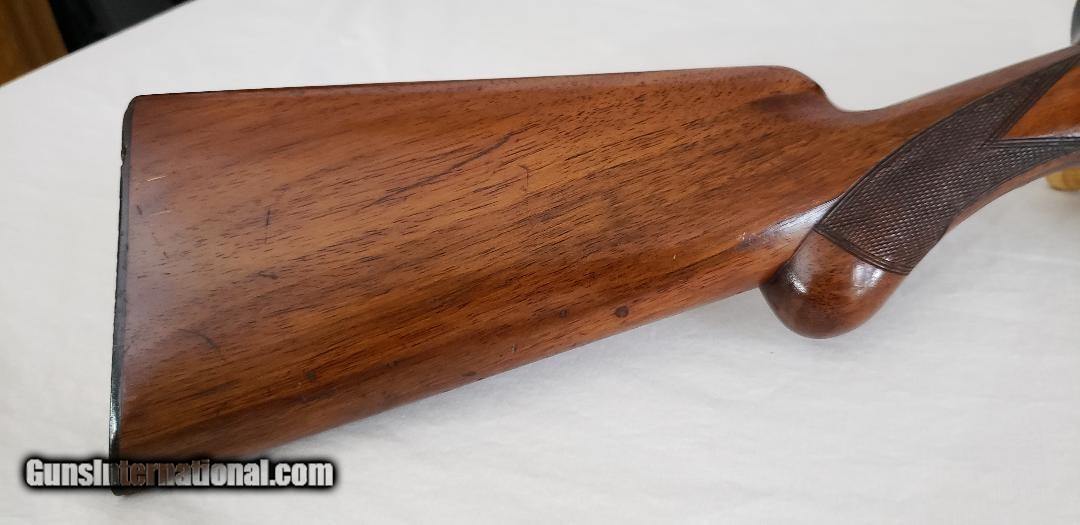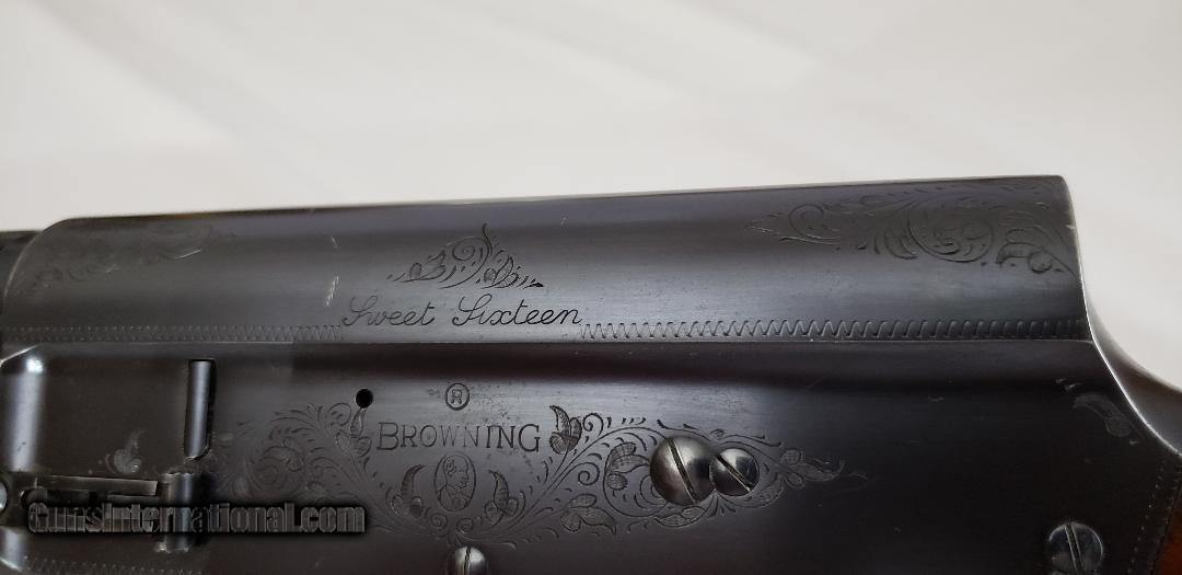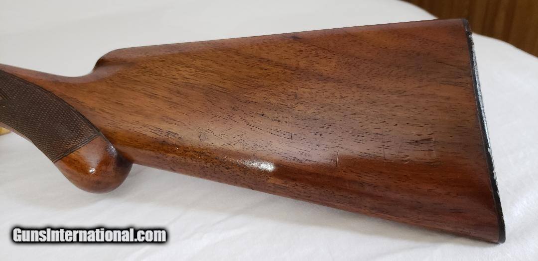 Description: This is a rather rare, and decent Browning Sweet Sixteen round knob built in 1957. The gun has a 27 1/2" 16ga. full choke barrel with a mint bore and factory vent rib. The overall condition is well hunted, with numerous small marks to the stocks, but no visible cracks or repairs. The butt plate is original, and in nice shape, with a few small nicks along the edges. The gold wash on the trigger is mostly wore off from plenty of fun in the field. She's not perfect, but still a fine example of Browning workmanship, with lots of life left. Payment by Postal Money Order, unless otherwise agreed. SOLD Shotgun Gauge: 16 Gauge Manufacturer: Browning Model: Sweet Sixteen Serial Number: S 22803 Barrel Length: 27 1/2 Condition: above average Metal Condition: 85% Wood Condition: 80% Bore Condition: mint Barrel Type: Vent rib Action: Semi-auto Triggers: single Stock: factory walnut Manufacture Date: 1957 Chokes: Full Engraving: factory |