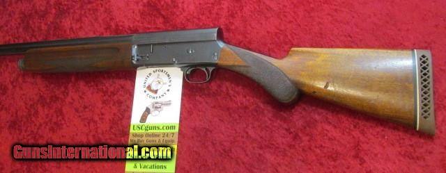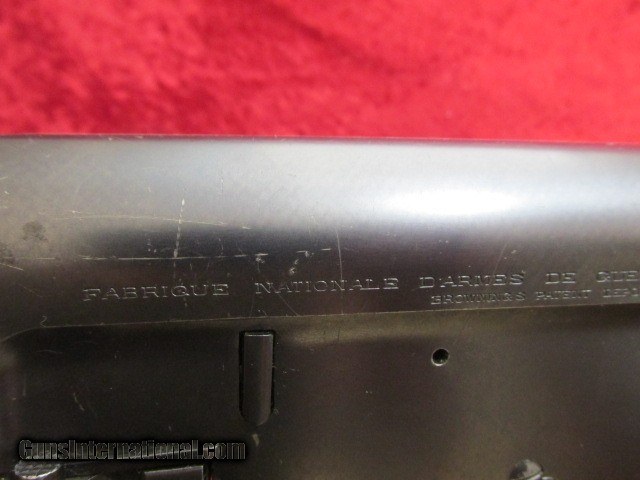 Description: FN Belgium Browning Auto 5 Sweet Sixteen semi-auto 16 gauge Very desirable Long Barrel with Round Knob & RARE Solid Rib!! This is a used FN Belgium Browning Auto 5 16 gauge shotgun, recoil-operated semi-auto designed by John M. Browning. Grade 1, solid (matte) rib barrel, 27" with very tight Fixed Full choke. Matching serial # is stamped on barrel, bolt, and receiver screw heads. Rounded pistol grip knob on stock with Pachmayr White Line recoil pad. The bore is in very good condition (bright and shiny), forend walnut has a small crack on the left side (as almost all did), magazine cap is missing the sling stud. Has the side switch (AKA South Dakota Switch) to leave the magazine tube full. Screws are not buggered up! Overall condition 85% showing nicks, dings, and scratches in the wood (crack in forearm as described). Appears to be original finish. Metal has scratches and wear on the edges from use. One small nick on the right side of the barrel--bore is bright and shiny. Please see pictures.