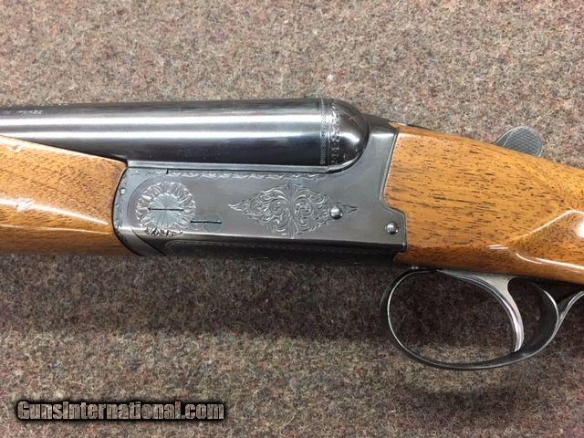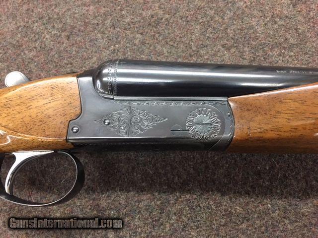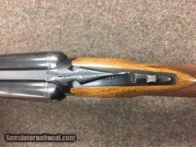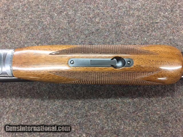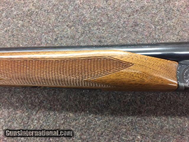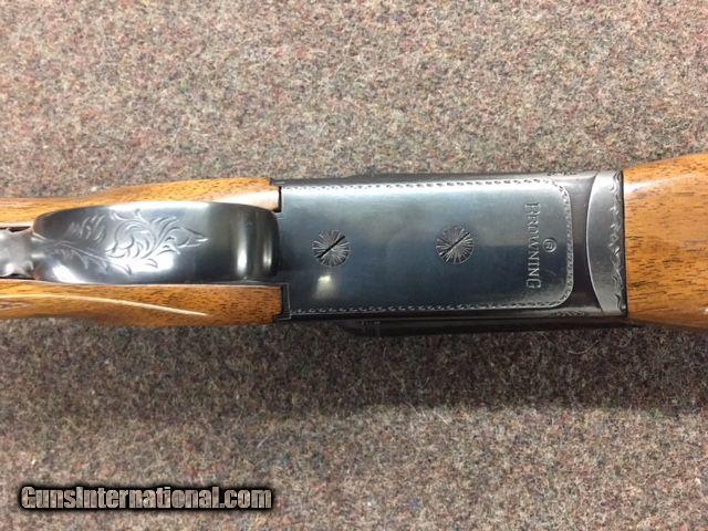 Description: 28 INCH BARRELED, FIXED FULL/MOD CHOKES, EJECTORS, NON SELECT SINGLE TRIGGER, 14 1/4 LENGTH OF PULL TO FACTORY BUTT PLATE, TOP LEVER CENTERED IN THE TANG, METAL 93-95% VERY SLIGHT HANDLING MARKS ON METAL, SHARP EDGE BLUE WEAR RIGHT AT BALANCE POINT (CARRYING POINT) NO DENTS OR DINGS IN BARRELS, PERFECT BORES, NO RUST, WOOD SHOWS NUMEROUS LIGHT TO HEAVIER S DINGS DENTS SCRATCHES, NO CRACKS, NO SPLITS, JUST AN HONEST 3 INCH CHAMBERED EXCELLENT HUNTING GUN. COMES WITH BROWNING BSS BOX BUT 12GA BOX. AGAIN EXCELLENT HUNTING GUN SOLD |