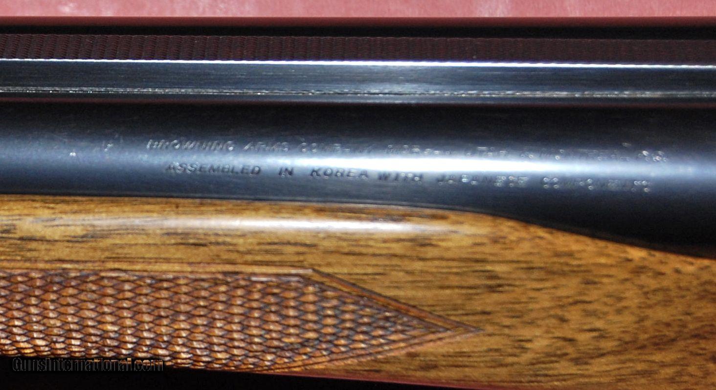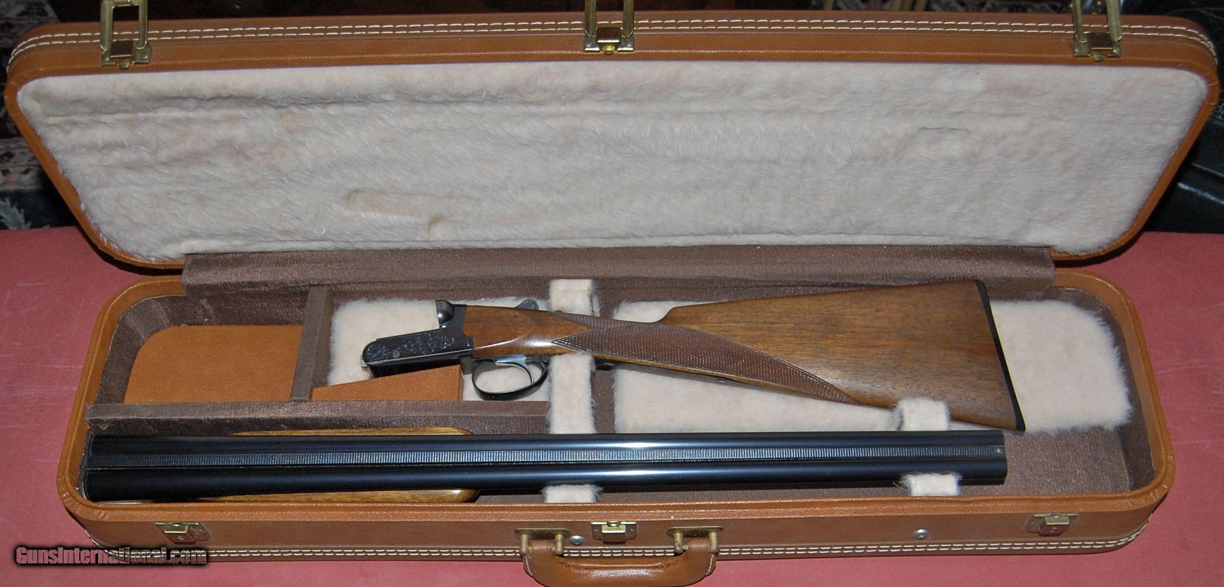 Description: Beautiful Browning BSS sporter 20 gauge.This gun is in like new condition retaining 100% of the original blue and wood finish.It has 26" barrels choked improved cylinder and modified.Features include a straight grip stock,slim beavertail forend,single selective trigger,and ejectors.Cased in the correct period Browning luggage case.Built in 1977.A great all around upland bird gun.The BSS guns are one of the best values in a double on the market today. SOLD Manufacturer: Browning (Miroku) Model: BSS Sporter Serial Number: 01479RR128 Chambers: 23/4" and 3 Ejectors: yes Metal Condition: mint Wood Condition: mint Bore Condition: mint Action: double barrel Triggers: single selective Gauge Info: 20ga Manufacture Date: 1977 Choke Left: modified Choke Right: improved cylinder |