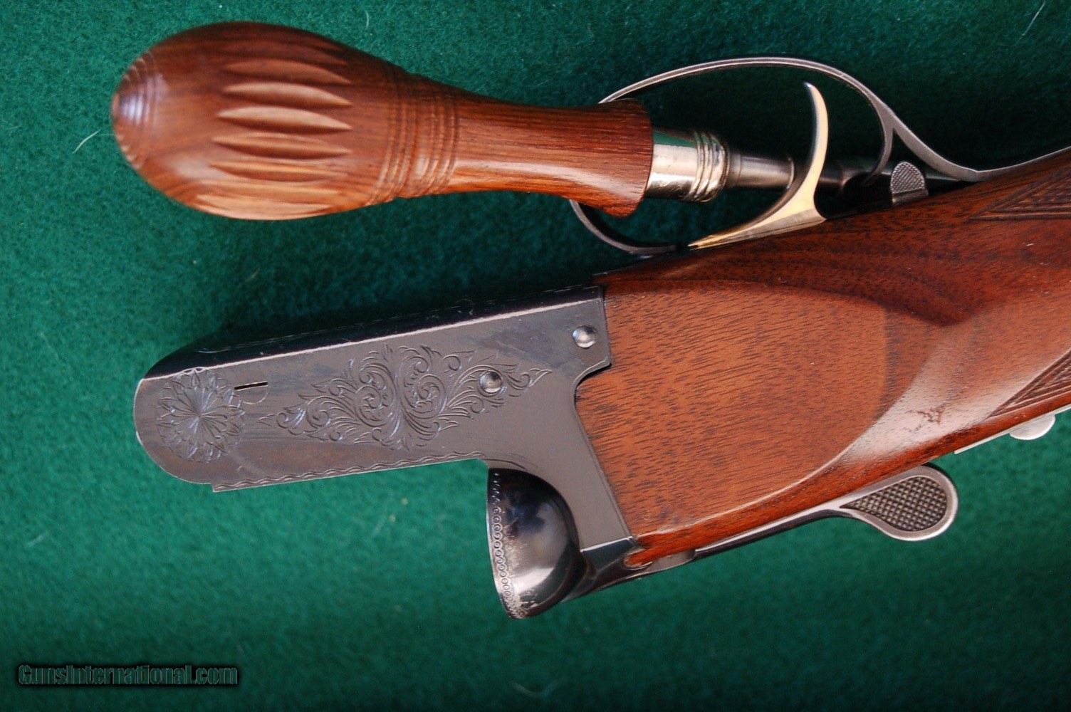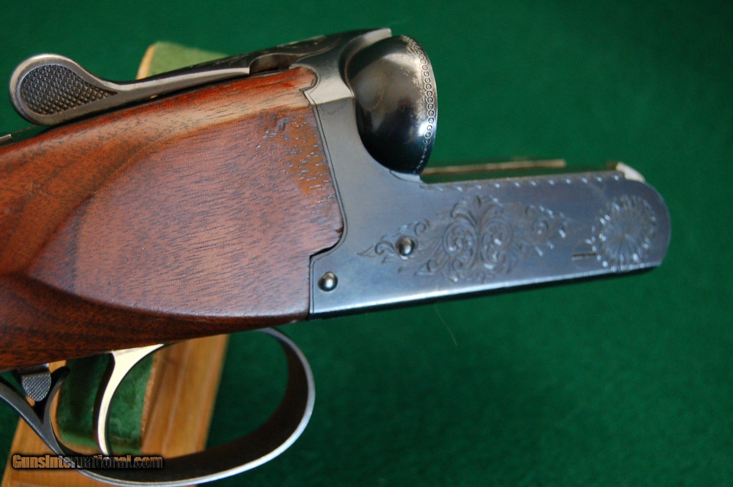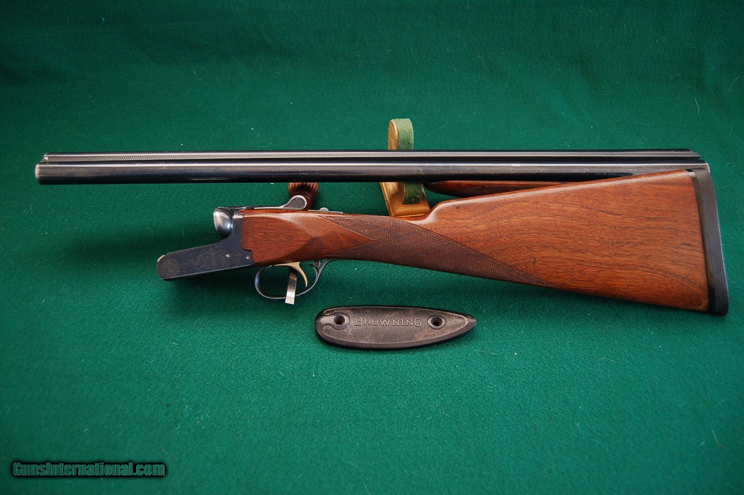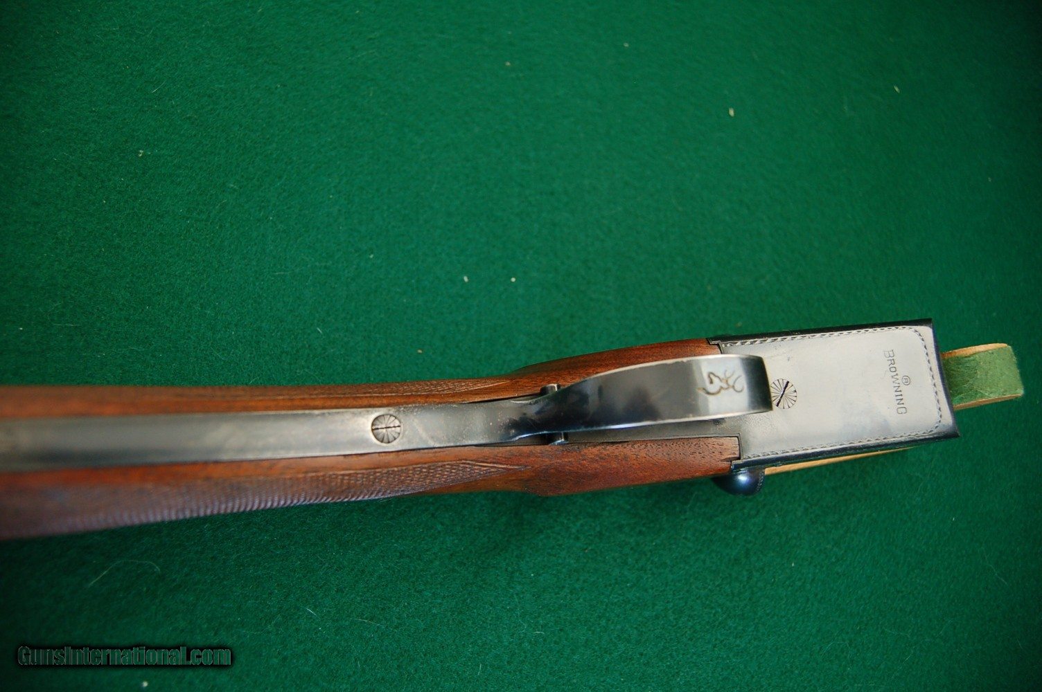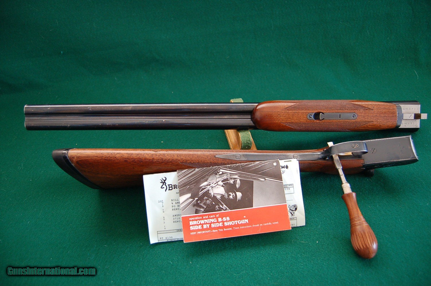 Description: Browning Arms B-SS Sporter 26" IC/Mod 12 bore, Purchest date 12/19/86. As one can see this gun has seen a lot of Duck, Honkers, and upland hunting, to say the lest. The LOP is 14.5 over the pad, the stock has not been cut so the original plate could be fitted. The wood remaines in nice condition with a few handling arks, the bluing shows a bit of ware. $1350.00 + S&H UPS Ground need a FFL SOLD Thank You SOLD Shotgun Gauge: 12 Gauge Manufacturer: Browning "Miroku Model: B-SS Sporter Serial Number: 04519PX158 Barrel Length: 26 Chambers: 2&3/4-3 Ejectors: yes Condition: nice Metal Condition: action 90% Brls. 80% Wood Condition: 90% Bore Condition: 90% Barrels: steel 26" IC/Mod. Action: box lock Triggers: select single Stock: walnut Fore End: semi beaver Butt Pad: pad and original plate LOP: 14.5 over pad Finish: blue Chokes: IC/Mod. Choke Left: Mod. Choke Right: IC Engraving: On Action |