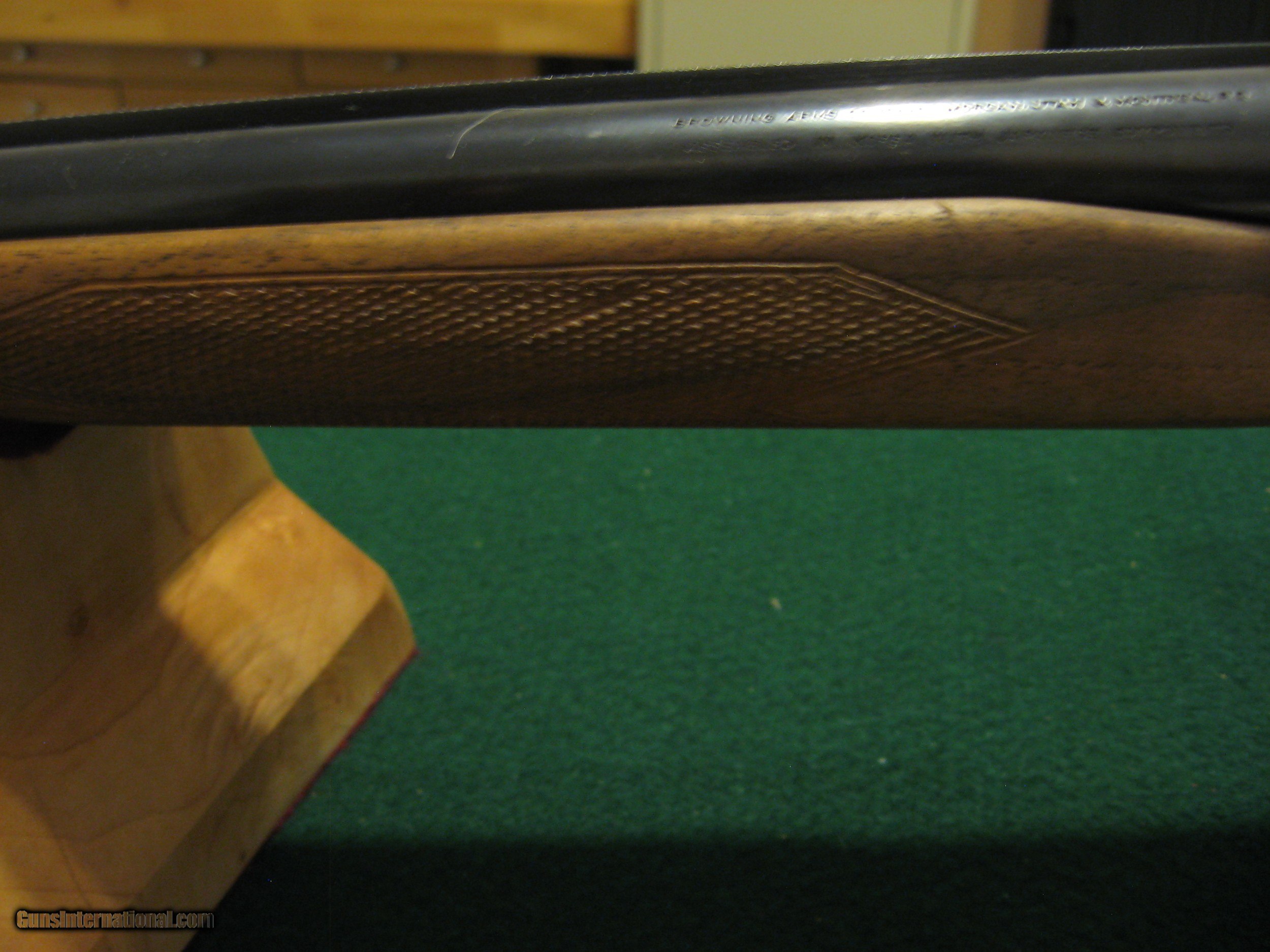 Description: BROWNING SxS 20 Ga. SOLID RIB, STRAIGHT GRIP STOCK, LONGER LOWER TANG, SLIMMED BEAVERTAIL FOREARM, OIL FINISHED STOCK, MFG DISCONTINUED IN 1988, VERY SOLID, TIGHT GUN, APPEARS TO HAVE BEEN USED VERY LITTLE,. ALL FEDERAL, STATE AND LOCAL LAWS APPLY TO THE SALE OF THIS ITEM. BUYER IS RESPONSIBLE TO KNOW IF LEGAL TO OWN OF POSSESS IN THEIR LOCALE. PLEASE EMAIL, CALL OR TEXT US IF YOU HAVE ANY ???. FREE INSURED SHIPPING TO BUYERS TRANSFER DEALER OF CHOICE. WE MUST CHARGE SALES (8.1%) TO WA STATE BUYERS. SHIPPING WILL BE $30.00 ***********SALE PENDING*********** SOLD Shotgun Gauge: 20 Gauge Manufacturer: BROWNING Model: B-SS SPORTER Serial Number: 01589RN16x Barrel Length: 28 Condition: 95+ Metal Condition: 95+ Wood Condition: 95+ Bore Condition: fine Barrel Type: Blue Action: BREAK OPEN Triggers: 1 Stock: Checkered Walnut Rib: SOLID Finish: Blue Sights: BEAD Choke Left: FULL Choke Right: MODIFIED Engraving: RECEIVER/ LIGHT ENGRAVING Item Location: Washington |
