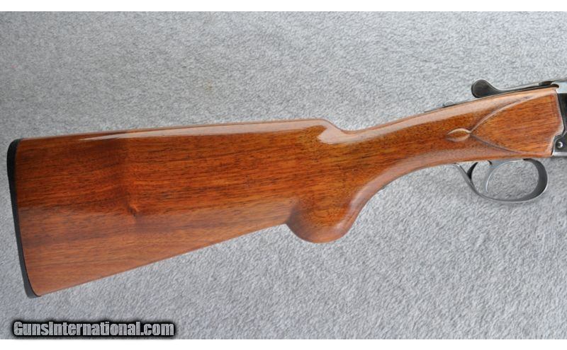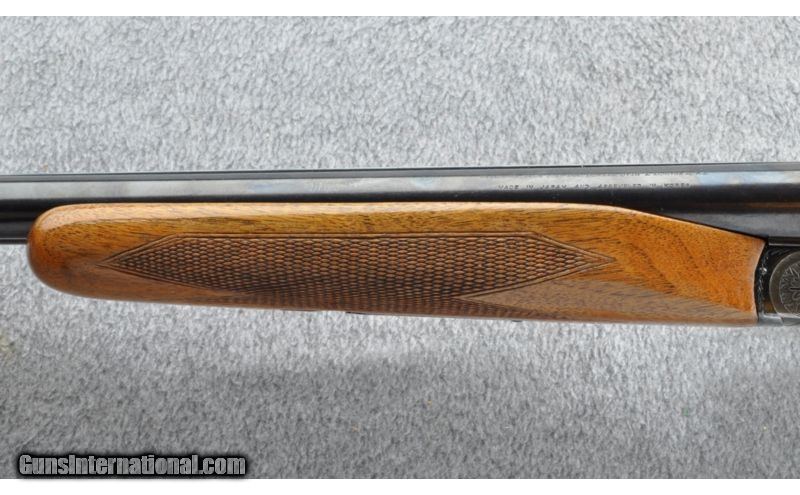 Description: Solid old Browning SOLD Manufacturer: 1975 Caliber Info: 12 Gauge Chambers: 3 Metal Condition: Light wear at the trigger guard, action lever, safety & bottom of the frame. Barrels retain good blue Wood Condition: The butt stock was replaced, most likely a Fajen, as to correct a short LOP of the original however, it was not a Browning stock and was not checkered to match the fore end. the fitment leaves a little to be desired but the wood grain matches pretty well Bore Condition: Bright with no visible flaws Barrels: 26" Solid Rib with Auto Ejectors Triggers: Single non-selective Stock: Uncheckered replacement butt stock with round knob grip Stock Dimensions: 14 1/4" LOP Fore End: Checkered beavertail with Deeley style release Butt Pad: Fajen hard rubber Weight: 7 lbs 10 oz Sights: Metallic bead front Chokes: Fixed Modified & Improved Cylinder Item Location: Grand Junction, CO |