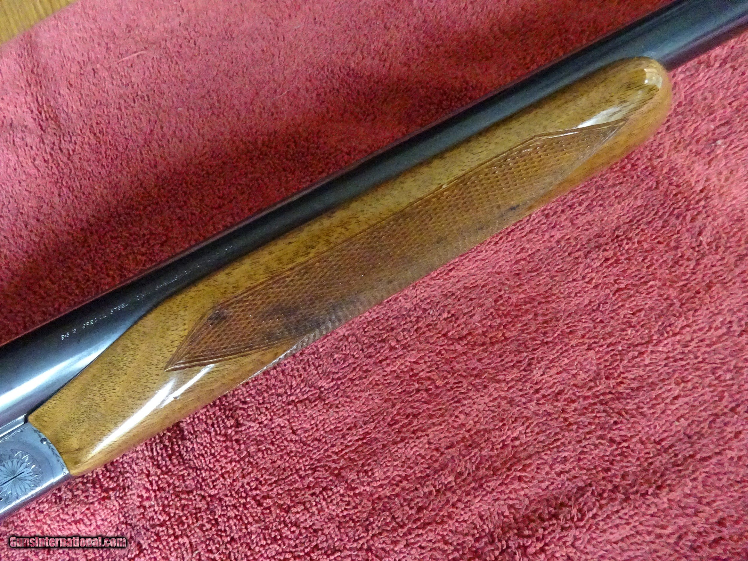 Description: SALE PENDING BROWNING BSS 12 GAUGE. 30" BARRELS, MODIFIED AND FULL, MARKED "SPECIAL STEEL 12GA SHELLS 2 3/4" AND 3"", 100% BRIGHT BLUE, MIRROR BORES, AUTOMATIC EJECTORS. SINGLE NON-SELECTIVE TRIGGER, STANDARD SCROLL ENGRAVING PATTERN, TOP LEVER TO THE FAR RIGHT, TIGHT ON FACE. PISTOL GRIP STOCK, BEAVERTAIL FOREARM, ORIGINAL BUTTPLATE. NEAR PERFECT WOOD AND CHECKERING, 1 1/2" X 2 1/4" X 14 1/4", 7 POUNDS 14 OUNCES. THE GUN APPEARS TO BE LITTLE USED IF AT ALL. 30" BARREL EXAMPLES ARE EXTREMELY HARD TO FIND, 100% ORIGINAL NEAR NEW CONDITION. MADE 1971-1988. $2450.00 + $60.00 Insured shipping to an FFL address. Layaway is available. See all Pats gun listings on this site! We also have hundreds of pieces of ORIGINAL gun company advertising & memorabilia available for sale on our site SPORTINGCOLLECTIBLES. We have no reprints or reproductions. Email for more information. SOLD |