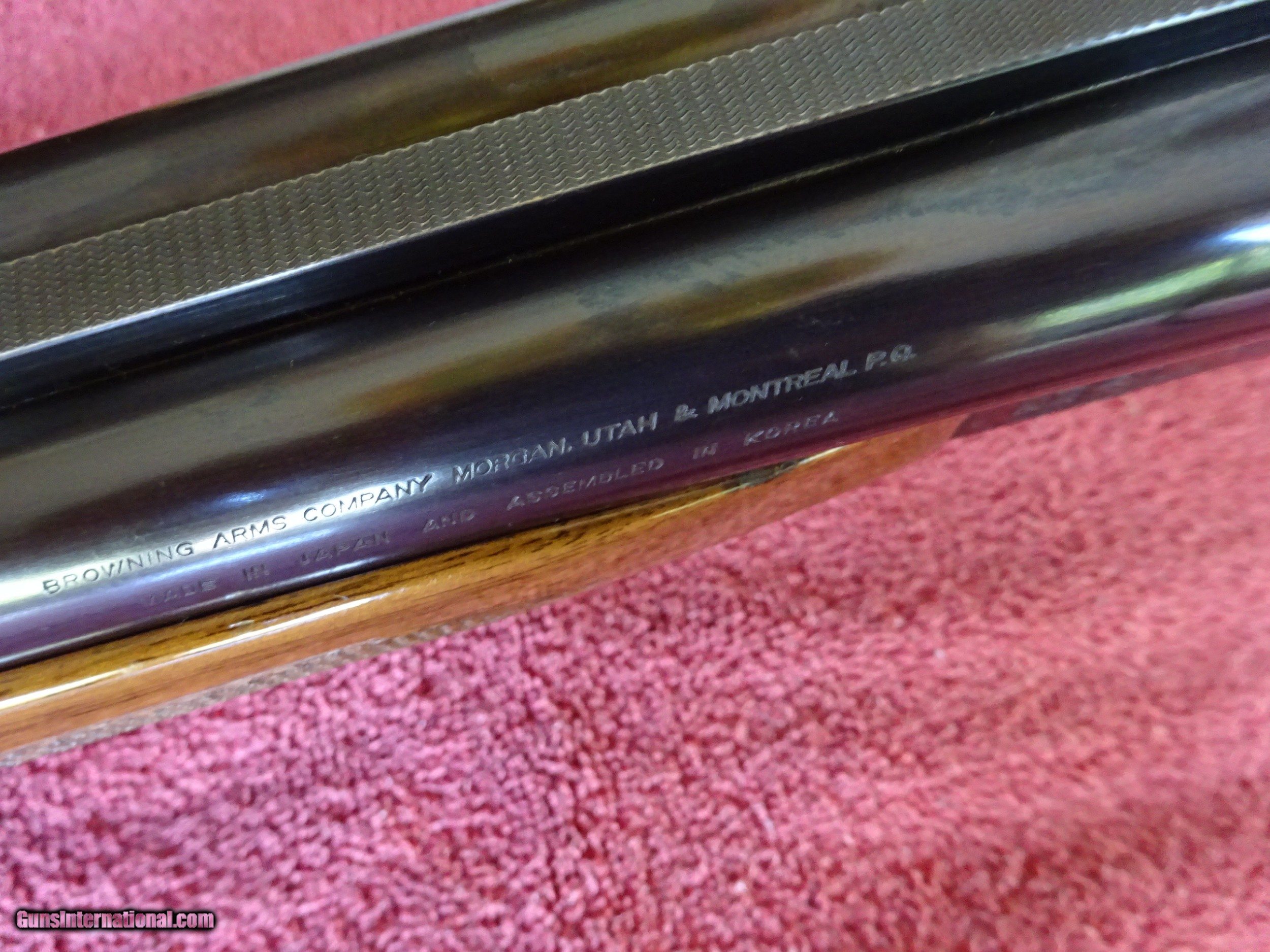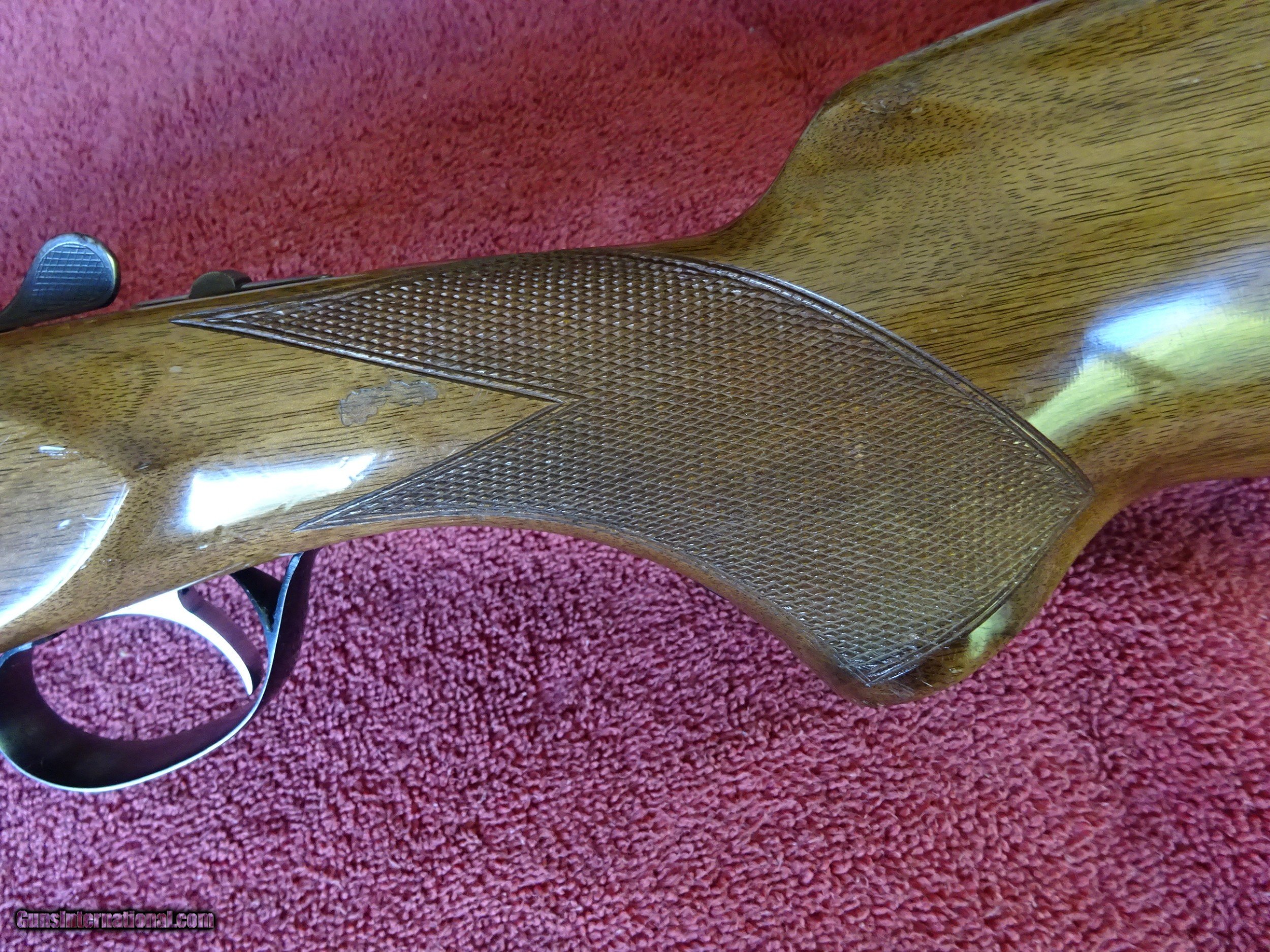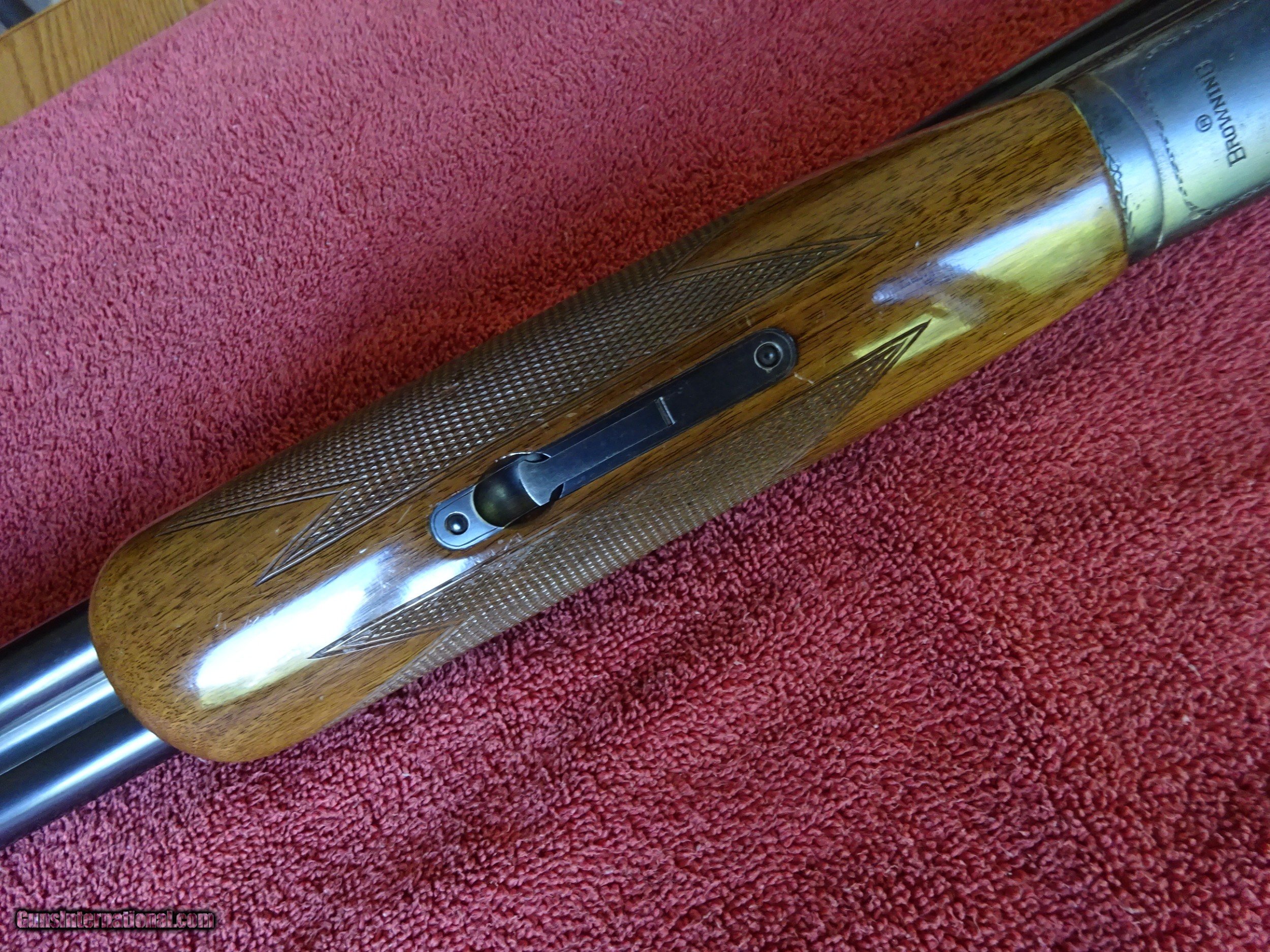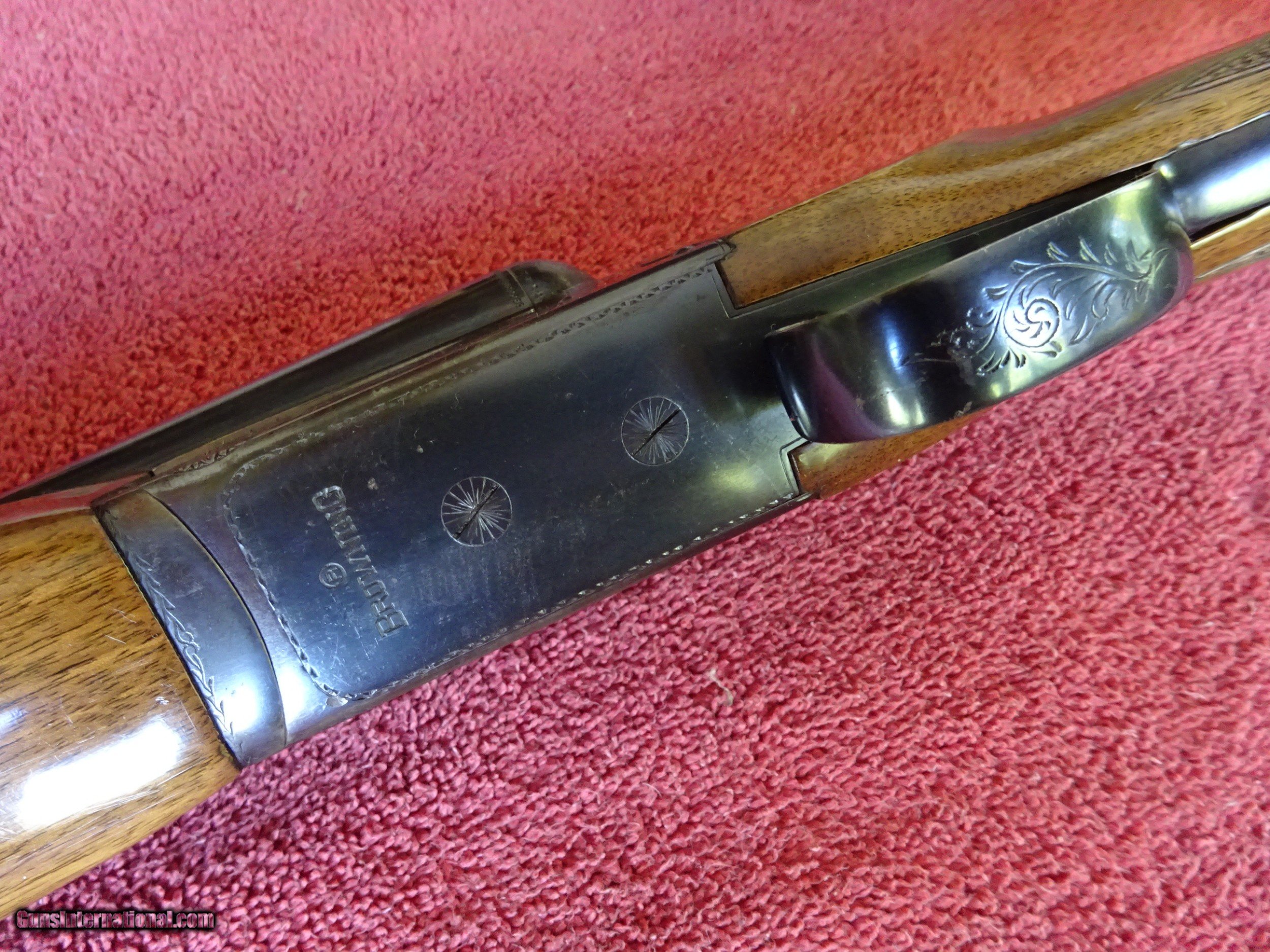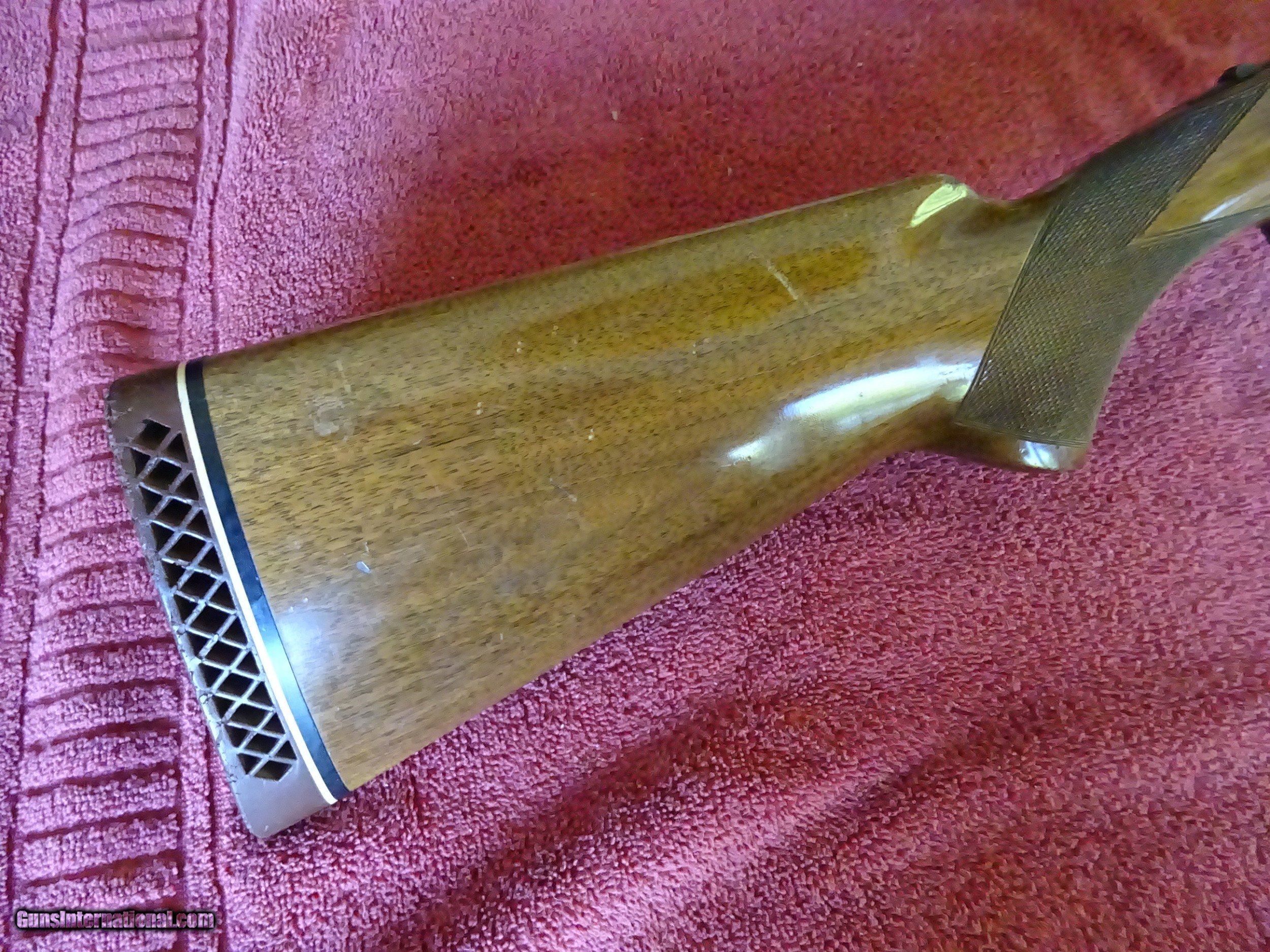 Description: BROWNING BSS 12 GAUGE, 26" BARRELS. MODIFIED AND FULL, 3" CHAMBERS, MIRROR PERFECT BORES, BARRELS RING NICELY, VERY GOOD BLUE. STANDARD SCROLL ENGRAVING PATTERN, AUTOMATIC EJECTORS, SINGLE NON-SELECTIVE TRIGGER. PISTOL GRIP STOCK, BEAVERTAIL FOREARM, VERY GOOD WOOD WITH NORMAL HANDLING MARKS, SOME SCRATCHES IN THE VARNISH, 1 1/2" X 2 1/4" X 14 1/4", 7 POUNDS 6 OUNCES. TOP LEVER TO THE RIGHT, TIGHT ON FACE. $1275.00 + $50.00 Insured shipping to an FFL address. See all Pats gun listings on this site! We also have hundreds of pieces of ORIGINAL gun company advertising & memorabilia available for sale on our site SPORTINGCOLLECTIBLES. We have no reprints or reproductions. Email for more information. SOLD |