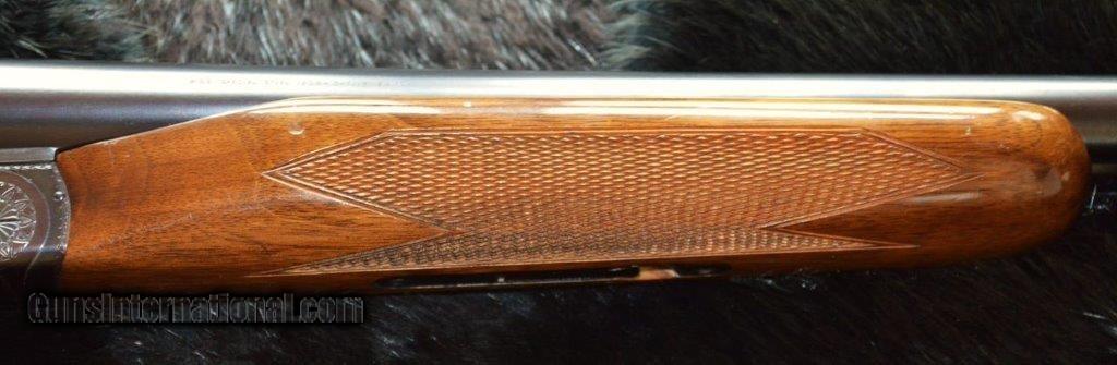 Description: SOLD *** to Levi*** This is a Browning BSS 12ga with 28" barrels that are choked full & modified. The bluing is 99% with no appreciable loss. The bottom tang is slightly frosted. There are some very minor rust spots on the barrels (see pictures), but overall, the gun is in very good condition. There is a small, barely discernable, bump on the bottom of the left tube, but you cannot see anything on the inside. The bores are bright and shiny. The wood has some handling and hunting dings, but they are very minor. It has a Pachmayr recoil pad and the length of pull to the end of it is 14-1/2". The serial number ends in A37 (1973) indicating the third year of production, the first being 1971. The gun is tight upon opening from a lack of use and as a result functions very well. The gun weighs 7 lbs 8 oz. SOLD Shotgun Gauge: 12 Gauge |