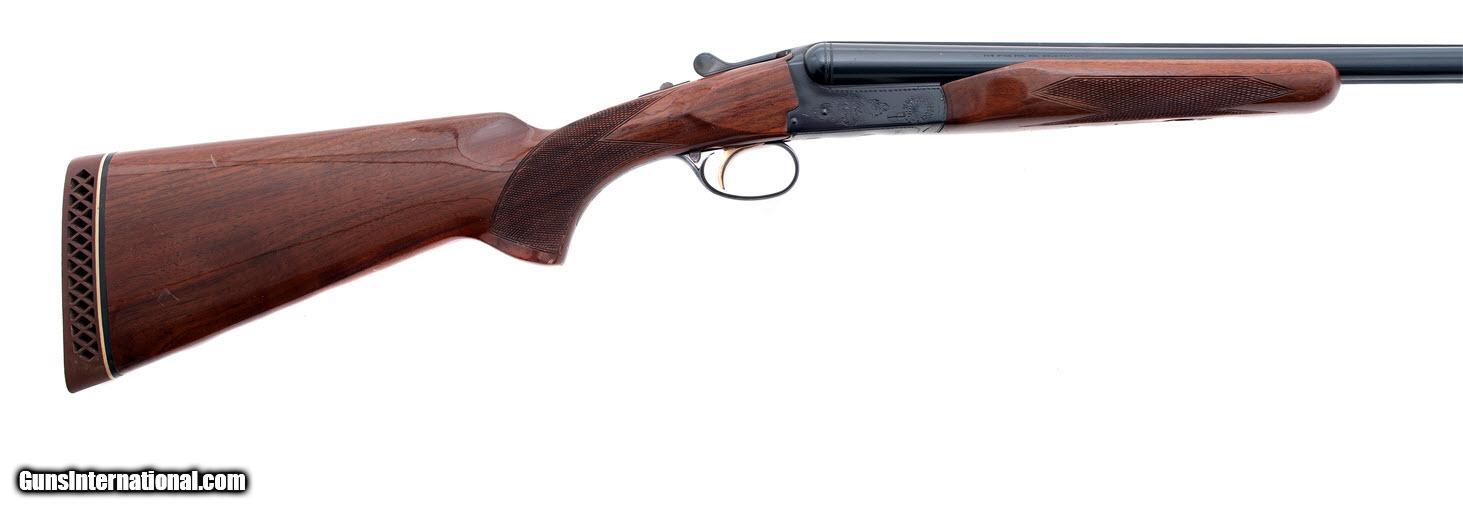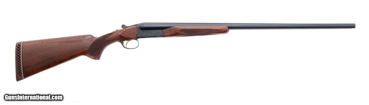 Description: Browning - BSS - 20 ga - Item Number: BRO02843PZ168 Shotgun type: Side-by-Side Action: Boxlock Ejectors: Yes Trigger: Single Grip: Pistol Grip Forend: Checkered Lop: 15 " Pad thickness: 1 " Type of butt: Pachmayr Pad Drop comb: 1 5/8 " Drop heel: 2 1/2 " Cast amount: 1/8 " Cast: Off Weight: 7 lbs, 4 oz Manufactured in: Japan Manufacture Year: Finish: Blue Overall condition: Very Good Stock condition: Very Good Metal condition: Very Good Stock: Original finish Metal: Original finish Type of Case: none Extra barrels: 0 Barrel info: Gauge: 20 ga Chamber: 3 " Length: 28 " Chokes: Full Mod Rib type: Flat File Cut Comments : Gun is in very good condition with some light handling marks. Lower tang has what looks like marks from a ring. SG-325 SOLD |