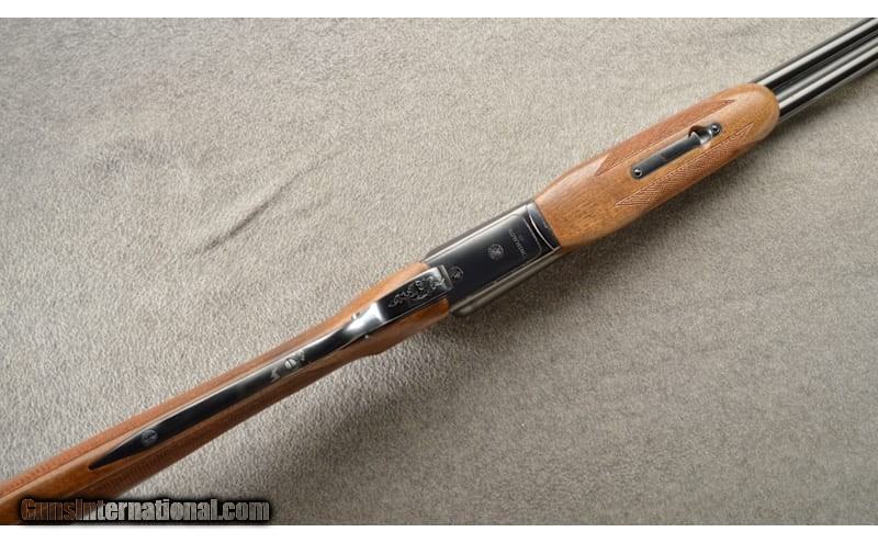 Description: Browning BSS boxlock side-by-side in 20 Gauge. This shotgun has a 26" barrel with a bead front sight on a wavy checkered solid rib with 2 3/4" and 3" chambers. The barrels are fixed choked modified/improved modified with ejectors. The receiver is floral scroll engraved receiver with decorative borders. The trigger guard and break lever are also scroll engraved. The stocks are two-piece checkered wood with beavertail forend, straight grip, straight comb, and a plastic Browning buttplate. 20 Gauge SOLD Chambers: 3" chamber. Metal Condition: 98% remaining with fine finish wear and a little wear on the bottom tag. Wood Condition: 98% remaining with fine scattered scratches. Bore Condition: Bright bores. Barrels: 26" barrel. Triggers: Single trigger. Stock Dimensions: LOP 14". Fore End: Beaver tail. Butt Pad: Plastic. Sights: Front bead. Chokes: Fixed. Item Location: Owatonna, MN |
