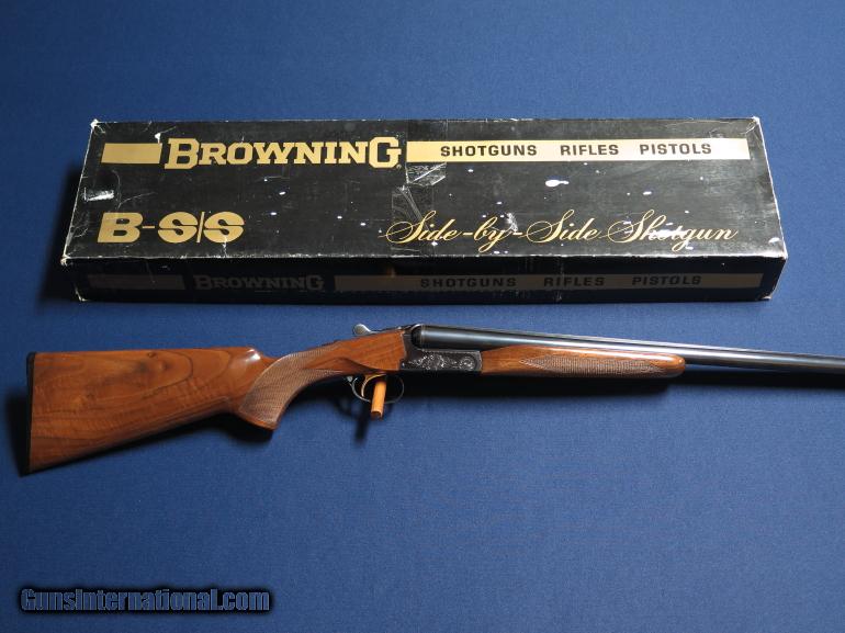 Description: Browning BSS 20ga. 26" barrels. IC & Mod. Single trigger. Automatic ejectors. Beavertail forearm. 97-98% condition. With original box. SOLD |