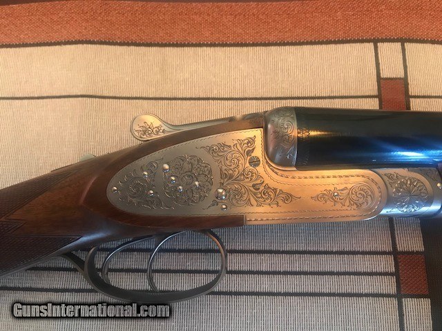 Description: SOLD PENDING FUNDS Beautiful, Scarce, Browning Side Lock 1 0f only 1100 ever produced. Priced to sell (I bought it right) As New, 98 ++ % Less than 500 shells fired Google this, read all about them, file:///Z:/weber-old-web-2015/flynn/james_flynn_bss_sidelock_article_050104.htm SOLD Bore: .730 / .729 Chambers: 2 3/4 Ejectors: Yes Condition: As New Metal Condition: 99 ++ Wood Condition: 98 ++ Bore Condition: 99 ++ Barrels: 28 Barrel Type: S x S Action: Break Triggers: Double Gauge Info: 12 Stock: English Stock Dimensions: 1 1/4 x 2 1/2 x 14 3/8 Butt Pad: Checkered Finish: Satin Weight: 6 lb 9 oz Manufacture Date: 1988 Chokes: Fixed Choke Left: .040Full Choke Right: .020 Mod Engraving: Hand Engraved |