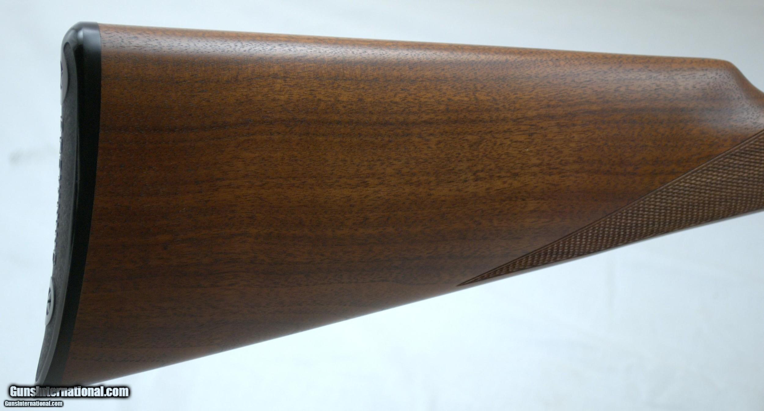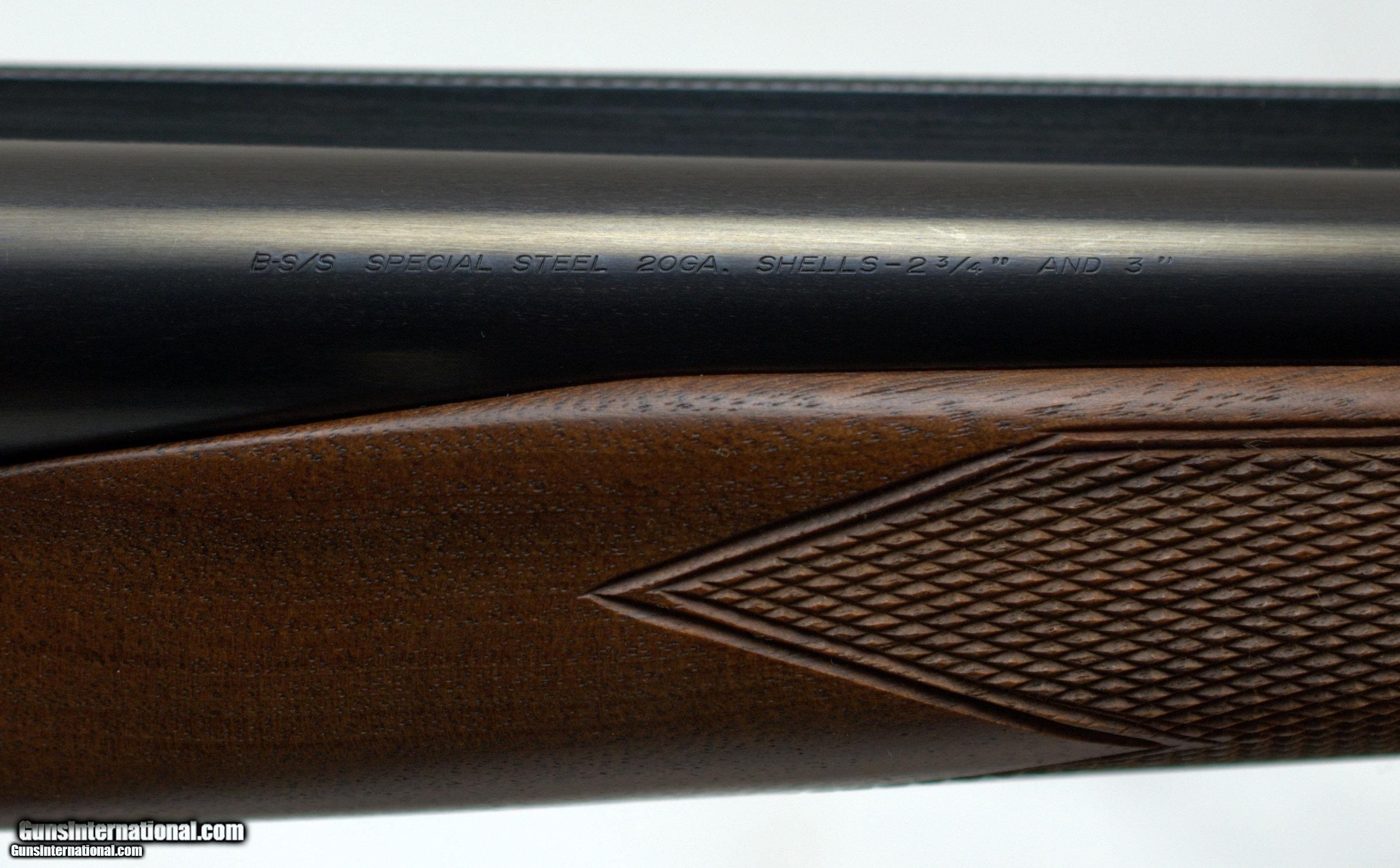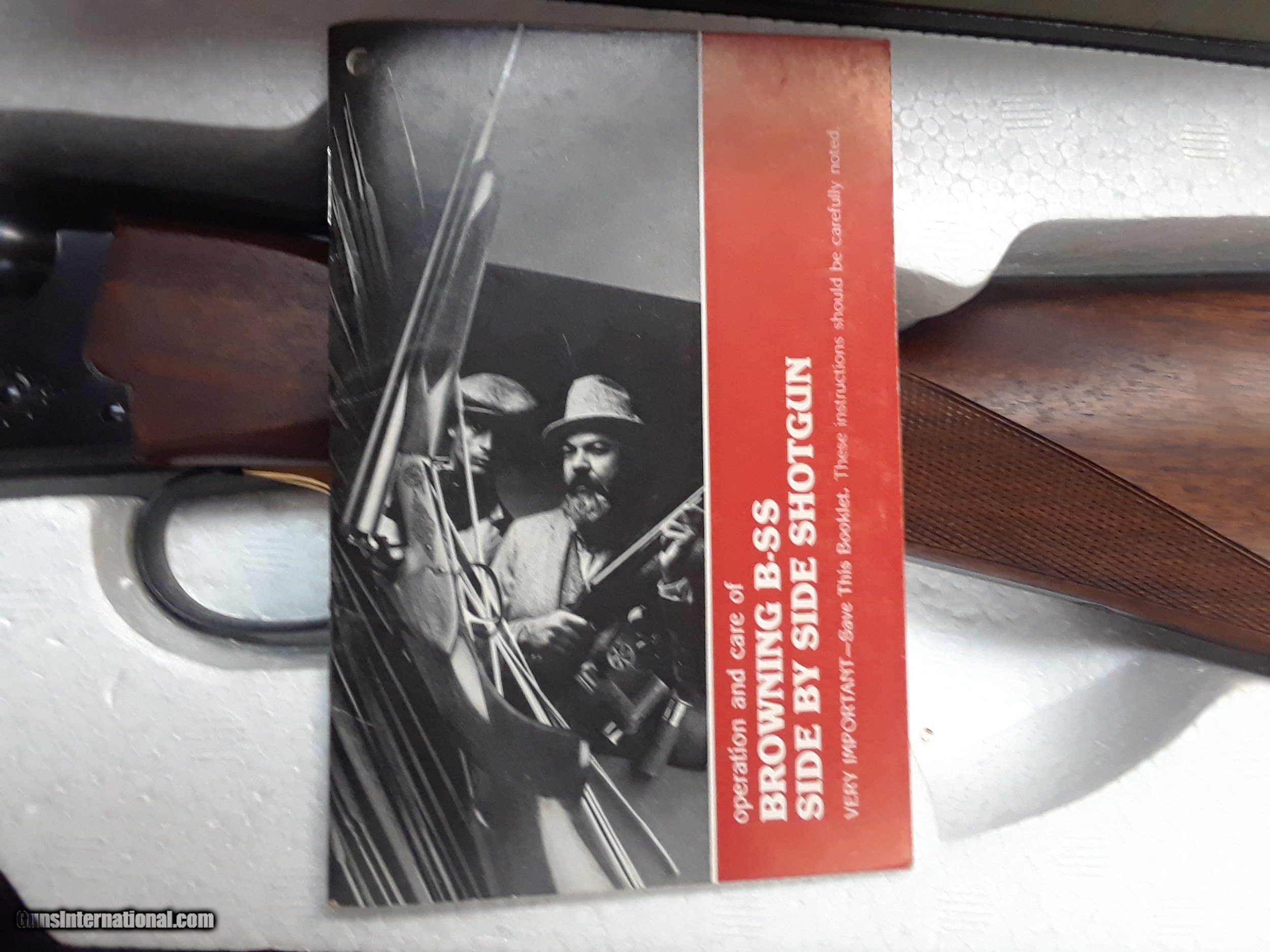 Description: BROWNING BSS GRADE 1 20 GA 26″ Barrels ... 3″ chambers ... CHOKED: ICl/MOD ... LOP 14 1/4 ... DAH 2 1/2 ... DAC 1 1/2 ... WEIGHT: 6 lbs. 8 oz ... Matted rib ... Steel Bead ... single selective trigger ... auto ejectors ... auto safety... CONDITION: Extraordinarily fine, near new. Receiver is lightly scroll engraved on sides and marked “Browning” on bottom and Browning emblem on trigger guard. Full length matted rib with steel front bead. Gold plated single selective trigger, automatic ejectors, automatic safety. Retains virtually all orig finish to both wood and metal. Mechanics are crisp. Brilliant shiny bores. Straight grip stock checkered in 2-pt pattern with 14-1/4″ LOP over Browning black plastic buttplate. Beavertail forearm checkered in 2-pt pattern on sides with Deeley release. Original box numbered to the gun is excellent with light scuff marks. Browning BSS owners manual is included. Call with any questions and see our other listings for "Only the best!" SOLD |