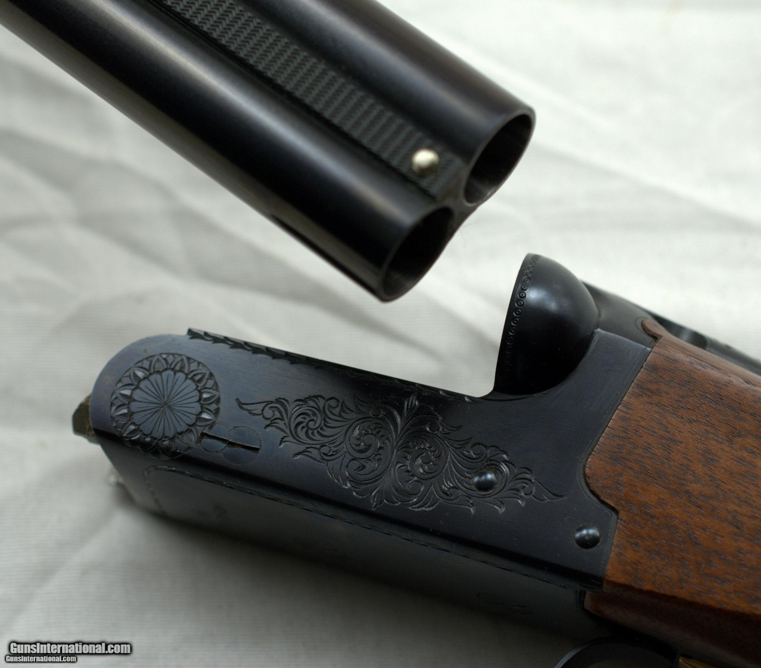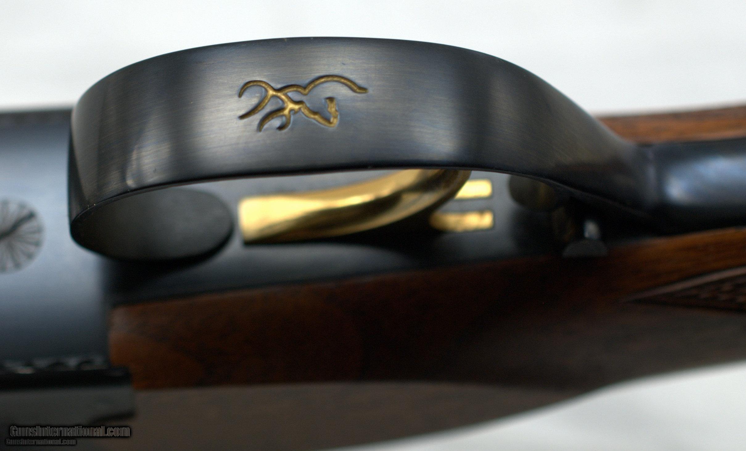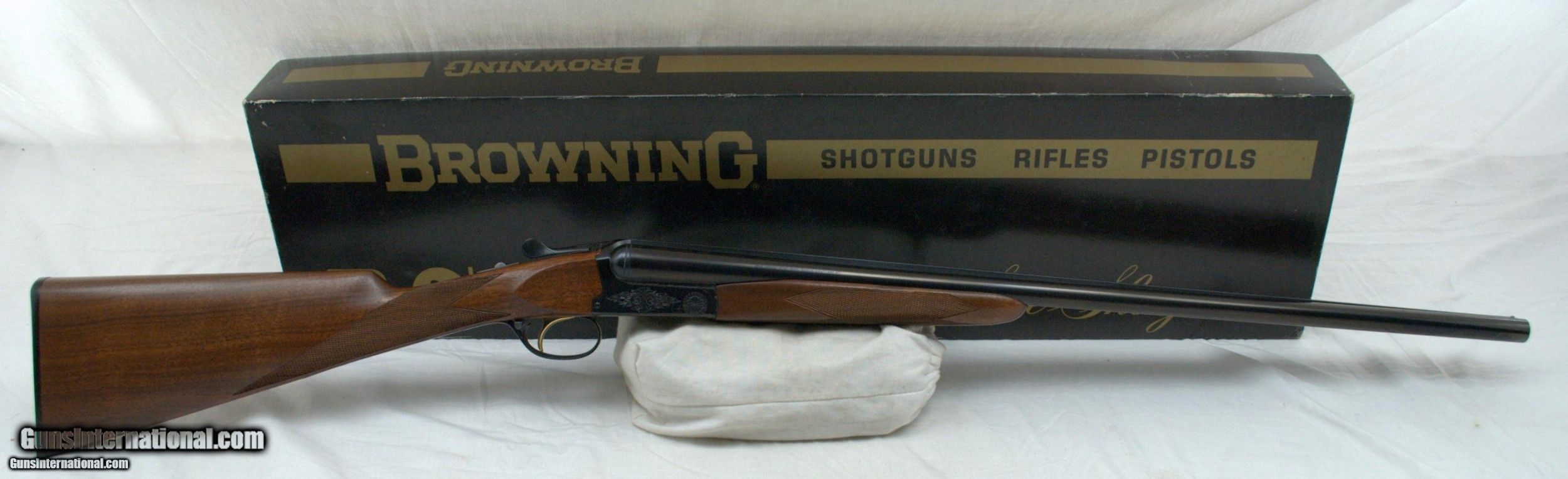 Description: BROWNING BSS GRADE 1 20 GA 26″ Barrels ... 3″ chambers ... CHOKED: ICl/MOD ... LOP 14 1/4 ... DAH 2 1/2 ... DAC 1 1/2 ... WEIGHT: 6 lbs. 8 oz ... Matted rib ... Steel Bead ... single selective trigger ... auto ejectors ... auto safety... CONDITION: Extraordinarily fine, near new. Receiver is lightly scroll engraved on sides and marked “Browning” on bottom and Browning emblem on trigger guard. Full length matted rib with steel front bead. Gold plated single selective trigger, automatic ejectors, automatic safety. Retains virtually all orig finish to both wood and metal. Mechanics are crisp. Brilliant shiny bores. Straight grip stock checkered in 2-pt pattern with 14-1/4″ LOP over Browning black plastic buttplate. Beavertail forearm checkered in 2-pt pattern on sides with Deeley release. Original box numbered to the gun is excellent with light scuff marks. Browning BSS owners manual is included. Call with any questions and see our other listings for "Only the best!" SOLD |