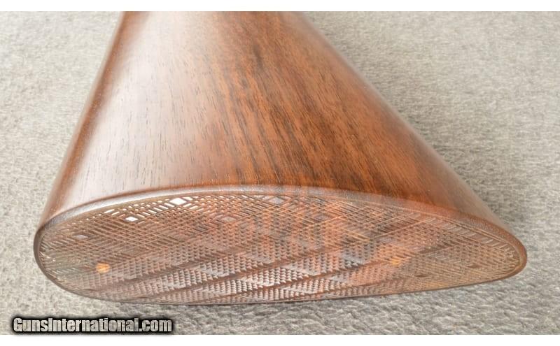 Description: This example has 28" chopper lump barrels, a front bead sight, ejectors, 2-3/4" chambers, a plain tapered concave top rib with scroll engraving on breech end of rib. The left barrel is marked "BROWNING ARMS COMPANY MORGAN, UTAH & MONTREAL P.Q. / MADE IN JAPAN". The right barrel is marked "B-S/S SPECIAL STEEL 12GA. SHELLS 2-3/4"". The barrel flats are marked with the serial number, proof stamps, and choke markings "FULL, IMP MOD". The checkered splinter forend has the Anson push button release with light scroll engraving on the iron. The receiver is a coin finished sidelock action with engraved scroll and floral bursts. The barrel bolsters and long tang trigger guard are also scroll engraved. The bottom of frame is marked "BROWNING" with surrounding scroll work. This gun also ha an auto safety. The stocks are a two piece checkered walnut with a splinter forearm, straight grip and comb, unmarked initial plate in the belly, and the butt of the stock is checkered wood. Comes in the original Browning travel case with snaps caps, oil bottle, cleaning bushes, cleaning rod, and the case key. Overall this Browning appears unused and remains in like new condition. 12 Gauge SOLD Chambers: 2 3/4" chambers. Metal Condition: Like new. Wood Condition: Like new. Bore Condition: Like new. Barrels: 28" barrels. Triggers: Two triggers. Stock Dimensions: LOP 14.25". Fore End: Splinter. Butt Pad: Wood. Sights: Front bead. Chokes: Fixed. Item Location: Owatonna, MN |