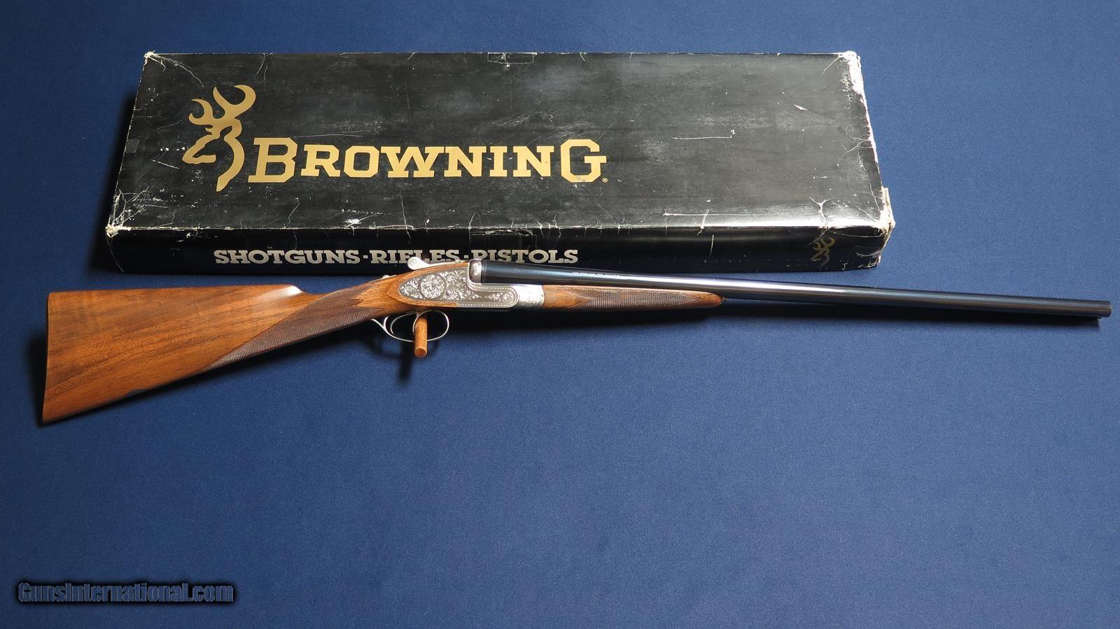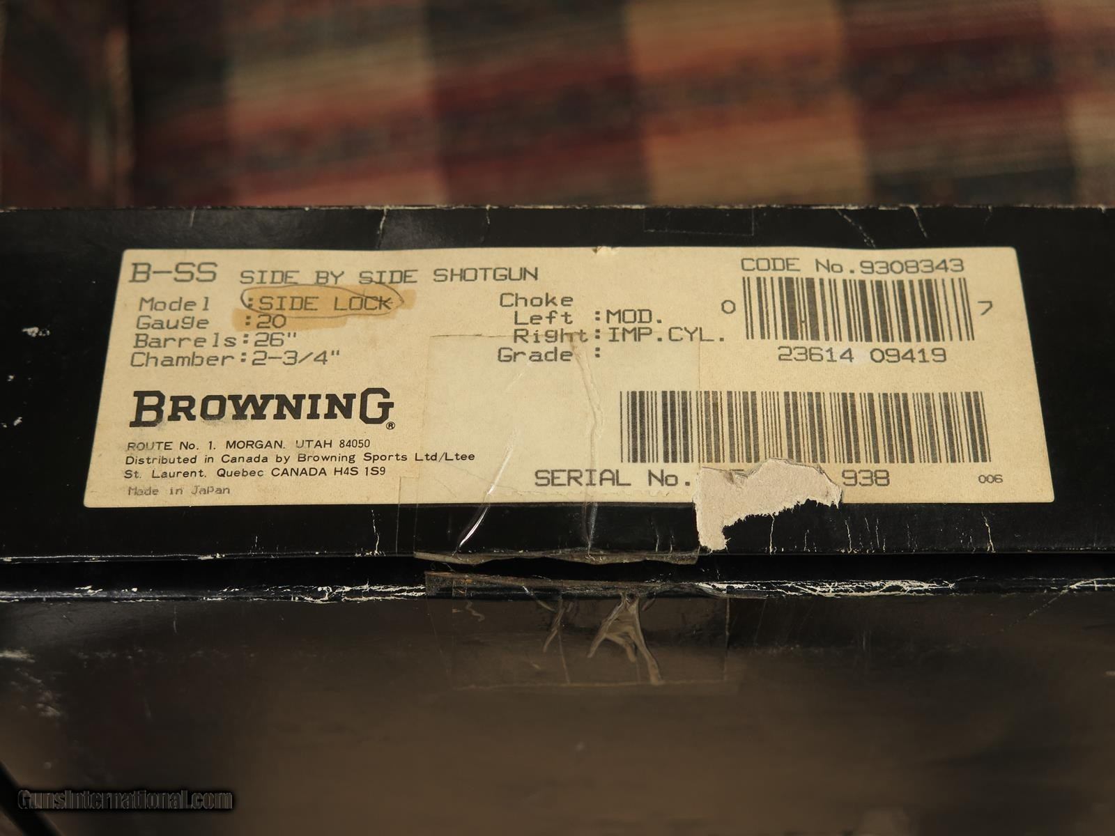 Description: Browning BSS Sidelock 20ga. 26 inch barrels. IC and Mod. Double triggers. Ejectors. 14 1/4 LOP checkered butt. 1 3/8 comb 2 1/8 heel. 98% with box. Excellent bores. 6 lbs 1 oz. Over 45 years in business, and not only do we buy guns, but we accept collections (and single/multiple guns) on consignment. SOLD Shotgun Gauge: 20 Gauge |