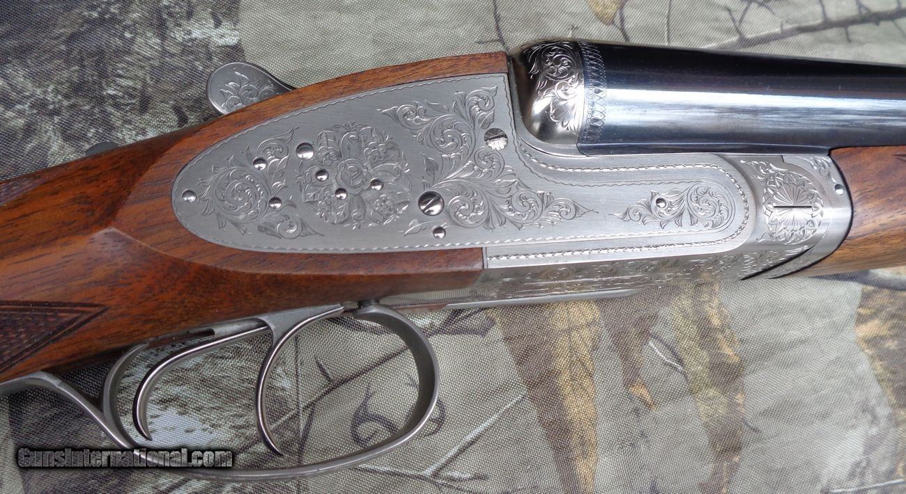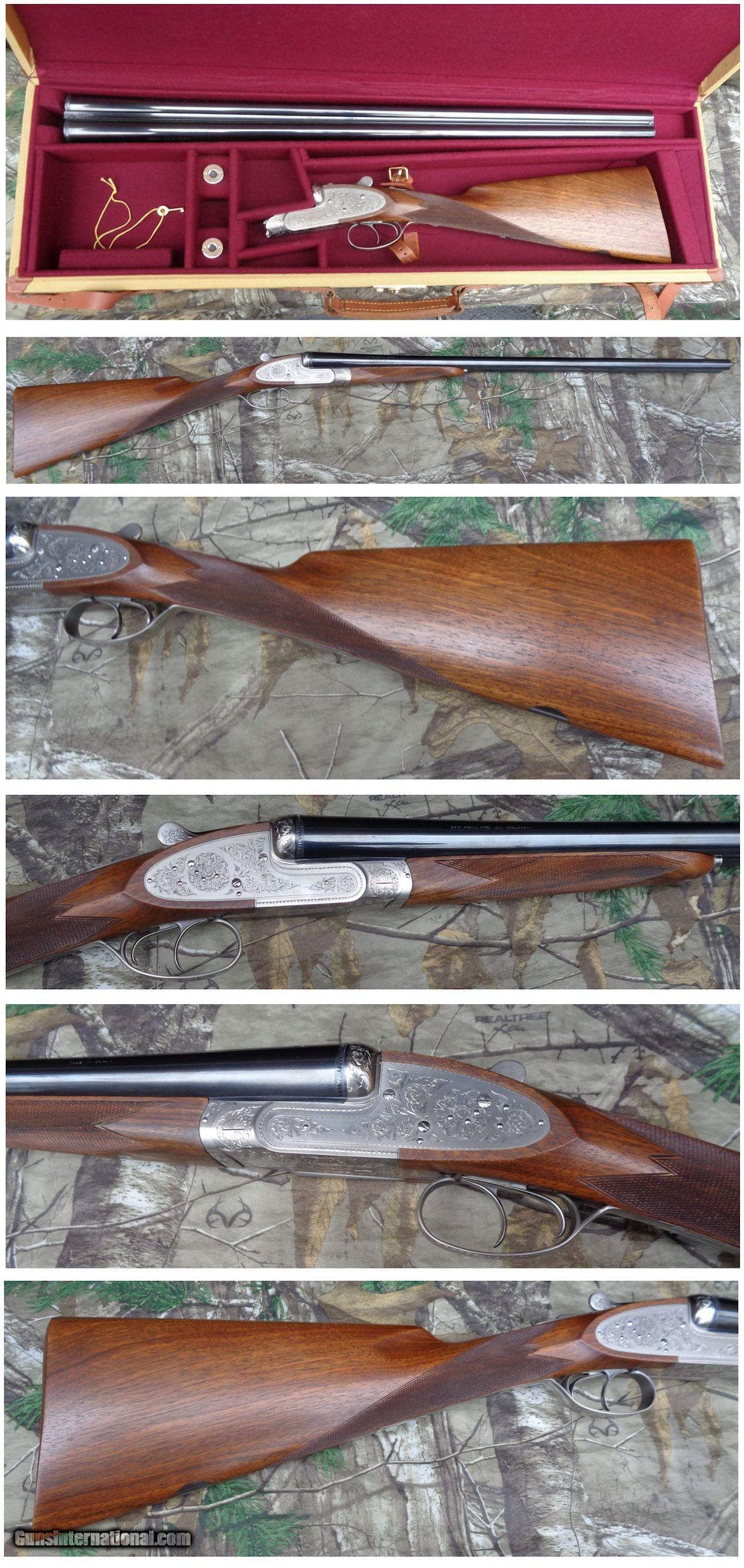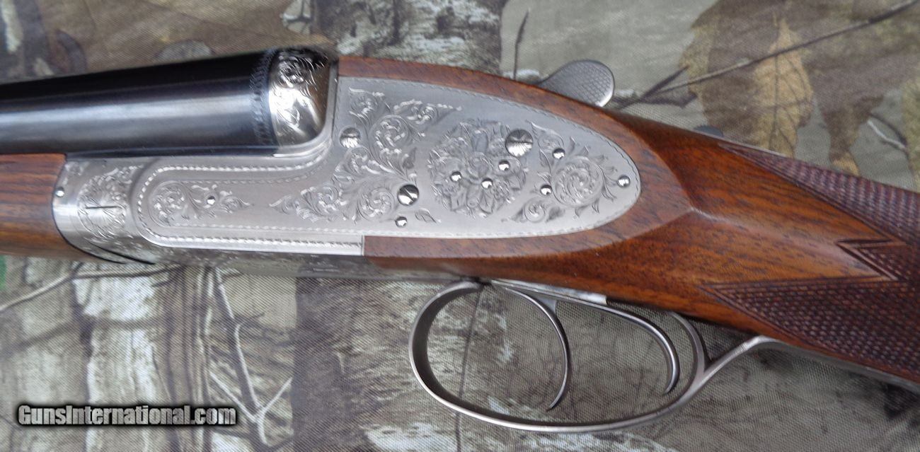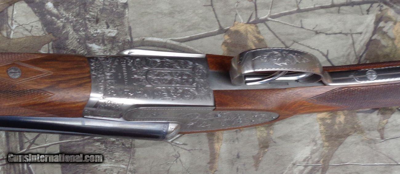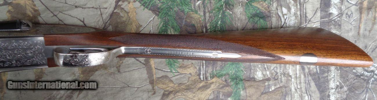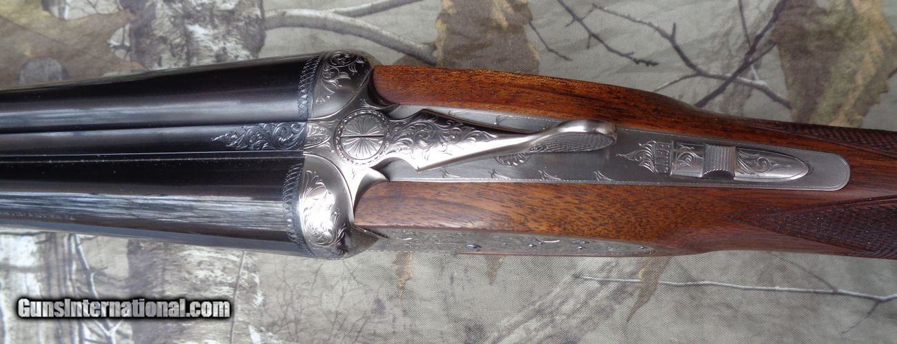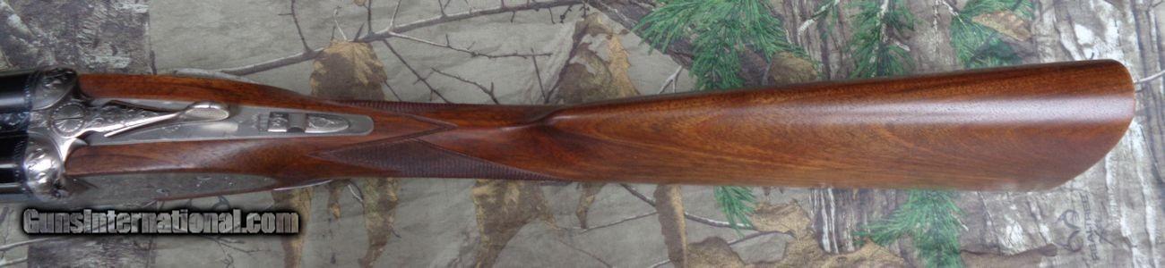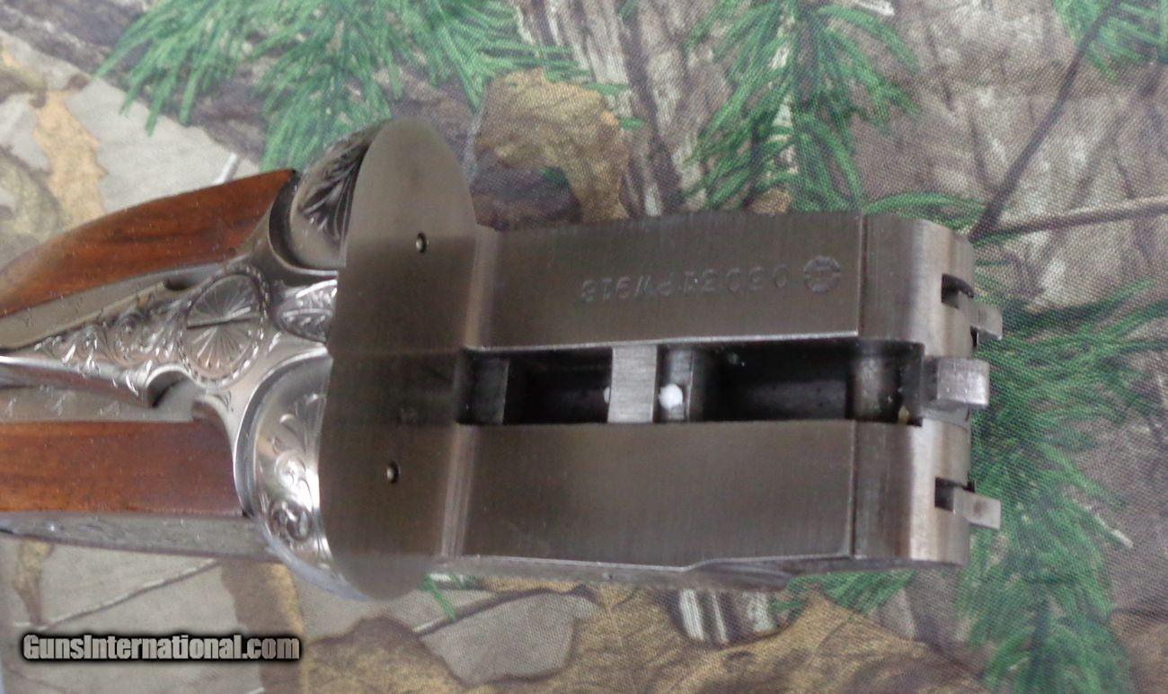 Description: *** SOLD *** SOLD *** "Collector grade" and highly sought after 1984 (serial # 03031PW918) Browning BSS sidelock SxS 12 gauge with desirable 28" barrels, absolutely gorgeous hand engraved receiver, hand checkered straight stock and foream, checkered butt and double triggers, remaining in "just about mint" condition" with shiny bores. It comes in a hard case with snap caps and owner's manual. Do not let this Browning beauty get away from you! LOP of 14 1/4" and DAH at 2 1/2". Look at the pictures, and then call or e-mail to make it yours. $80 S&H to most of the lower 48. Eight far west states at $90 S&H. Post office money orders preferred for payment, with checks taking 2 or 3 days to clear. No warranty stated or implied by the seller. Consignment gun-no return. Lay-a-way is available! SOLD Shotgun Gauge: 12 Gauge Manufacturer: Browning Model: BSS Sidelock Serial Number: 03031PW918 Barrel Length: 28 Chambers: 2 3/4 Ejectors: yes Metal Condition: excellent Wood Condition: excellent Bore Condition: excellent Barrel Type: side by side Action: sidelock Triggers: double triggers Stock: straight or English stock Stock Heel: 2 1/2 Butt Pad: checkered butt LOP: 14 1/4 Rib: raised solid Sights: single bead Manufacture Date: 1984 Engraving: yes, Browning factory hand engraved |