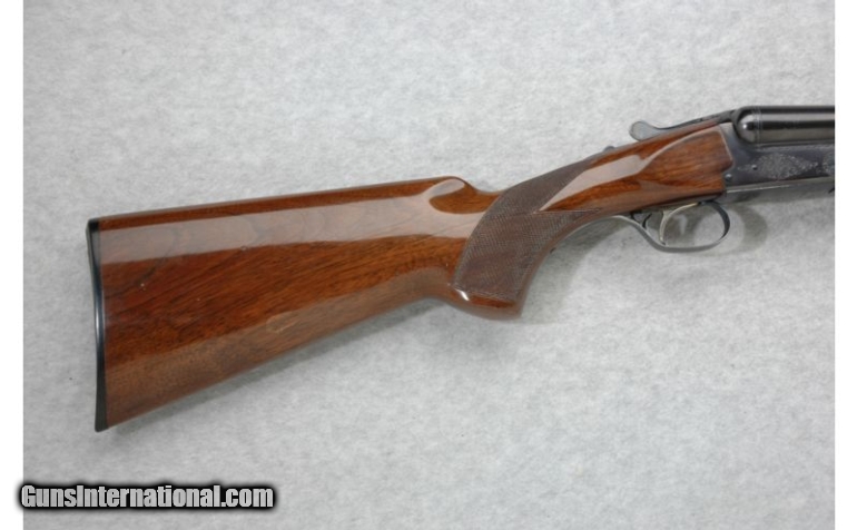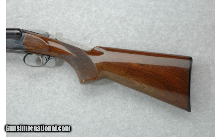 Description: SOLD Manufacturer: Assembled in Korea wih Japanese components. Caliber Info: 12 GA Chambers: 2 3/4 inch or 3 inch. Metal Condition: Good. Has some blue wear, light handling marks and minor freckling. Wood Condition: Good. Handling marks and a decent dent buttstock right side. Bore Condition: Bright and shiny. Barrels: 28 inches with a solid rib. Triggers: Single Stock: Checkered walnut pistol grip. Engraved receiver. Stock Dimensions: LOP 14 1/4 inches. Fore End: Checkered walnut Beavertail. Butt Pad: Browning black hard plastic plate. Weight: 7 lbs. 8 oz. Sights: Metal front and middle bead. Chokes: Fixed Modified and Full. Item Location: Richfield, WI |